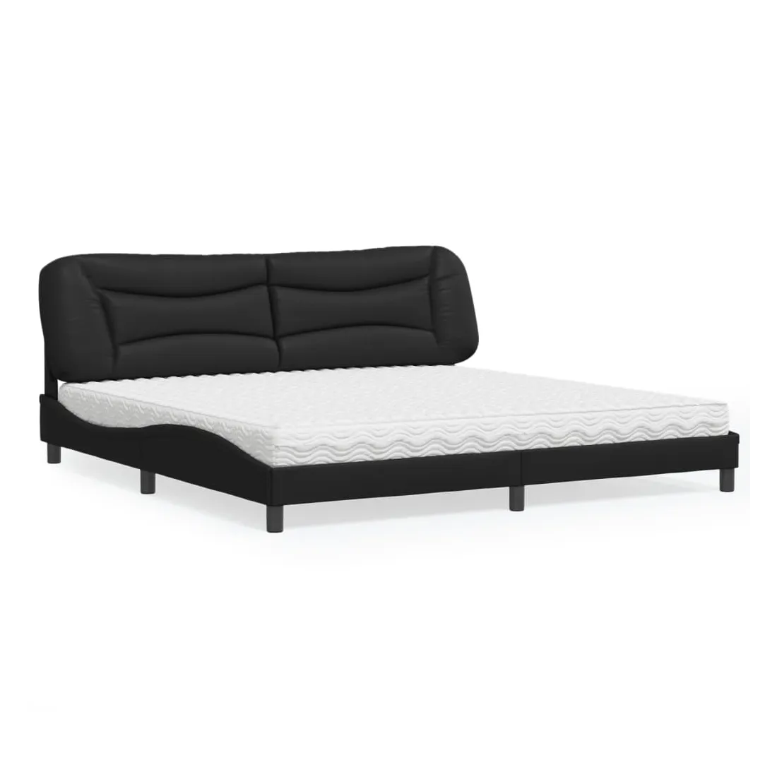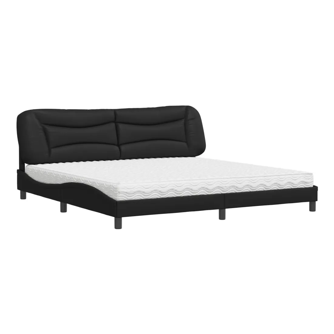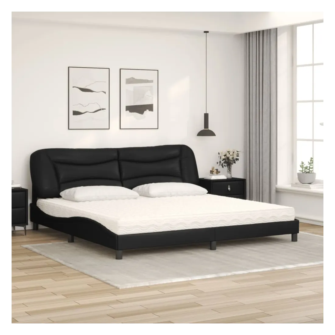 Obtenez une meilleure nuit de sommeil reposante grâce à ce lit avec matelas ! Il est un supplément accueillant à toute chambre à coucher. Similicuir durable : le similicuir de qualité supérieure est un matériau très durable. Il est résistant aux taches, ce qui le rend facile à nettoyer avec un chiffon humide. La surface lisse donne également un aspect luxueux et la beauté du cuir véritable.Lattes de contreplaqué : les lattes de contreplaqué assurent une bonne répartition du poids, garantissant que le matelas reste en place à chaque torsion de votre corps pendant le sommeil.Excellent soutien : la tête de lit vous offre un excellent soutien du dos lorsque vous êtes assis dans votre lit pour lire ou regarder la télévision.Matelas en mousse : ce matelas de lit en tissu à 3 couches est rempli de mousse PU 22D pour un confort optimal. Il contribue à soulager la fatigue et à favoriser la circulation sanguine, vous offrant ainsi une relaxation complète et une bonne qualité de sommeil. En outre, le matelas est disponible en dureté H2 et H3, de sorte que vous pouvez simplement tourner le matelas pour choisir la dureté qui vous convient le mieux.Design latéral ondulé : l’aspect ondulé du cadre de lit est élégant et sophistiqué, ajoutant une touche moderne et élégante à votre décor, ce qui en fait le point central de votre chambre à coucher.