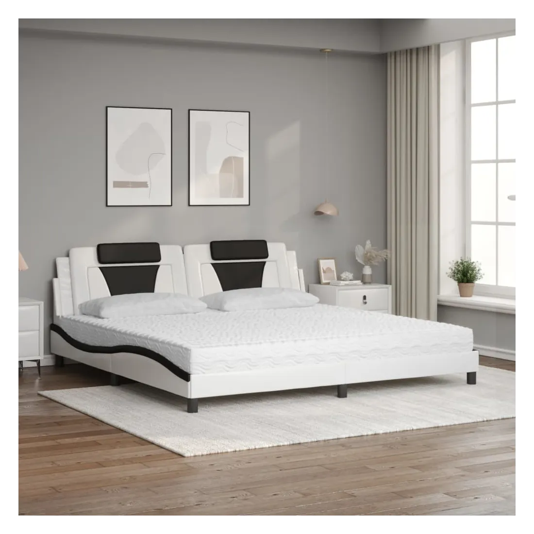 Lit Viana avec matelas blanc et noir 200x200 cm similicuir