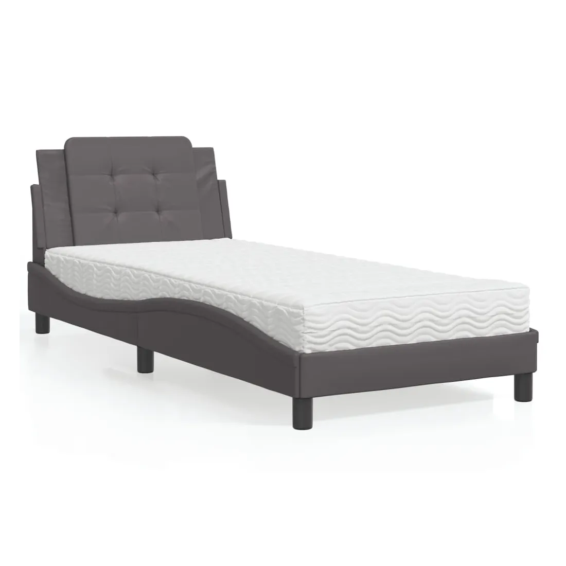 Obtenez une meilleure nuit de sommeil reposante grâce à ce lit avec matelas ! Il est un supplément accueillant à toute chambre à coucher. Similicuir durable : le similicuir de qualité supérieure est un matériau très durable. Il est résistant aux taches, ce qui le rend facile à nettoyer avec un chiffon humide. La surface lisse donne également un aspect luxueux et la beauté du cuir véritable. Lattes de contreplaqué : les lattes de contreplaqué assurent une bonne répartition du poids, garantissant que le matelas reste en place à chaque torsion de votre corps pendant le sommeil. Excellent soutien : l'oreiller de tête de lit est rembourré avec de la mousse pour un confort ultra doux et optimal vous offre un excellent soutien du dos lorsque vous êtes assis dans votre lit pour lire ou regarder la télévision. Matelas en mousse : ce matelas de lit en tissu à 3 couches est rempli de mousse PU 22D pour un confort optimal. Il contribue à soulager la fatigue et à favoriser la circulation sanguine, vous offrant ainsi une relaxation complète et une bonne qualité de sommeil. En outre, le matelas est disponible en dureté H2 et H3, de sorte que vous pouvez simplement tourner le matelas pour choisir la dureté qui vous convient le mieux. Design latéral ondulé : l’aspect ondulé du cadre de lit est élégant et sophistiqué, ajoutant une touche moderne et élégante à votre décor, ce qui en fait le point central de votre chambre à coucher.