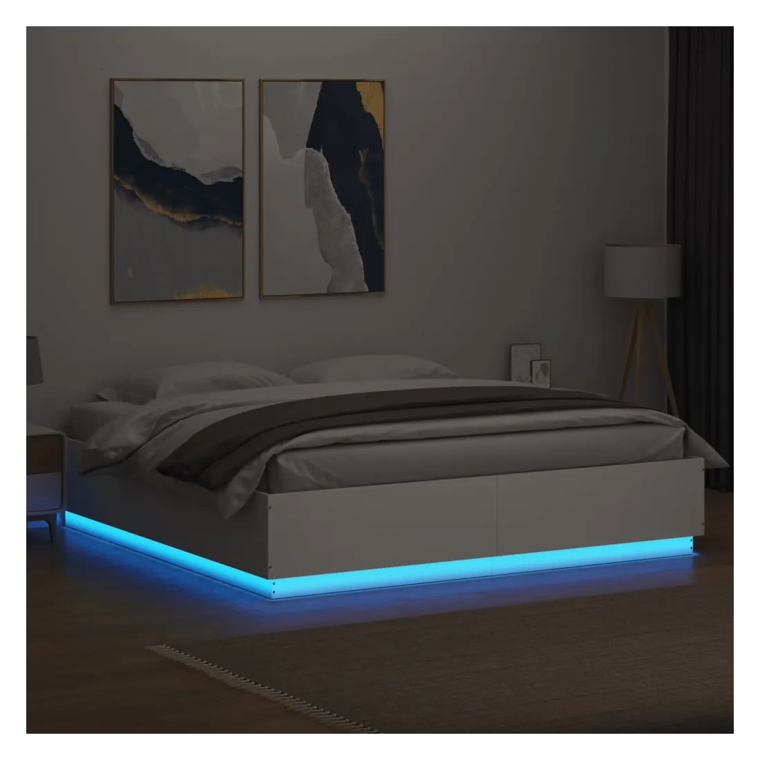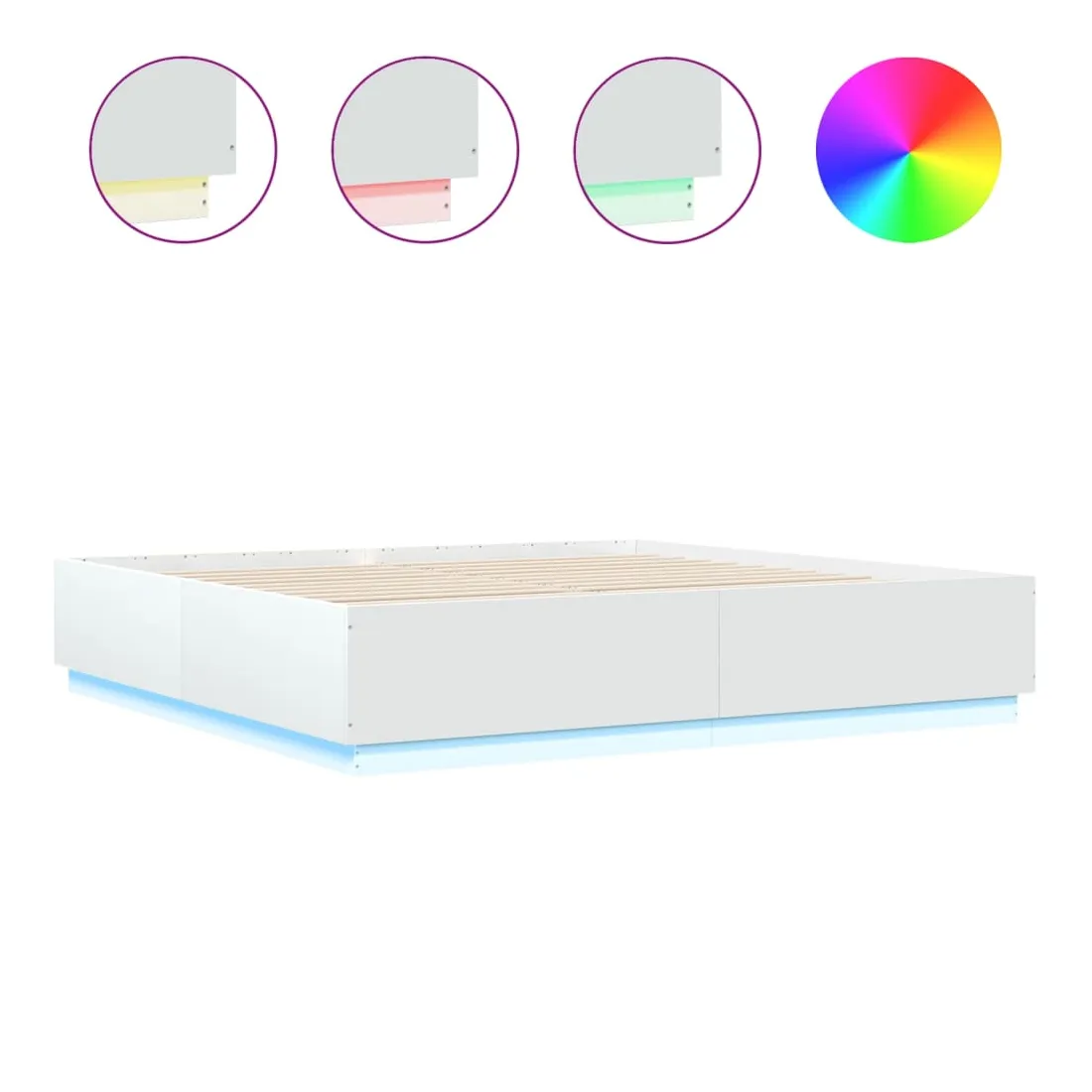 Obtenez une meilleure nuit de sommeil reposante grâce à ce cadre de lit avec lumières LED ! Il est un supplément accueillant à toute chambre à coucher. Matériau durable : le bois d'ingénierie est d'une qualité exceptionnelle avec une surface lisse et présente également résistance, stabilité et résistance à l'humidité.Lumières LED RVB : le cadre de lit est équipé de lumières LED RVB vibrantes. Avec divers menus personnalisables, vous pouvez changer sans effort la couleur des lumières et même les régler automatiquement. Ces lumières LED renforcent non seulement l'aspect contemporain du sommier, mais ajoutent également à son attrait tendance.Lattes robustes : les lattes de contreplaqué assurent une bonne répartition du poids, garantissant que le matelas reste en place à chaque torsion de votre corps pendant le sommeil. Bon à savoir :Un matelas n'est pas inclus avec ce lit. Nous offrons une sélection variée de matelas. Vous pouvez consulter notre boutique pour trouver un matelas assorti.Ce produit est doté d'un connecteur USB qui nécessite une source d'alimentation USB de 5V certifiée (non incluse).