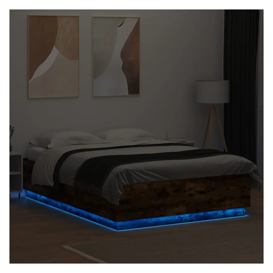 Obtenez une meilleure nuit de sommeil reposante grâce à ce cadre de lit avec lumières LED ! Il est un supplément accueillant à toute chambre à coucher. Matériau durable : le bois d'ingénierie est d'une qualité exceptionnelle avec une surface lisse et présente également résistance, stabilité et résistance à l'humidité.Lumières LED RVB : le cadre de lit est équipé de lumières LED RVB vibrantes. Avec divers menus personnalisables, vous pouvez changer sans effort la couleur des lumières et même les régler automatiquement. Ces lumières LED renforcent non seulement l'aspect contemporain du sommier, mais ajoutent également à son attrait tendance.Lattes robustes : les lattes de contreplaqué assurent une bonne répartition du poids, garantissant que le matelas reste en place à chaque torsion de votre corps pendant le sommeil. Bon à savoir :Un matelas n'est pas inclus avec ce lit. Nous offrons une sélection variée de matelas. Vous pouvez consulter notre boutique pour trouver un matelas assorti.Ce produit est doté d'un connecteur USB qui nécessite une source d'alimentation USB de 5V certifiée (non incluse).