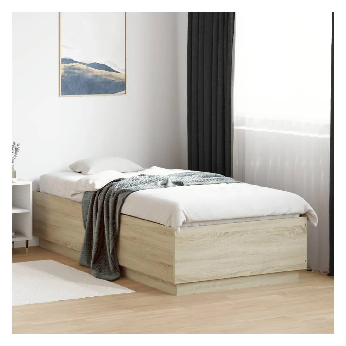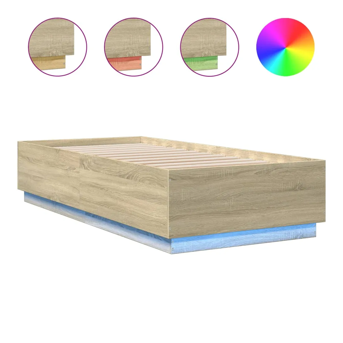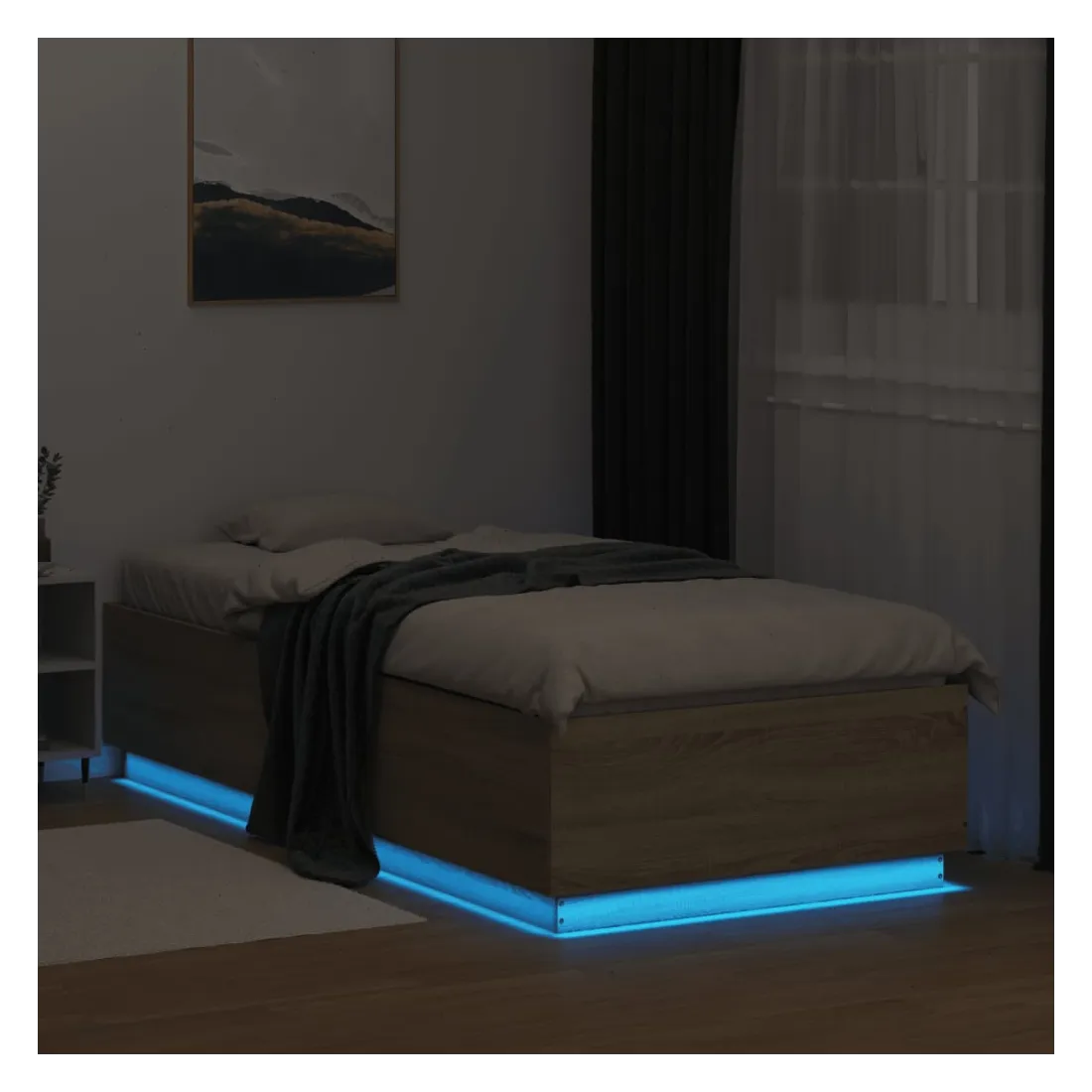 Obtenez une meilleure nuit de sommeil reposante grâce à ce cadre de lit avec lumières LED ! Il est un supplément accueillant à toute chambre à coucher. Matériau durable : le bois d'ingénierie est d'une qualité exceptionnelle avec une surface lisse et présente également résistance, stabilité et résistance à l'humidité.Lumières LED RVB : le cadre de lit est équipé de lumières LED RVB vibrantes. Avec divers menus personnalisables, vous pouvez changer sans effort la couleur des lumières et même les régler automatiquement. Ces lumières LED renforcent non seulement l'aspect contemporain du sommier, mais ajoutent également à son attrait tendance.Lattes robustes : les lattes de contreplaqué assurent une bonne répartition du poids, garantissant que le matelas reste en place à chaque torsion de votre corps pendant le sommeil. Bon à savoir :Un matelas n'est pas inclus avec ce lit. Nous offrons une sélection variée de matelas. Vous pouvez consulter notre boutique pour trouver un matelas assorti.Ce produit est doté d'un connecteur USB qui nécessite une source d'alimentation USB de 5V certifiée (non incluse).