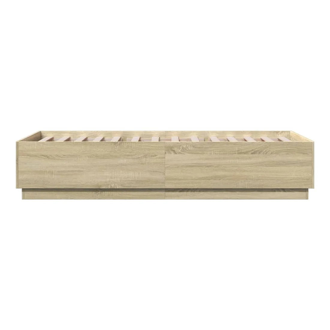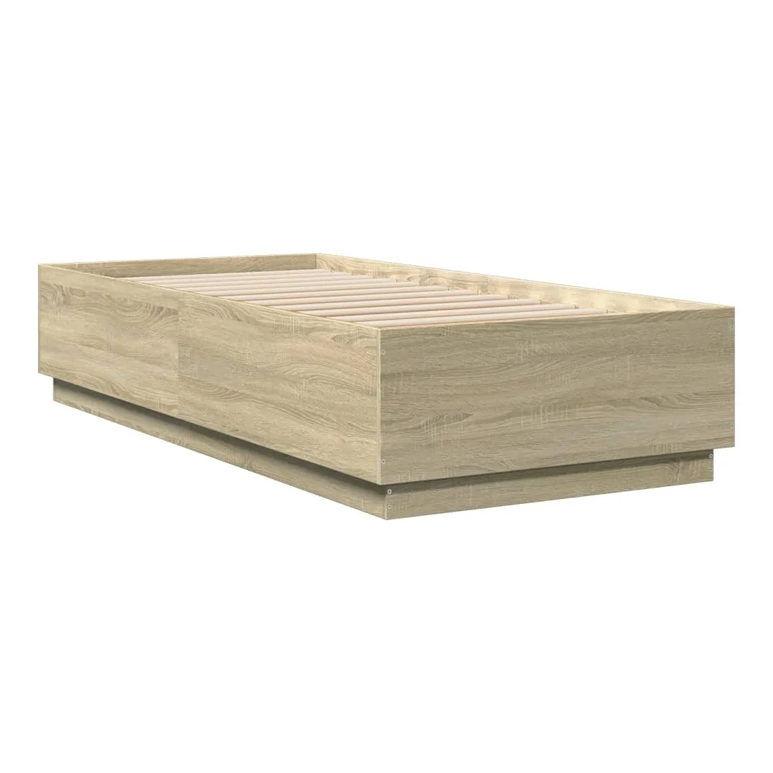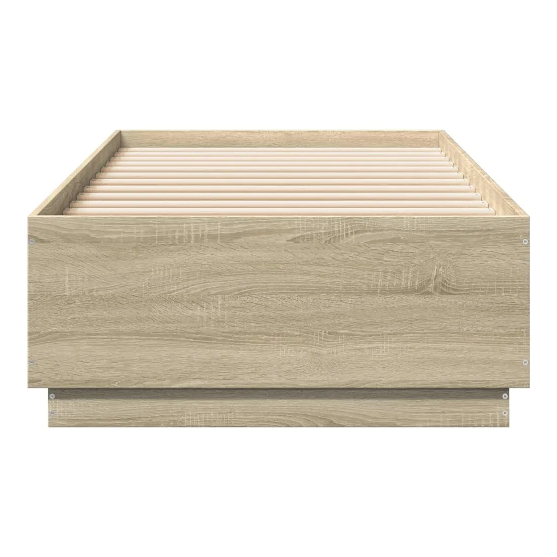 Obtenez une meilleure nuit de sommeil reposante grâce à ce cadre de lit avec lumières LED ! Il est un supplément accueillant à toute chambre à coucher. Matériau durable : le bois d'ingénierie est d'une qualité exceptionnelle avec une surface lisse et présente également résistance, stabilité et résistance à l'humidité.Lumières LED RVB : le cadre de lit est équipé de lumières LED RVB vibrantes. Avec divers menus personnalisables, vous pouvez changer sans effort la couleur des lumières et même les régler automatiquement. Ces lumières LED renforcent non seulement l'aspect contemporain du sommier, mais ajoutent également à son attrait tendance.Lattes robustes : les lattes de contreplaqué assurent une bonne répartition du poids, garantissant que le matelas reste en place à chaque torsion de votre corps pendant le sommeil. Bon à savoir :Un matelas n'est pas inclus avec ce lit. Nous offrons une sélection variée de matelas. Vous pouvez consulter notre boutique pour trouver un matelas assorti.Ce produit est doté d'un connecteur USB qui nécessite une source d'alimentation USB de 5V certifiée (non incluse).