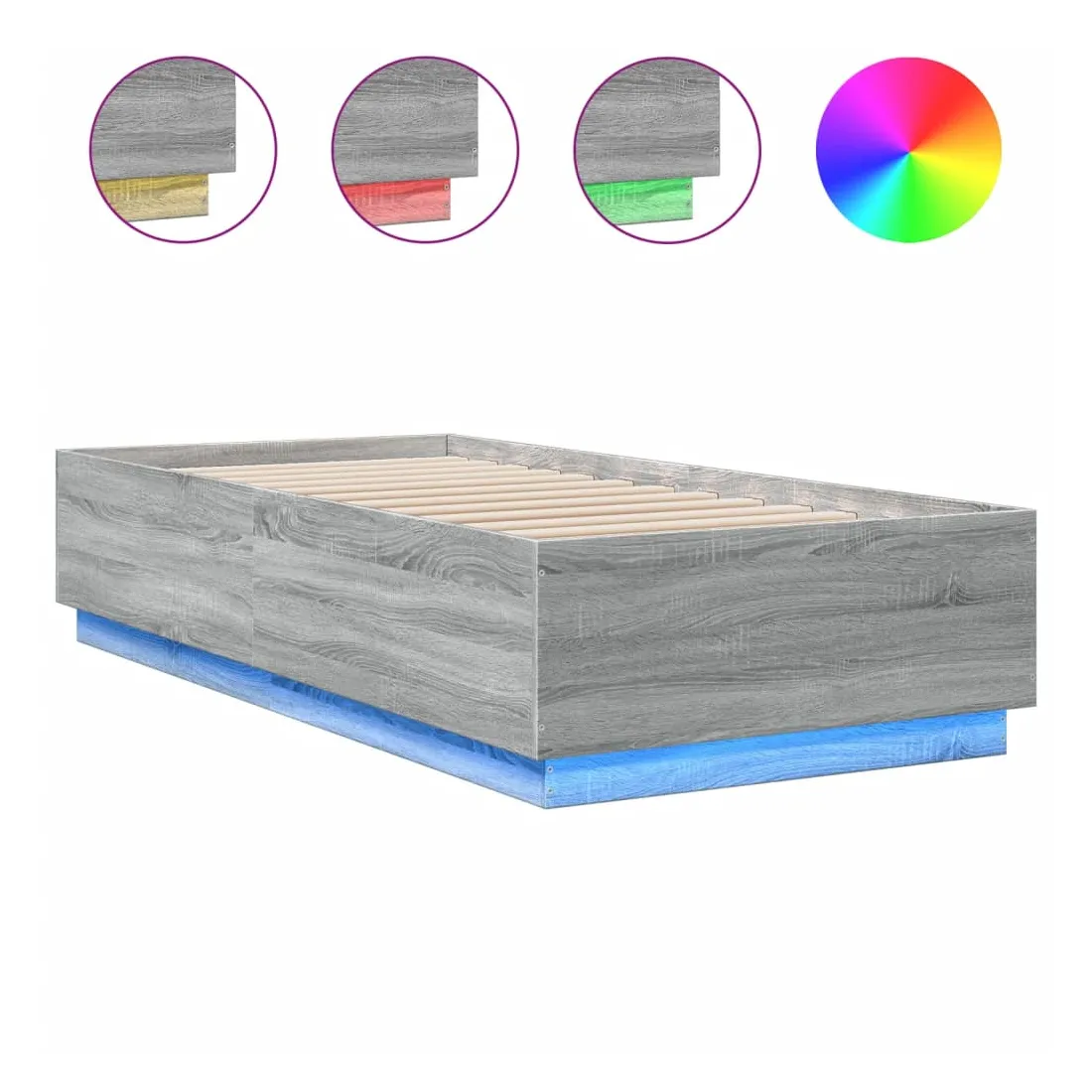 Obtenez une meilleure nuit de sommeil reposante grâce à ce cadre de lit avec lumières LED ! Il est un supplément accueillant à toute chambre à coucher. Matériau durable : le bois d'ingénierie est d'une qualité exceptionnelle avec une surface lisse et présente également résistance, stabilité et résistance à l'humidité.Lumières LED RVB : le cadre de lit est équipé de lumières LED RVB vibrantes. Avec divers menus personnalisables, vous pouvez changer sans effort la couleur des lumières et même les régler automatiquement. Ces lumières LED renforcent non seulement l'aspect contemporain du sommier, mais ajoutent également à son attrait tendance.Lattes robustes : les lattes de contreplaqué assurent une bonne répartition du poids, garantissant que le matelas reste en place à chaque torsion de votre corps pendant le sommeil. Bon à savoir :Un matelas n'est pas inclus avec ce lit. Nous offrons une sélection variée de matelas. Vous pouvez consulter notre boutique pour trouver un matelas assorti.Ce produit est doté d'un connecteur USB qui nécessite une source d'alimentation USB de 5V certifiée (non incluse).