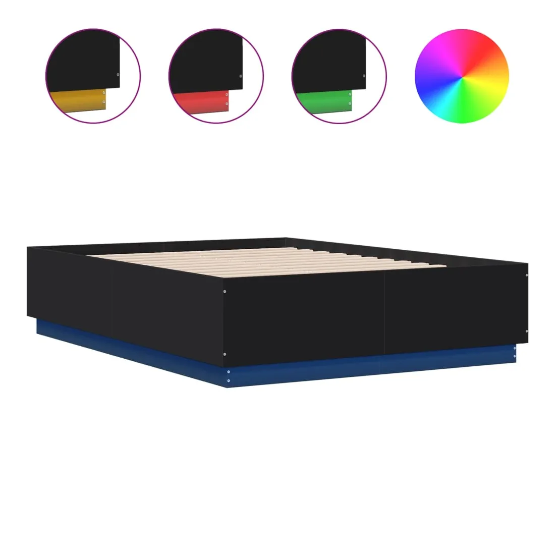 Obtenez une meilleure nuit de sommeil reposante grâce à ce cadre de lit avec lumières LED ! Il est un supplément accueillant à toute chambre à coucher. Matériau durable : le bois d'ingénierie est d'une qualité exceptionnelle avec une surface lisse et présente également résistance, stabilité et résistance à l'humidité.Lumières LED RVB : le cadre de lit est équipé de lumières LED RVB vibrantes. Avec divers menus personnalisables, vous pouvez changer sans effort la couleur des lumières et même les régler automatiquement. Ces lumières LED renforcent non seulement l'aspect contemporain du sommier, mais ajoutent également à son attrait tendance.Lattes robustes : les lattes de contreplaqué assurent une bonne répartition du poids, garantissant que le matelas reste en place à chaque torsion de votre corps pendant le sommeil. Bon à savoir :Un matelas n'est pas inclus avec ce lit. Nous offrons une sélection variée de matelas. Vous pouvez consulter notre boutique pour trouver un matelas assorti.Ce produit est doté d'un connecteur USB qui nécessite une source d'alimentation USB de 5V certifiée (non incluse).