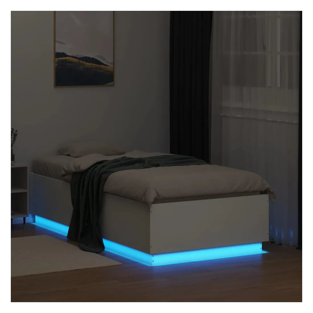 Obtenez une meilleure nuit de sommeil reposante grâce à ce cadre de lit avec lumières LED ! Il est un supplément accueillant à toute chambre à coucher. Matériau durable : le bois d'ingénierie est d'une qualité exceptionnelle avec une surface lisse et présente également résistance, stabilité et résistance à l'humidité.Lumières LED RVB : le cadre de lit est équipé de lumières LED RVB vibrantes. Avec divers menus personnalisables, vous pouvez changer sans effort la couleur des lumières et même les régler automatiquement. Ces lumières LED renforcent non seulement l'aspect contemporain du sommier, mais ajoutent également à son attrait tendance.Lattes robustes : les lattes de contreplaqué assurent une bonne répartition du poids, garantissant que le matelas reste en place à chaque torsion de votre corps pendant le sommeil. Bon à savoir :Un matelas n'est pas inclus avec ce lit. Nous offrons une sélection variée de matelas. Vous pouvez consulter notre boutique pour trouver un matelas assorti.Ce produit est doté d'un connecteur USB qui nécessite une source d'alimentation USB de 5V certifiée (non incluse).