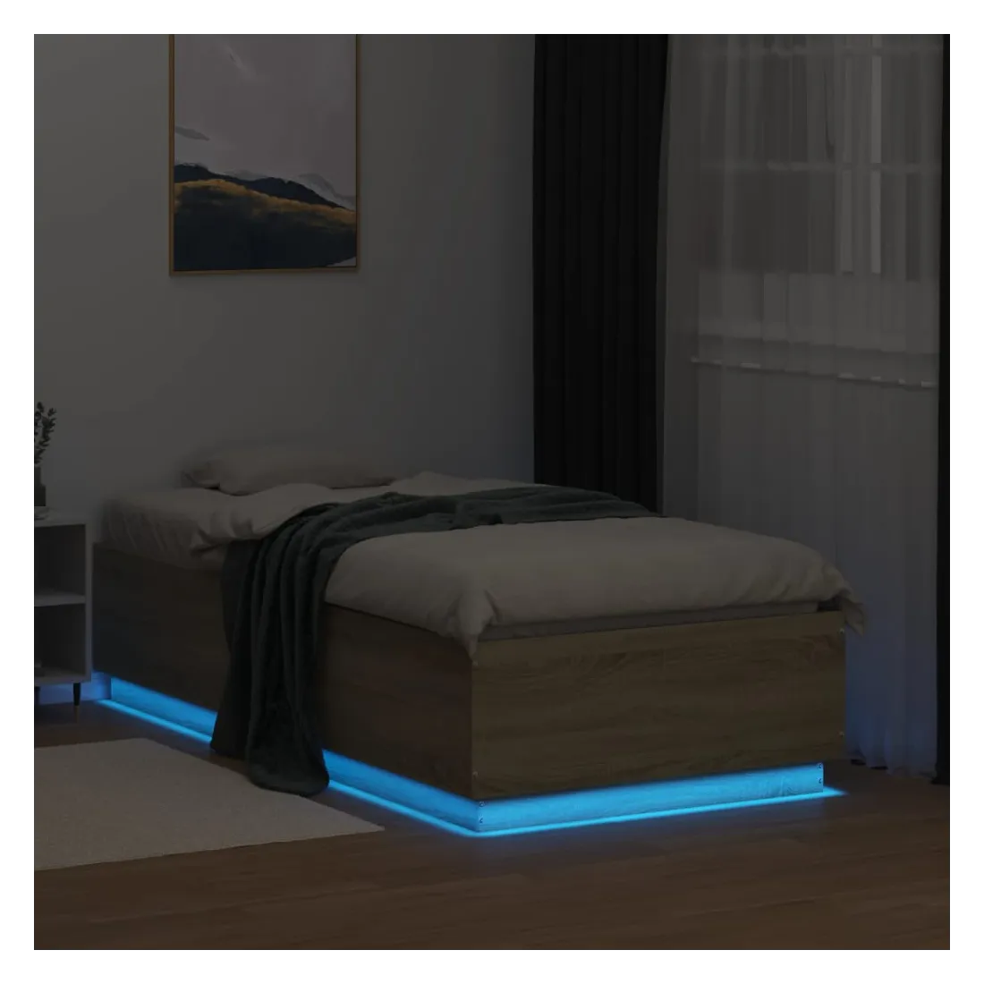 Obtenez une meilleure nuit de sommeil reposante grâce à ce cadre de lit avec lumières LED ! Il est un supplément accueillant à toute chambre à coucher. Matériau durable : le bois d'ingénierie est d'une qualité exceptionnelle avec une surface lisse et présente également résistance, stabilité et résistance à l'humidité.Lumières LED RVB : le cadre de lit est équipé de lumières LED RVB vibrantes. Avec divers menus personnalisables, vous pouvez changer sans effort la couleur des lumières et même les régler automatiquement. Ces lumières LED renforcent non seulement l'aspect contemporain du sommier, mais ajoutent également à son attrait tendance.Lattes robustes : les lattes de contreplaqué assurent une bonne répartition du poids, garantissant que le matelas reste en place à chaque torsion de votre corps pendant le sommeil. Bon à savoir :Un matelas n'est pas inclus avec ce lit. Nous offrons une sélection variée de matelas. Vous pouvez consulter notre boutique pour trouver un matelas assorti.Ce produit est doté d'un connecteur USB qui nécessite une source d'alimentation USB de 5V certifiée (non incluse).