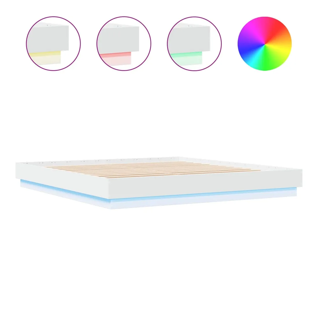 Obtenez une meilleure nuit de sommeil reposante grâce à ce cadre de lit avec lumières LED ! Il est un supplément accueillant à toute chambre à coucher. Matériau durable : le bois d'ingénierie est d'une qualité exceptionnelle avec une surface lisse et présente également résistance, stabilité et résistance à l'humidité.Lumières LED RVB : le cadre de lit est équipé de lumières LED RVB vibrantes. Avec divers menus personnalisables, vous pouvez changer sans effort la couleur des lumières et même les régler automatiquement. Ces lumières LED renforcent non seulement l'aspect contemporain du sommier, mais ajoutent également à son attrait tendance.Lattes robustes : les lattes de contreplaqué assurent une bonne répartition du poids, garantissant que le matelas reste en place à chaque torsion de votre corps pendant le sommeil. Bon à savoir :Un matelas n'est pas inclus avec ce lit. Nous offrons une sélection variée de matelas. Vous pouvez consulter notre boutique pour trouver un matelas assorti.Ce produit est doté d'un connecteur USB qui nécessite une source d'alimentation USB de 5V certifiée (non incluse).
