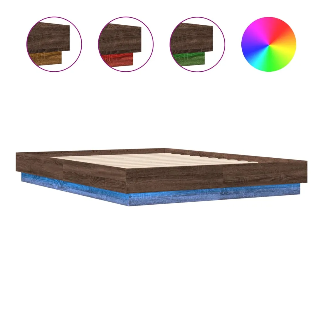 Cadre de lit avec LED sans matelas chêne marron 120x190 cm