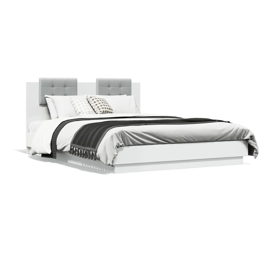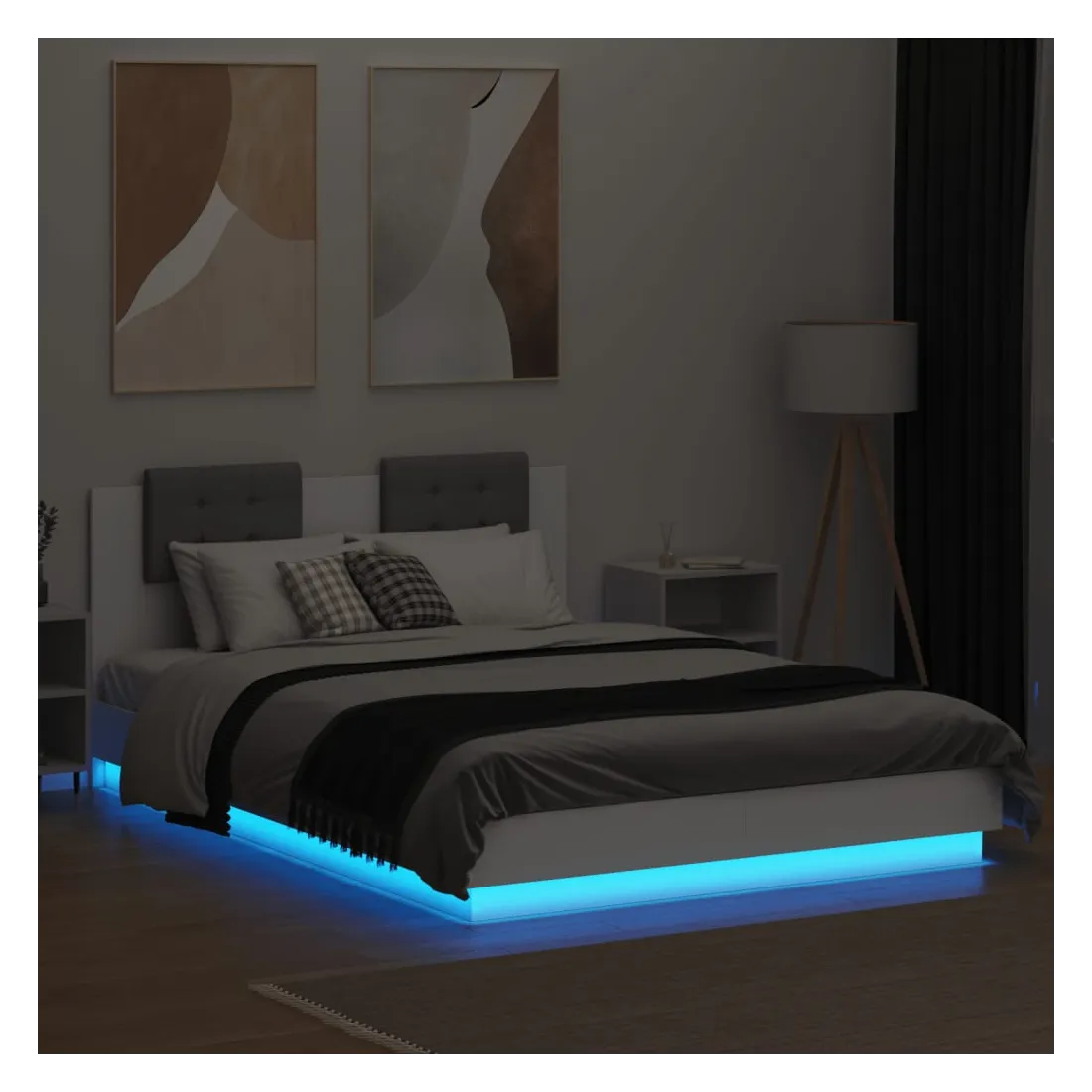 Obtenez une meilleure nuit de sommeil reposante grâce à ce cadre de lit avec tête de lit et lumières LED ! Il est un supplément accueillant à toute chambre à coucher. Matériau durable : le bois d'ingénierie est d'une qualité exceptionnelle avec une surface lisse et présente également résistance, stabilité et résistance à l'humidité.Lumières LED RVB : le cadre de lit est équipé de lumières LED RVB vibrantes. Avec divers menus personnalisables, vous pouvez changer sans effort la couleur des lumières et même les régler automatiquement. Ces lumières LED renforcent non seulement l'aspect contemporain du sommier, mais ajoutent également à son attrait tendance.Excellent soutien : la tête de lit vous offre un excellent soutien du dos lorsque vous êtes assis dans votre lit pour lire ou regarder la télévision.Lattes robustes : les lattes de contreplaqué assurent une bonne répartition du poids, garantissant que le matelas reste en place à chaque torsion de votre corps pendant le sommeil. Bon à savoir :Un matelas n'est pas inclus avec ce lit. Nous offrons une sélection variée de matelas. Vous pouvez consulter notre boutique pour trouver un matelas assorti.Ce produit est doté d'un connecteur USB qui nécessite une source d'alimentation USB de 5V certifiée (non incluse).