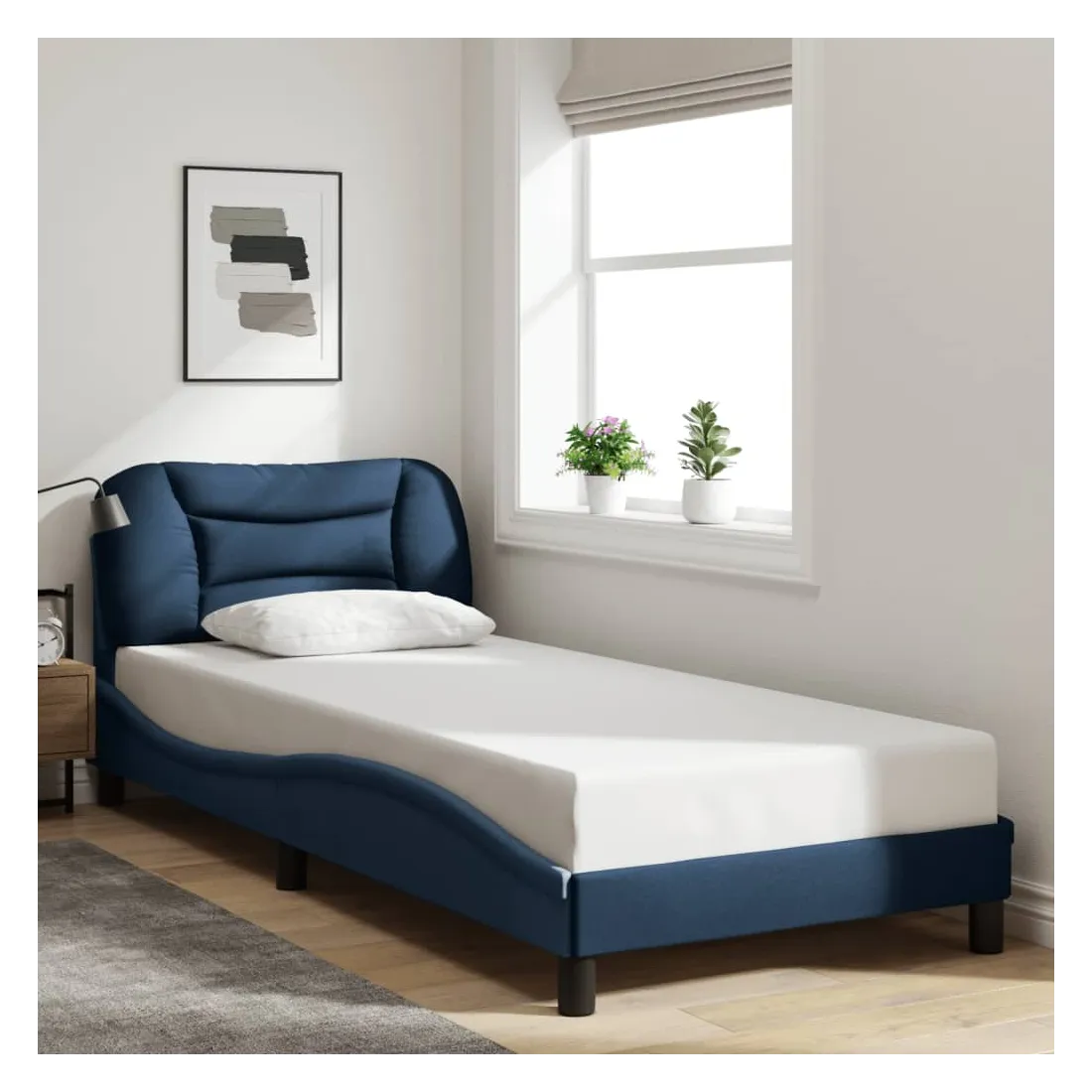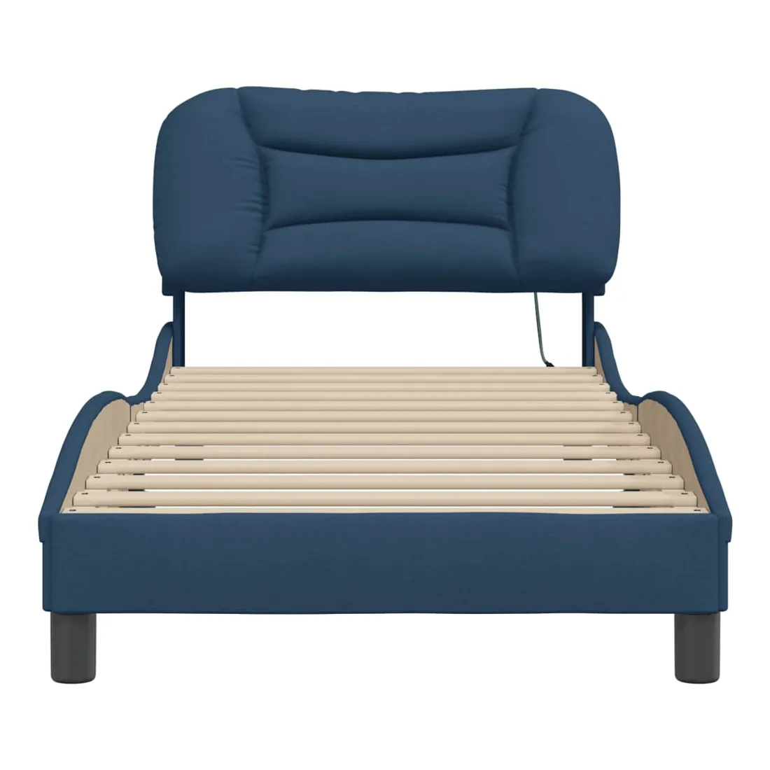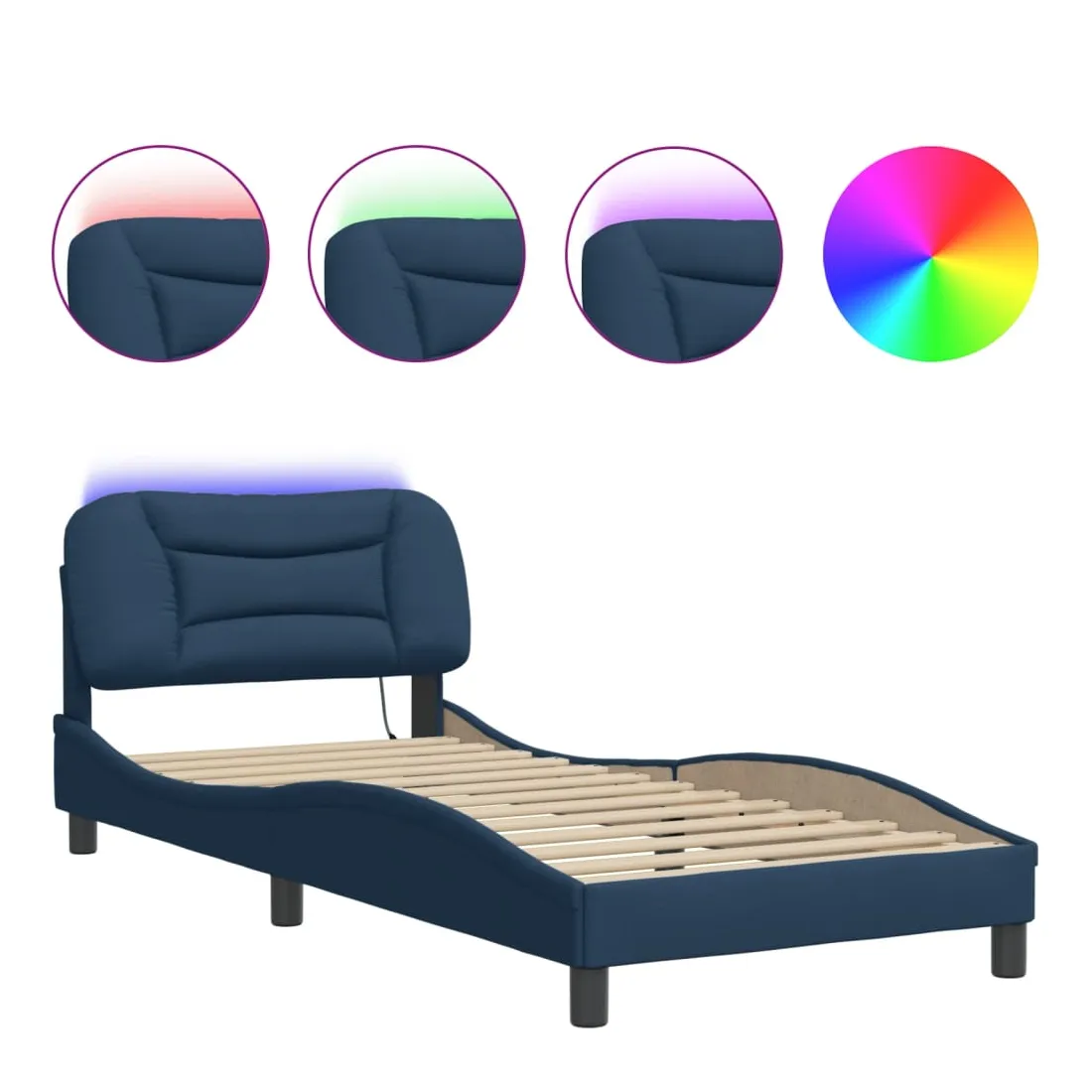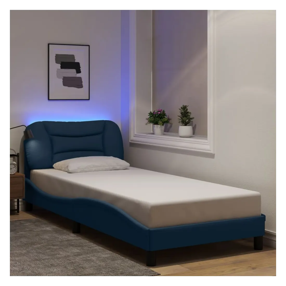 Cadre de lit avec LED sans matelas Hvar bleu 80x200 cm tissu
