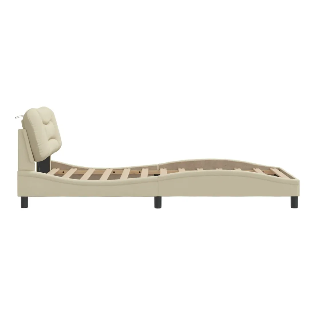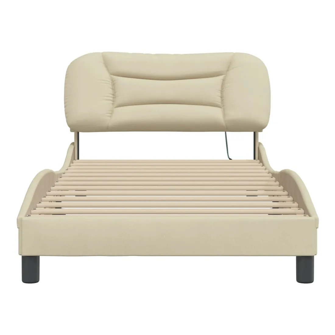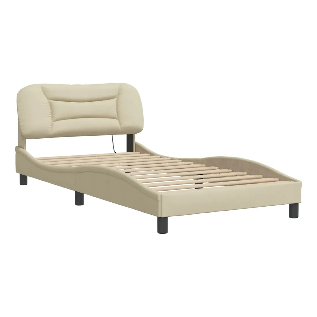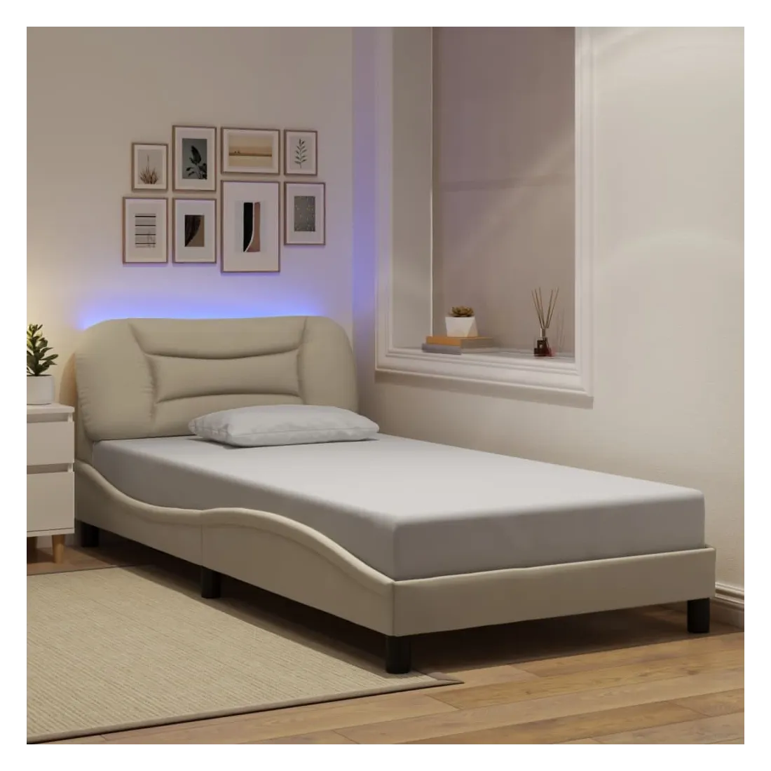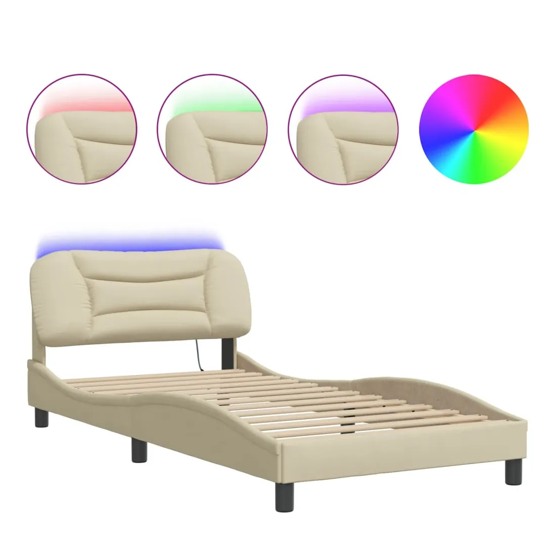 Obtenez une meilleure nuit de sommeil reposante grâce à ce cadre de lit avec lumières LED ! Il est un supplément accueillant à toute chambre à coucher. Tissu durable : le tissu présente un aspect simple et épuré, et il est respirant et durable.Lattes de contreplaqué : les lattes de contreplaqué assurent une bonne répartition du poids, garantissant que le matelas reste en place à chaque torsion de votre corps pendant le sommeil.Excellent soutien : la tête de lit vous offre un excellent soutien du dos lorsque vous êtes assis dans votre lit pour lire ou regarder la télévision.Bande LED colorée : apportez de la gaieté dans l'obscurité avec des lumières LED colorées ! Les bandes auto-agrippantes situées à l'arrière du coussin de la tête de lit peuvent être utilisées pour fixer les lumières LED.Design latéral ondulé : l’aspect ondulé du cadre de lit est élégant et sophistiqué, ajoutant une touche moderne et élégante à votre décor, ce qui en fait le point central de votre chambre à coucher. Bon à savoir :Un matelas n'est pas inclus avec ce lit. Nous offrons une sélection variée de matelas. Vous pouvez consulter notre boutique pour trouver un matelas assorti.Ce produit est doté d'un connecteur USB qui nécessite une source d'alimentation USB de 5V certifiée (non incluse).