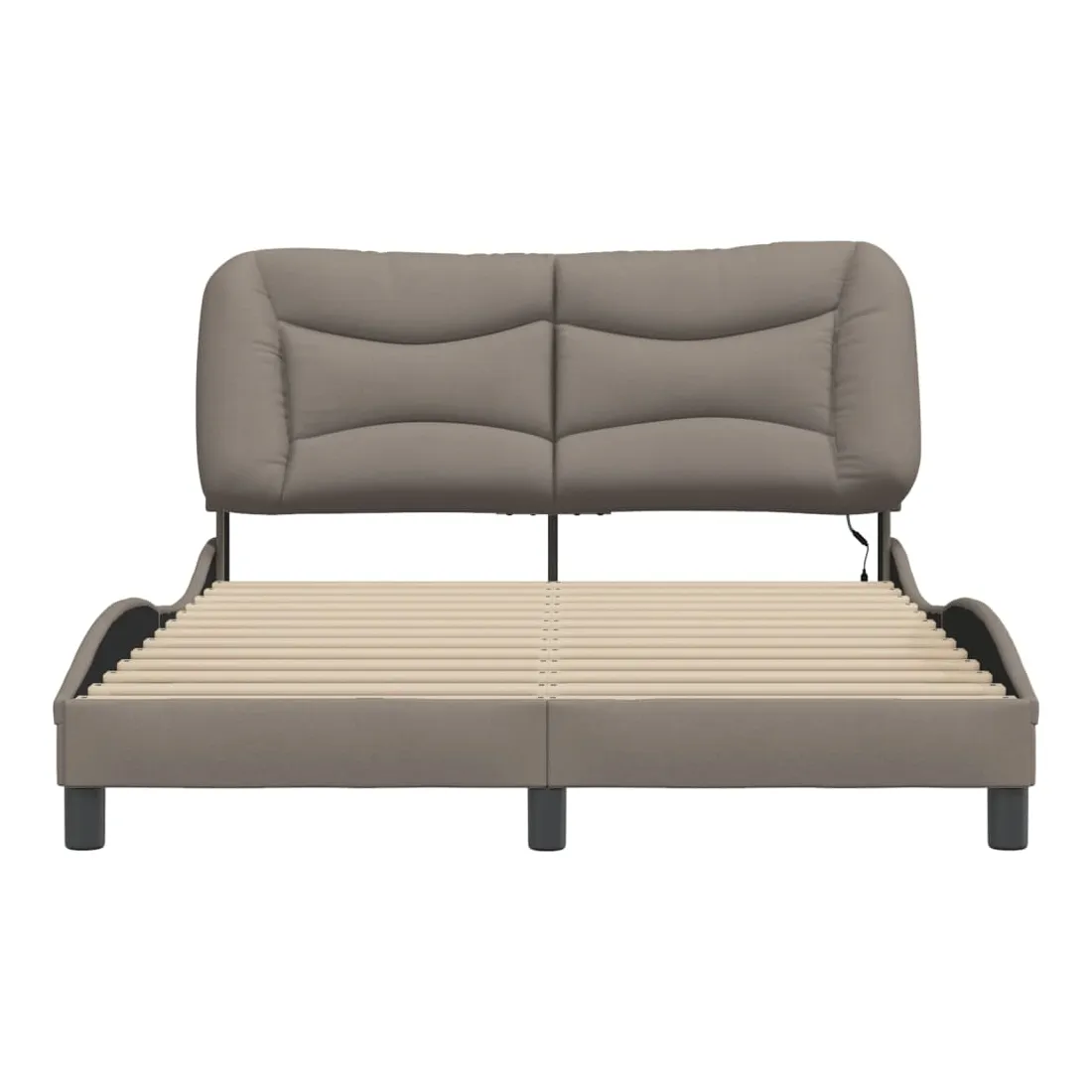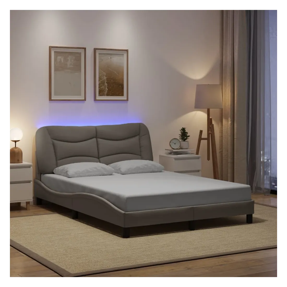 Obtenez une meilleure nuit de sommeil reposante grâce à ce cadre de lit avec lumières LED ! Il est un supplément accueillant à toute chambre à coucher. Tissu durable : le tissu présente un aspect simple et épuré, et il est respirant et durable.Lattes de contreplaqué : les lattes de contreplaqué assurent une bonne répartition du poids, garantissant que le matelas reste en place à chaque torsion de votre corps pendant le sommeil.Excellent soutien : la tête de lit vous offre un excellent soutien du dos lorsque vous êtes assis dans votre lit pour lire ou regarder la télévision.Bande LED colorée : apportez de la gaieté dans l'obscurité avec des lumières LED colorées ! Les bandes auto-agrippantes situées à l'arrière du coussin de la tête de lit peuvent être utilisées pour fixer les lumières LED.Design latéral ondulé : l’aspect ondulé du cadre de lit est élégant et sophistiqué, ajoutant une touche moderne et élégante à votre décor, ce qui en fait le point central de votre chambre à coucher. Bon à savoir :Un matelas n'est pas inclus avec ce lit. Nous offrons une sélection variée de matelas. Vous pouvez consulter notre boutique pour trouver un matelas assorti.Ce produit est doté d'un connecteur USB qui nécessite une source d'alimentation USB de 5V certifiée (non incluse).