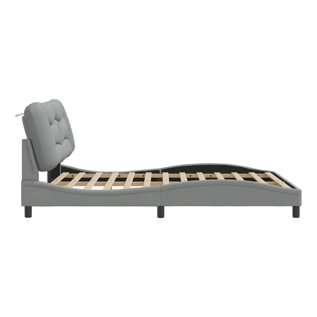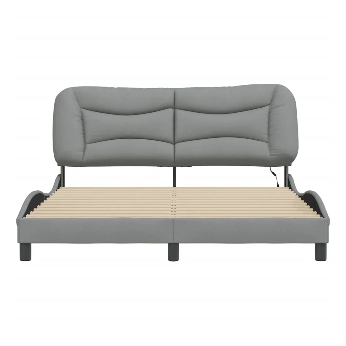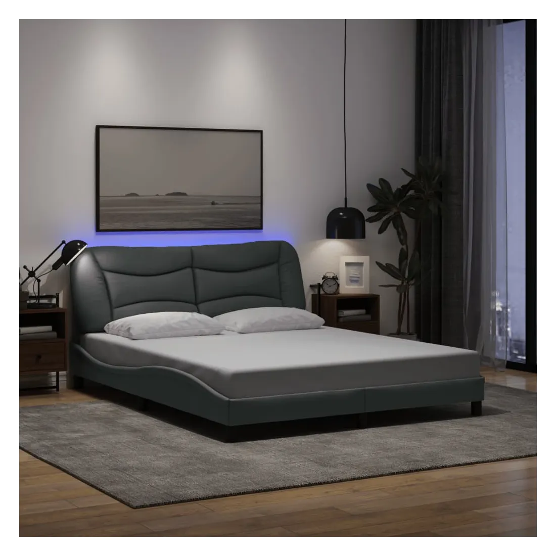 Obtenez une meilleure nuit de sommeil reposante grâce à ce cadre de lit avec lumières LED ! Il est un supplément accueillant à toute chambre à coucher. Tissu durable : le tissu présente un aspect simple et épuré, et il est respirant et durable.Lattes de contreplaqué : les lattes de contreplaqué assurent une bonne répartition du poids, garantissant que le matelas reste en place à chaque torsion de votre corps pendant le sommeil.Excellent soutien : la tête de lit vous offre un excellent soutien du dos lorsque vous êtes assis dans votre lit pour lire ou regarder la télévision.Bande LED colorée : apportez de la gaieté dans l'obscurité avec des lumières LED colorées ! Les bandes auto-agrippantes situées à l'arrière du coussin de la tête de lit peuvent être utilisées pour fixer les lumières LED.Design latéral ondulé : l’aspect ondulé du cadre de lit est élégant et sophistiqué, ajoutant une touche moderne et élégante à votre décor, ce qui en fait le point central de votre chambre à coucher. Bon à savoir :Un matelas n'est pas inclus avec ce lit. Nous offrons une sélection variée de matelas. Vous pouvez consulter notre boutique pour trouver un matelas assorti.Ce produit est doté d'un connecteur USB qui nécessite une source d'alimentation USB de 5V certifiée (non incluse).