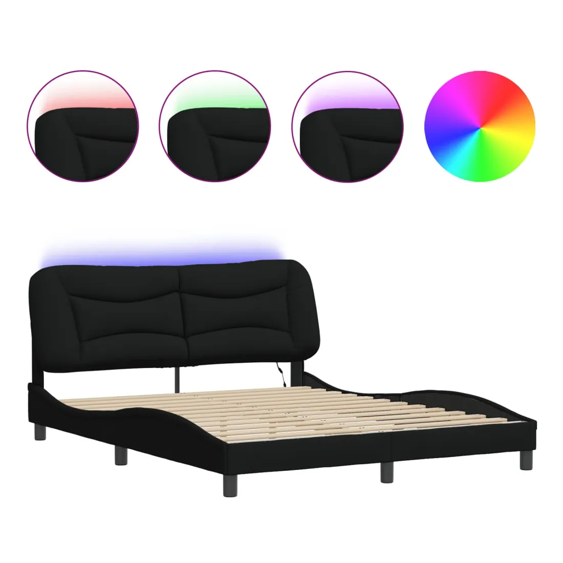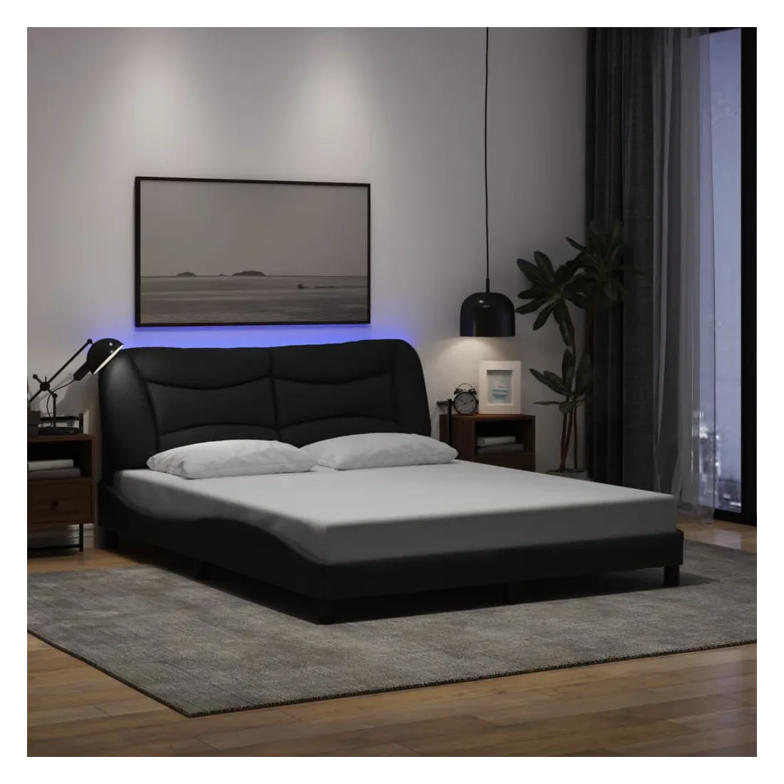 Obtenez une meilleure nuit de sommeil reposante grâce à ce cadre de lit avec lumières LED ! Il est un supplément accueillant à toute chambre à coucher. Tissu durable : le tissu présente un aspect simple et épuré, et il est respirant et durable.Lattes de contreplaqué : les lattes de contreplaqué assurent une bonne répartition du poids, garantissant que le matelas reste en place à chaque torsion de votre corps pendant le sommeil.Excellent soutien : la tête de lit vous offre un excellent soutien du dos lorsque vous êtes assis dans votre lit pour lire ou regarder la télévision.Bande LED colorée : apportez de la gaieté dans l'obscurité avec des lumières LED colorées ! Les bandes auto-agrippantes situées à l'arrière du coussin de la tête de lit peuvent être utilisées pour fixer les lumières LED.Design latéral ondulé : l’aspect ondulé du cadre de lit est élégant et sophistiqué, ajoutant une touche moderne et élégante à votre décor, ce qui en fait le point central de votre chambre à coucher. Bon à savoir :Un matelas n'est pas inclus avec ce lit. Nous offrons une sélection variée de matelas. Vous pouvez consulter notre boutique pour trouver un matelas assorti.Ce produit est doté d'un connecteur USB qui nécessite une source d'alimentation USB de 5V certifiée (non incluse).
