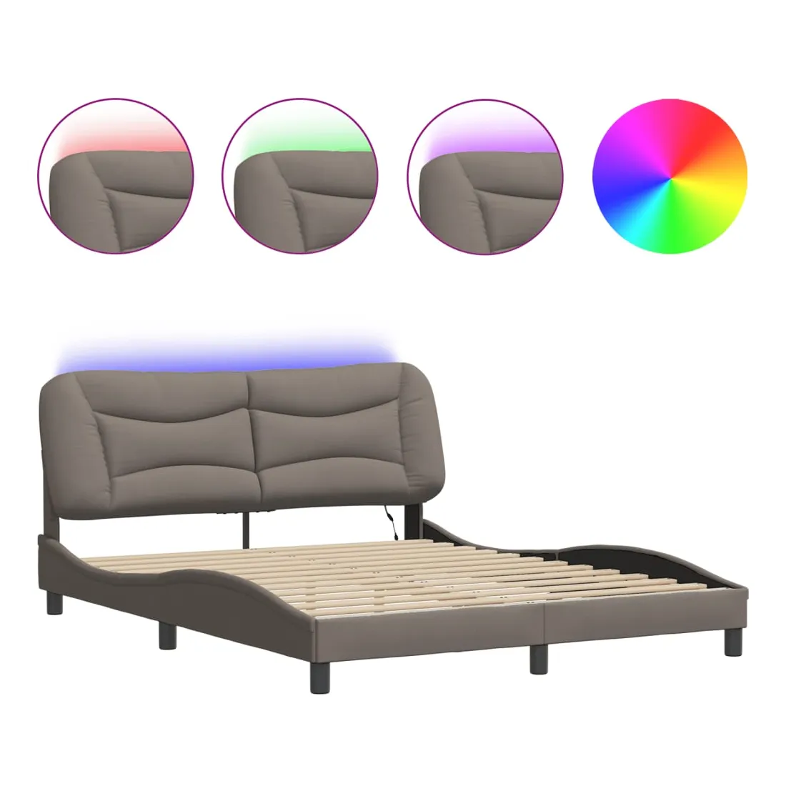 Obtenez une meilleure nuit de sommeil reposante grâce à ce cadre de lit avec lumières LED ! Il est un supplément accueillant à toute chambre à coucher. Tissu durable : le tissu présente un aspect simple et épuré, et il est respirant et durable.Lattes de contreplaqué : les lattes de contreplaqué assurent une bonne répartition du poids, garantissant que le matelas reste en place à chaque torsion de votre corps pendant le sommeil.Excellent soutien : la tête de lit vous offre un excellent soutien du dos lorsque vous êtes assis dans votre lit pour lire ou regarder la télévision.Bande LED colorée : apportez de la gaieté dans l'obscurité avec des lumières LED colorées ! Les bandes auto-agrippantes situées à l'arrière du coussin de la tête de lit peuvent être utilisées pour fixer les lumières LED.Design latéral ondulé : l’aspect ondulé du cadre de lit est élégant et sophistiqué, ajoutant une touche moderne et élégante à votre décor, ce qui en fait le point central de votre chambre à coucher. Bon à savoir :Un matelas n'est pas inclus avec ce lit. Nous offrons une sélection variée de matelas. Vous pouvez consulter notre boutique pour trouver un matelas assorti.Ce produit est doté d'un connecteur USB qui nécessite une source d'alimentation USB de 5V certifiée (non incluse).