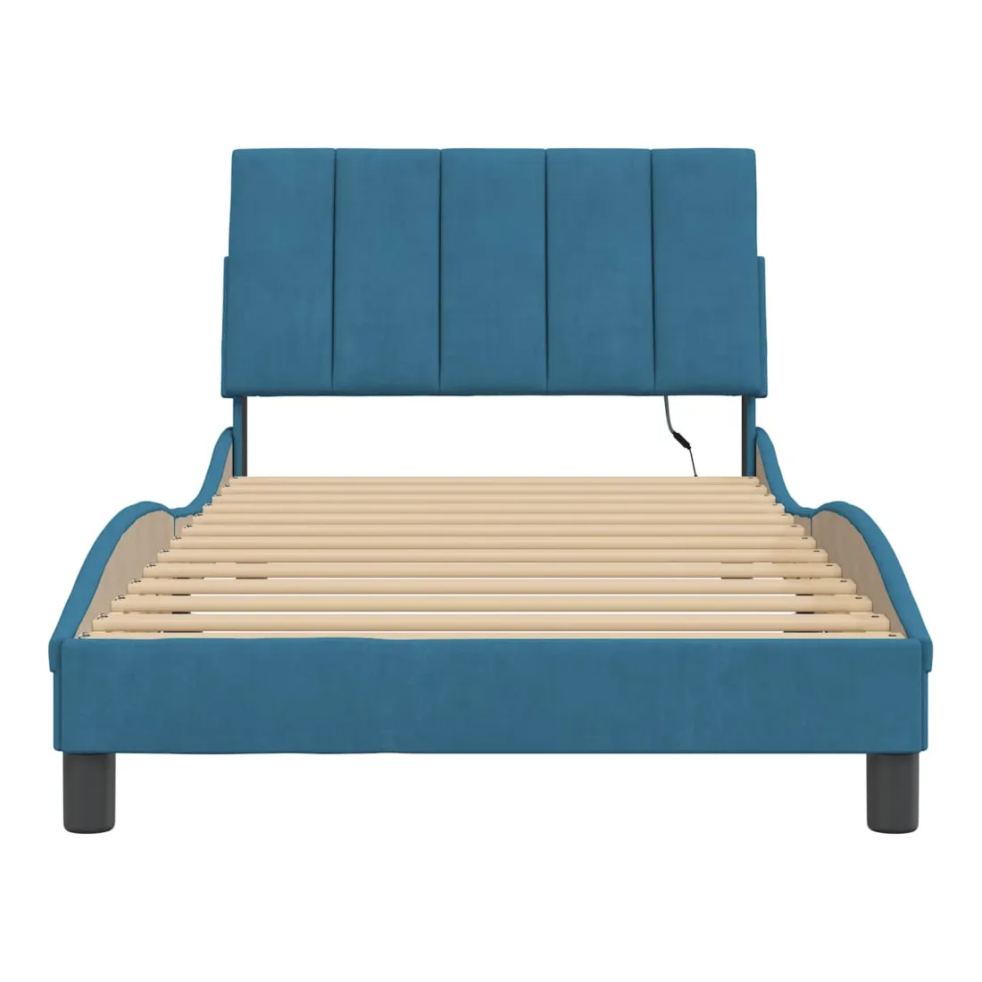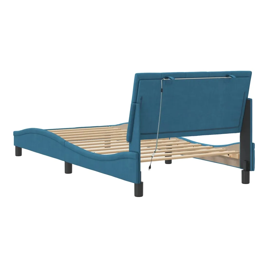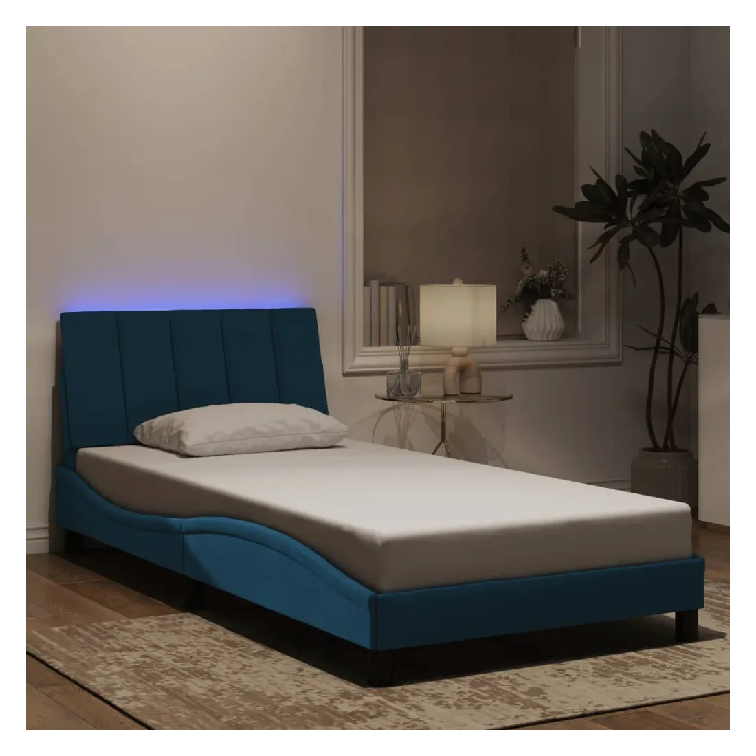 Obtenez une meilleure nuit de sommeil reposante grâce à ce cadre de lit avec lumières LED ! Il est un supplément accueillant à toute chambre à coucher. Velours doux : le velours est un tissu doux et confortable, agréable au toucher.Lattes de contreplaqué : les lattes de contreplaqué assurent une bonne répartition du poids, garantissant que le matelas reste en place à chaque torsion de votre corps pendant le sommeil.Excellent soutien : la tête de lit vous offre un excellent soutien du dos lorsque vous êtes assis dans votre lit pour lire ou regarder la télévision.Bande LED colorée : apportez de la gaieté dans l'obscurité avec des lumières LED colorées ! Les bandes auto-agrippantes situées à l'arrière du coussin de la tête de lit peuvent être utilisées pour fixer les lumières LED.Design latéral ondulé : l’aspect ondulé du cadre de lit est élégant et sophistiqué, ajoutant une touche moderne et élégante à votre décor, ce qui en fait le point central de votre chambre à coucher. Bon à savoir :Un matelas n'est pas inclus avec ce lit. Nous offrons une sélection variée de matelas. Vous pouvez consulter notre boutique pour trouver un matelas assorti.Ce produit est doté d'un connecteur USB qui nécessite une source d'alimentation USB de 5V certifiée (non incluse).