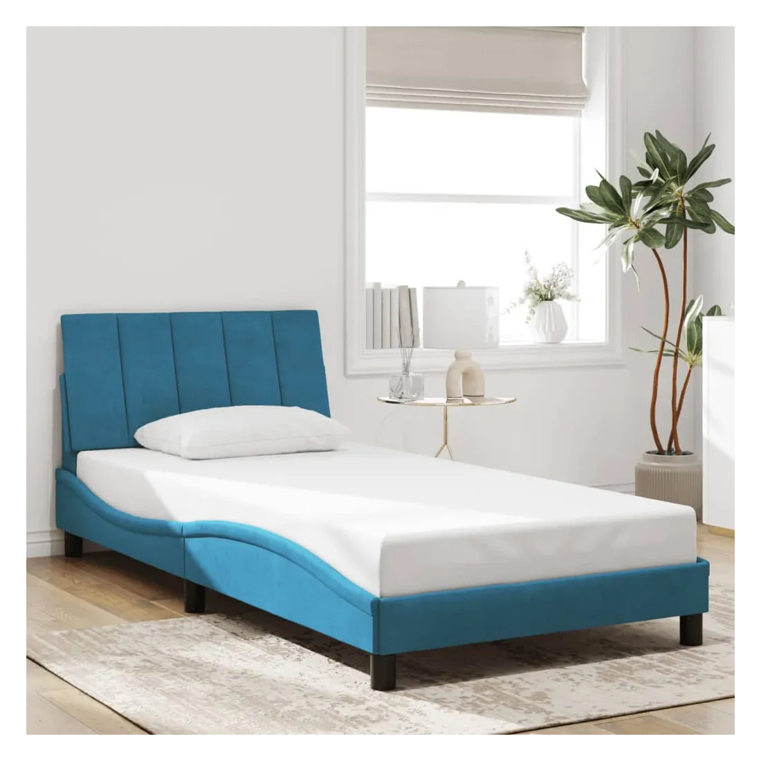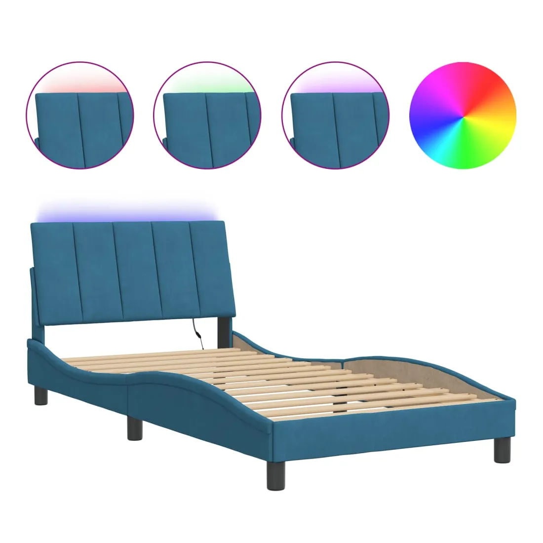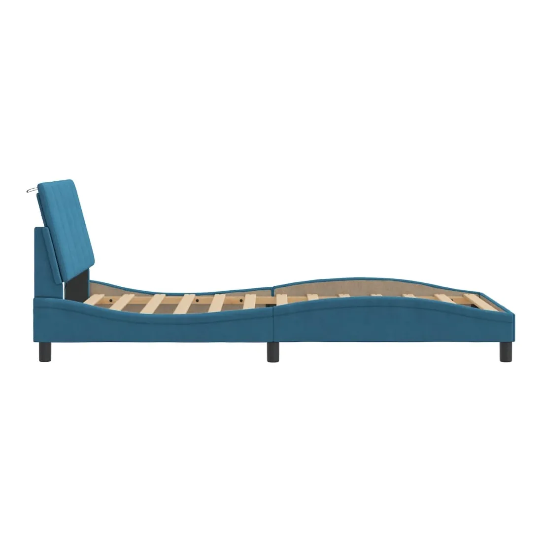 Obtenez une meilleure nuit de sommeil reposante grâce à ce cadre de lit avec lumières LED ! Il est un supplément accueillant à toute chambre à coucher. Velours doux : le velours est un tissu doux et confortable, agréable au toucher.Lattes de contreplaqué : les lattes de contreplaqué assurent une bonne répartition du poids, garantissant que le matelas reste en place à chaque torsion de votre corps pendant le sommeil.Excellent soutien : la tête de lit vous offre un excellent soutien du dos lorsque vous êtes assis dans votre lit pour lire ou regarder la télévision.Bande LED colorée : apportez de la gaieté dans l'obscurité avec des lumières LED colorées ! Les bandes auto-agrippantes situées à l'arrière du coussin de la tête de lit peuvent être utilisées pour fixer les lumières LED.Design latéral ondulé : l’aspect ondulé du cadre de lit est élégant et sophistiqué, ajoutant une touche moderne et élégante à votre décor, ce qui en fait le point central de votre chambre à coucher. Bon à savoir :Un matelas n'est pas inclus avec ce lit. Nous offrons une sélection variée de matelas. Vous pouvez consulter notre boutique pour trouver un matelas assorti.Ce produit est doté d'un connecteur USB qui nécessite une source d'alimentation USB de 5V certifiée (non incluse).
