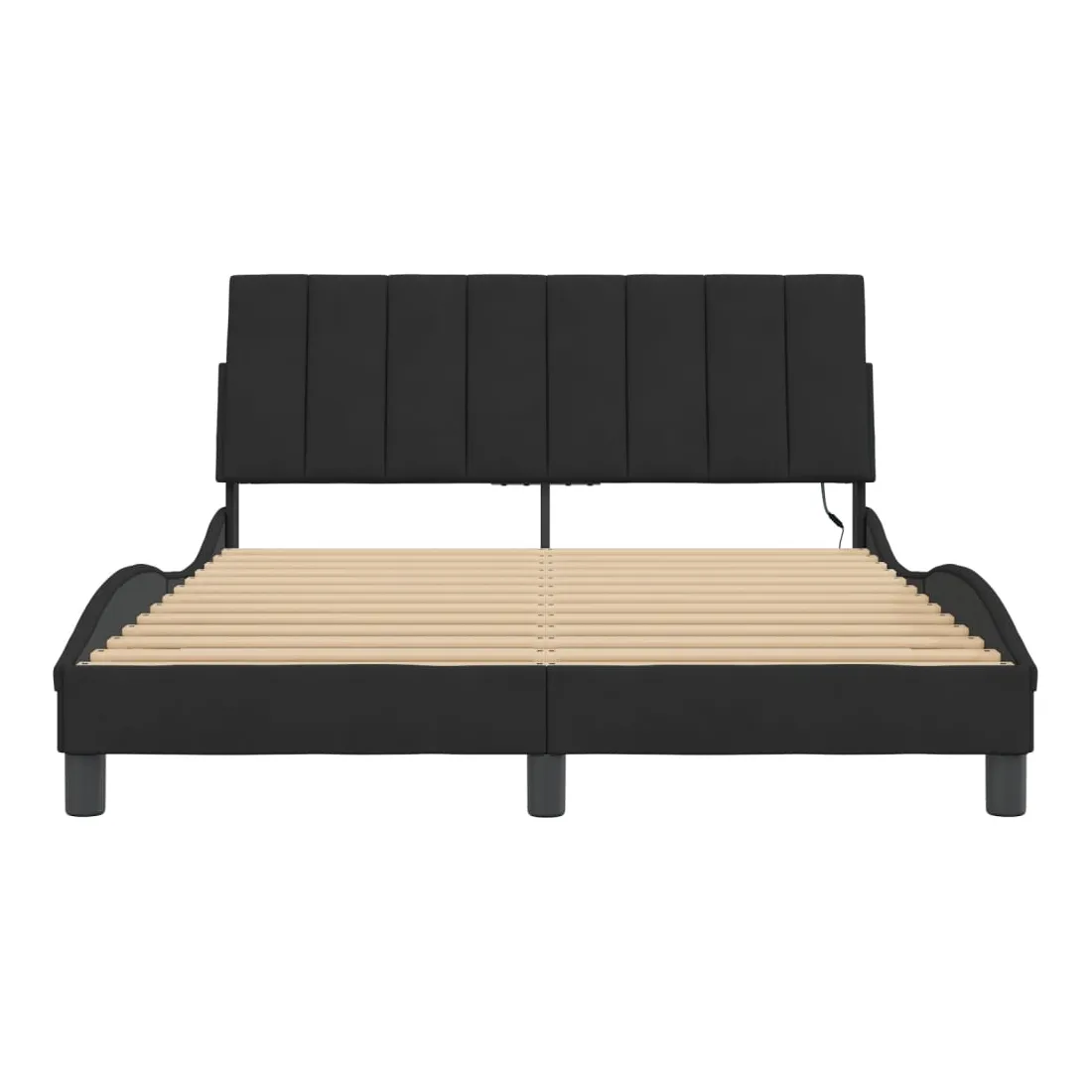 Obtenez une meilleure nuit de sommeil reposante grâce à ce cadre de lit avec lumières LED ! Il est un supplément accueillant à toute chambre à coucher. Velours doux : le velours est un tissu doux et confortable, agréable au toucher.Lattes de contreplaqué : les lattes de contreplaqué assurent une bonne répartition du poids, garantissant que le matelas reste en place à chaque torsion de votre corps pendant le sommeil.Excellent soutien : la tête de lit vous offre un excellent soutien du dos lorsque vous êtes assis dans votre lit pour lire ou regarder la télévision.Bande LED colorée : apportez de la gaieté dans l'obscurité avec des lumières LED colorées ! Les bandes auto-agrippantes situées à l'arrière du coussin de la tête de lit peuvent être utilisées pour fixer les lumières LED.Design latéral ondulé : l’aspect ondulé du cadre de lit est élégant et sophistiqué, ajoutant une touche moderne et élégante à votre décor, ce qui en fait le point central de votre chambre à coucher. Bon à savoir :Un matelas n'est pas inclus avec ce lit. Nous offrons une sélection variée de matelas. Vous pouvez consulter notre boutique pour trouver un matelas assorti.Ce produit est doté d'un connecteur USB qui nécessite une source d'alimentation USB de 5V certifiée (non incluse).