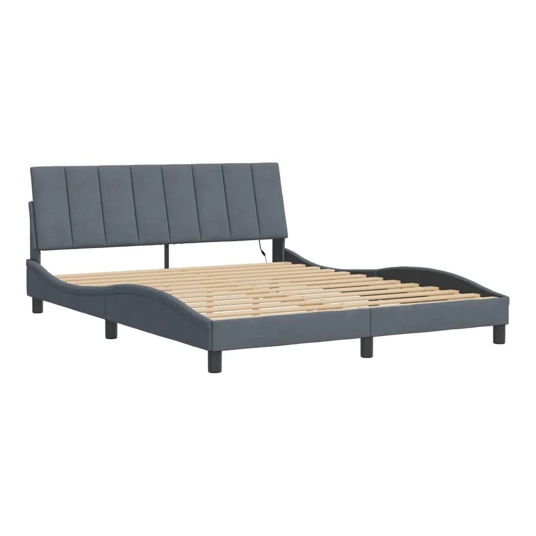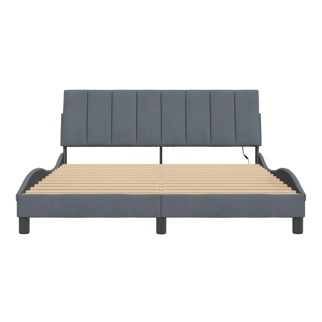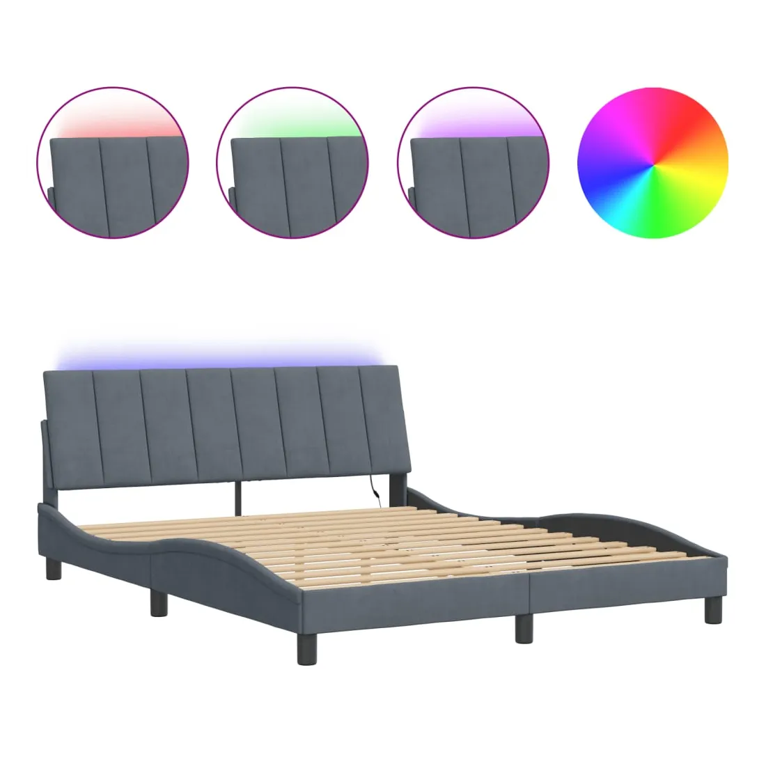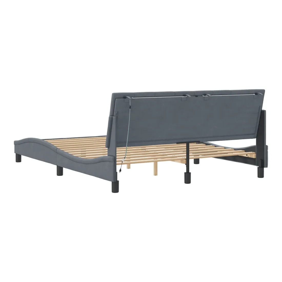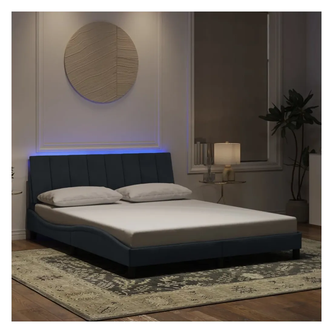 Obtenez une meilleure nuit de sommeil reposante grâce à ce cadre de lit avec lumières LED ! Il est un supplément accueillant à toute chambre à coucher. Velours doux : le velours est un tissu doux et confortable, agréable au toucher.Lattes de contreplaqué : les lattes de contreplaqué assurent une bonne répartition du poids, garantissant que le matelas reste en place à chaque torsion de votre corps pendant le sommeil.Excellent soutien : la tête de lit vous offre un excellent soutien du dos lorsque vous êtes assis dans votre lit pour lire ou regarder la télévision.Bande LED colorée : apportez de la gaieté dans l'obscurité avec des lumières LED colorées ! Les bandes auto-agrippantes situées à l'arrière du coussin de la tête de lit peuvent être utilisées pour fixer les lumières LED.Design latéral ondulé : l’aspect ondulé du cadre de lit est élégant et sophistiqué, ajoutant une touche moderne et élégante à votre décor, ce qui en fait le point central de votre chambre à coucher. Bon à savoir :Un matelas n'est pas inclus avec ce lit. Nous offrons une sélection variée de matelas. Vous pouvez consulter notre boutique pour trouver un matelas assorti.Ce produit est doté d'un connecteur USB qui nécessite une source d'alimentation USB de 5V certifiée (non incluse).