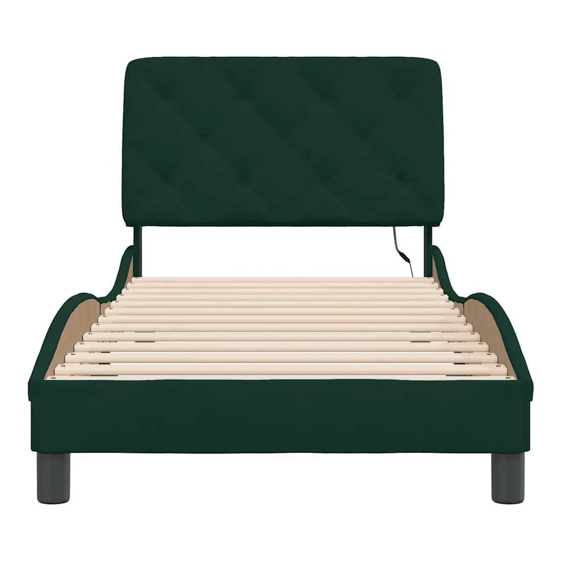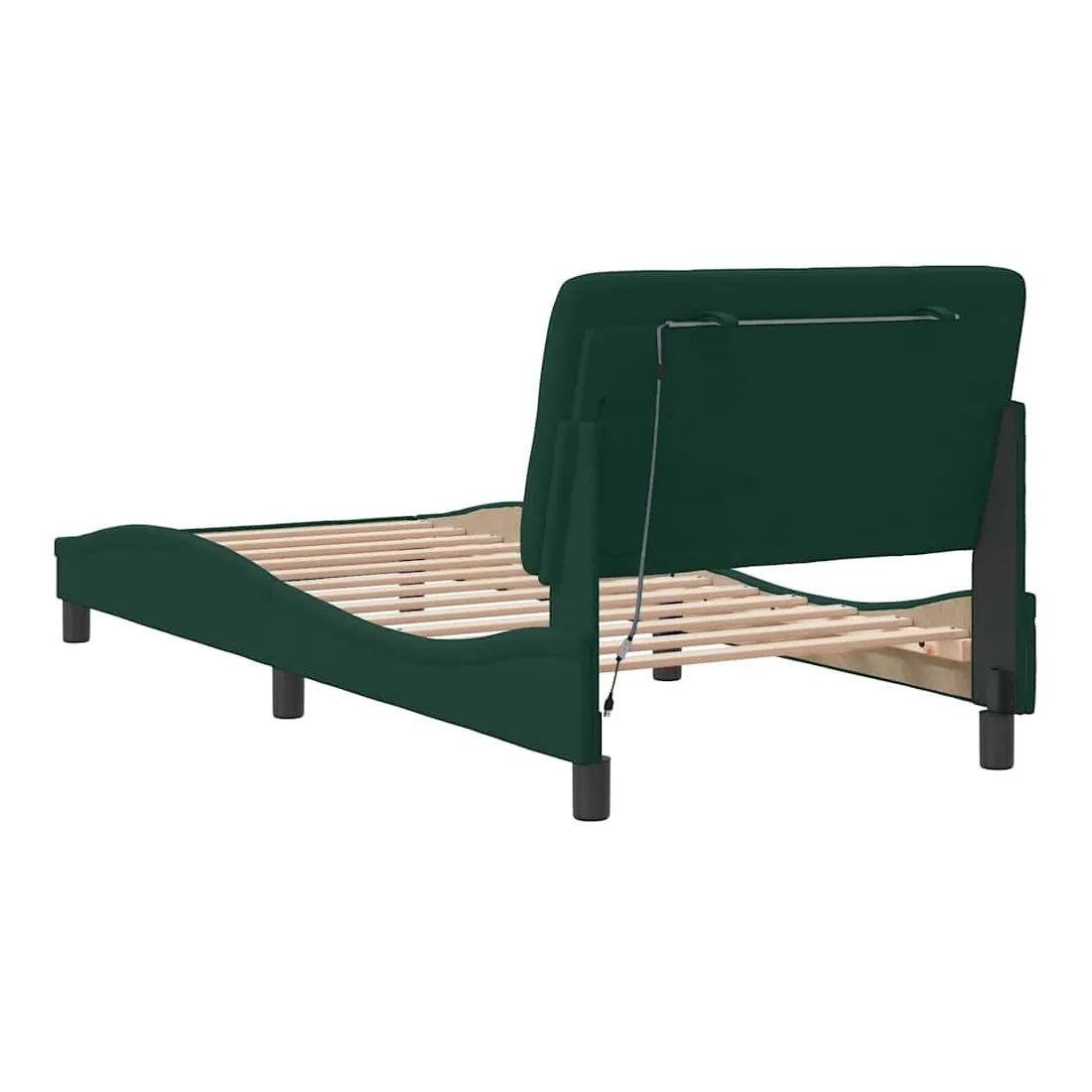 Obtenez une meilleure nuit de sommeil reposante grâce à ce cadre de lit avec lumières LED ! Il est un supplément accueillant à toute chambre à coucher. Velours doux : le velours est un tissu doux et confortable, agréable au toucher. Lattes de contreplaqué : les lattes de contreplaqué assurent une bonne répartition du poids, garantissant que le matelas reste en place à chaque torsion de votre corps pendant le sommeil. Excellent soutien : l'oreiller de tête de lit est rembourré avec de la mousse pour un confort ultra doux et optimal vous offre un excellent soutien du dos lorsque vous êtes assis dans votre lit pour lire ou regarder la télévision. Bande LED colorée : apportez de la gaieté dans l'obscurité avec des lumières LED colorées ! Les bandes auto-agrippantes situées à l'arrière du coussin de la tête de lit peuvent être utilisées pour fixer les lumières LED. Design latéral ondulé : l’aspect ondulé du cadre de lit est élégant et sophistiqué, ajoutant une touche moderne et élégante à votre décor, ce qui en fait le point central de votre chambre à coucher. Bon à savoir :Un matelas n'est pas inclus avec ce lit. Nous offrons une sélection variée de matelas. Vous pouvez consulter notre boutique pour trouver un matelas assorti.Ce produit est doté d'un connecteur USB qui nécessite une source d'alimentation USB de 5V certifiée (non incluse).