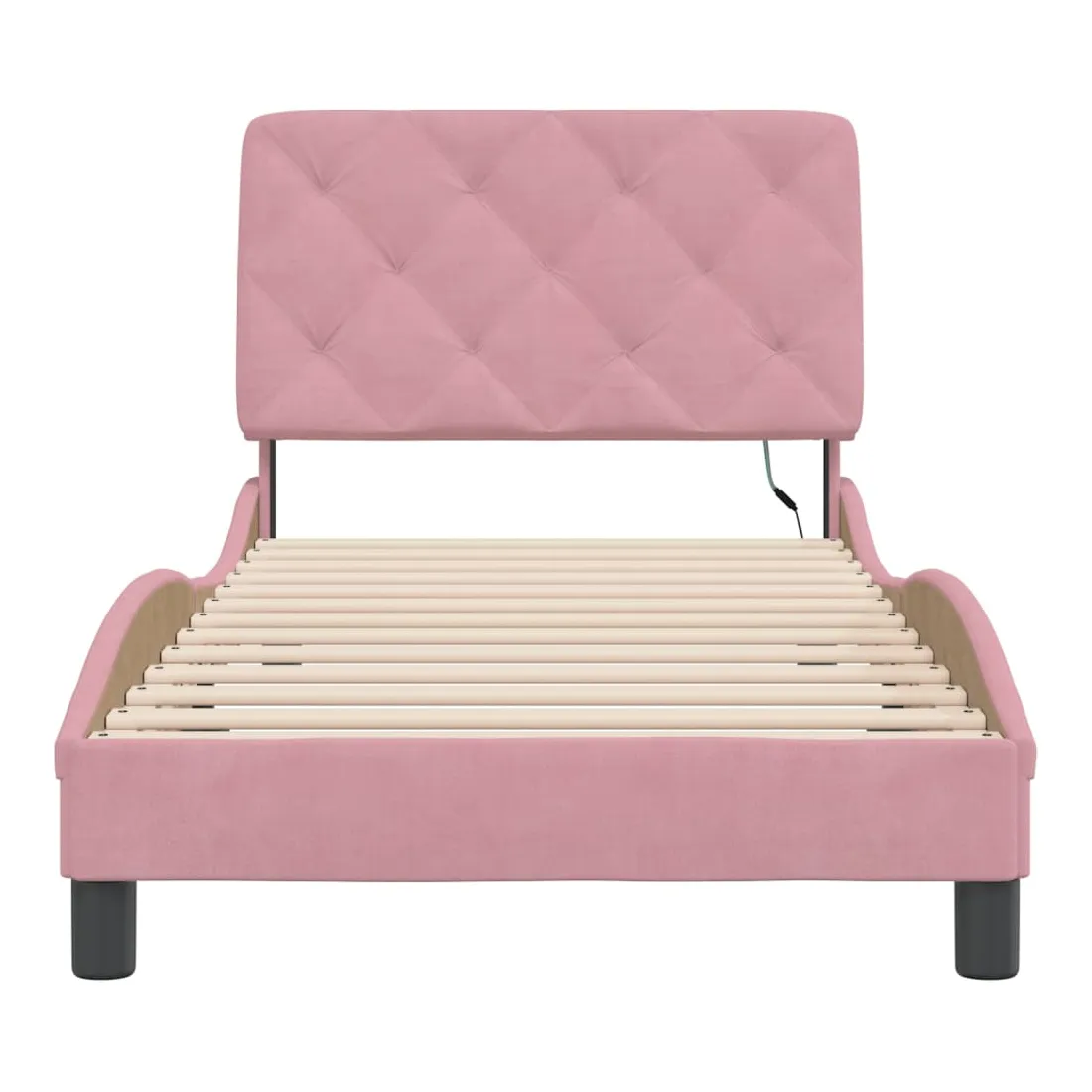 Obtenez une meilleure nuit de sommeil reposante grâce à ce cadre de lit avec lumières LED ! Il est un supplément accueillant à toute chambre à coucher. Velours doux : le velours est un tissu doux et confortable, agréable au toucher. Lattes de contreplaqué : les lattes de contreplaqué assurent une bonne répartition du poids, garantissant que le matelas reste en place à chaque torsion de votre corps pendant le sommeil. Excellent soutien : l'oreiller de tête de lit est rembourré avec de la mousse pour un confort ultra doux et optimal vous offre un excellent soutien du dos lorsque vous êtes assis dans votre lit pour lire ou regarder la télévision. Bande LED colorée : apportez de la gaieté dans l'obscurité avec des lumières LED colorées ! Les bandes auto-agrippantes situées à l'arrière du coussin de la tête de lit peuvent être utilisées pour fixer les lumières LED. Design latéral ondulé : l’aspect ondulé du cadre de lit est élégant et sophistiqué, ajoutant une touche moderne et élégante à votre décor, ce qui en fait le point central de votre chambre à coucher. Bon à savoir :Un matelas n'est pas inclus avec ce lit. Nous offrons une sélection variée de matelas. Vous pouvez consulter notre boutique pour trouver un matelas assorti.Ce produit est doté d'un connecteur USB qui nécessite une source d'alimentation USB de 5V certifiée (non incluse).