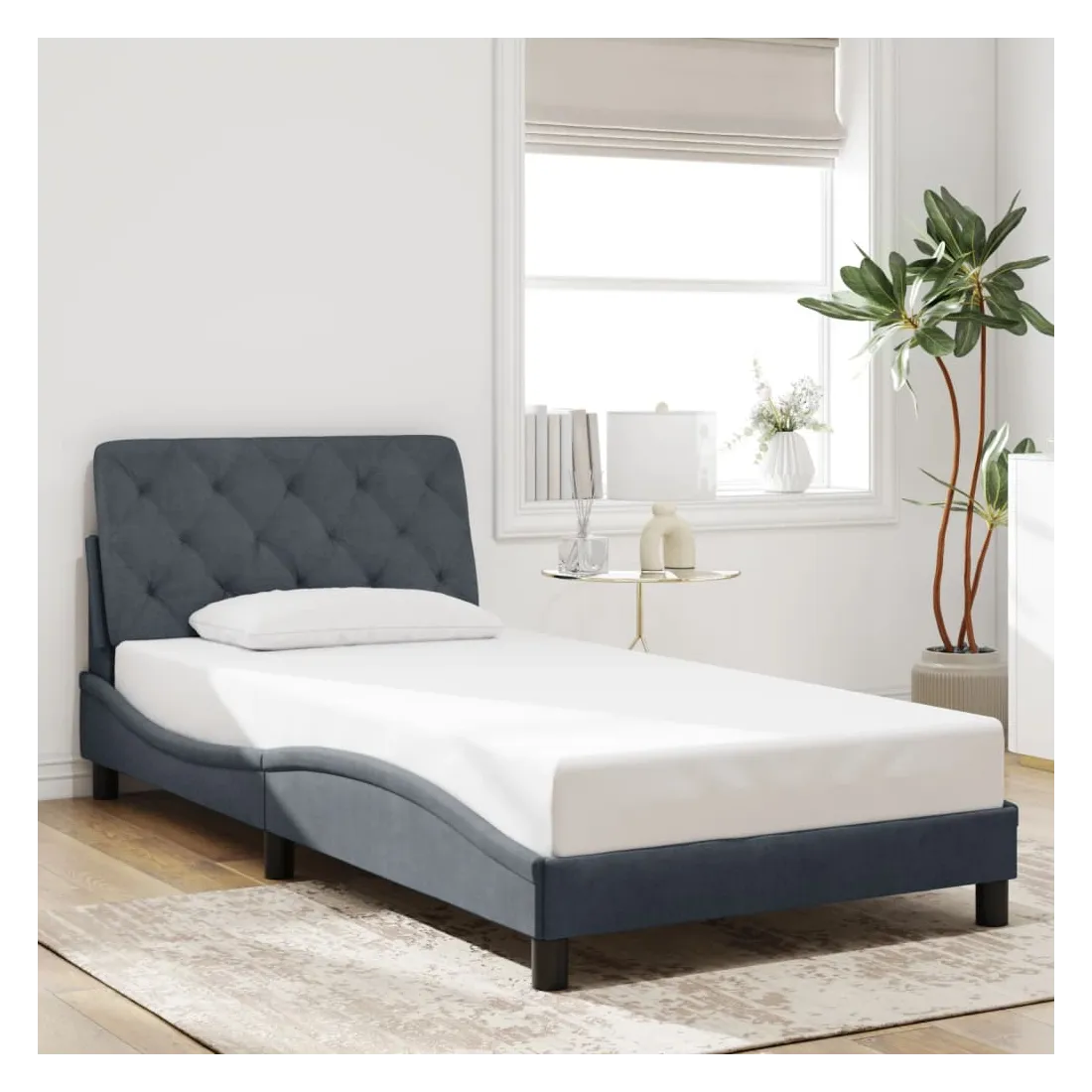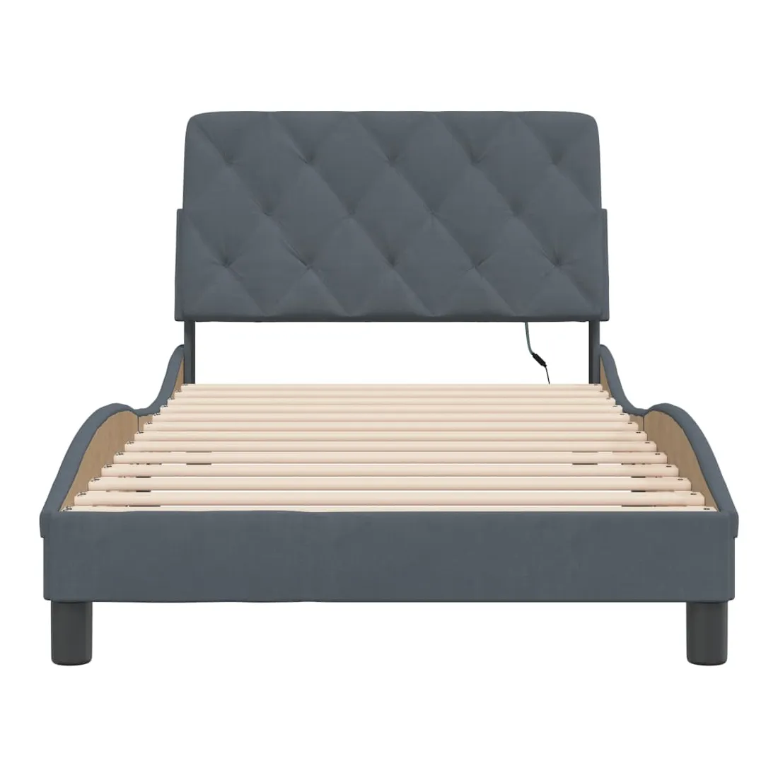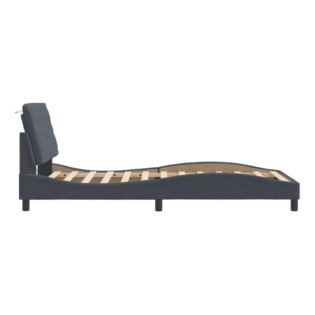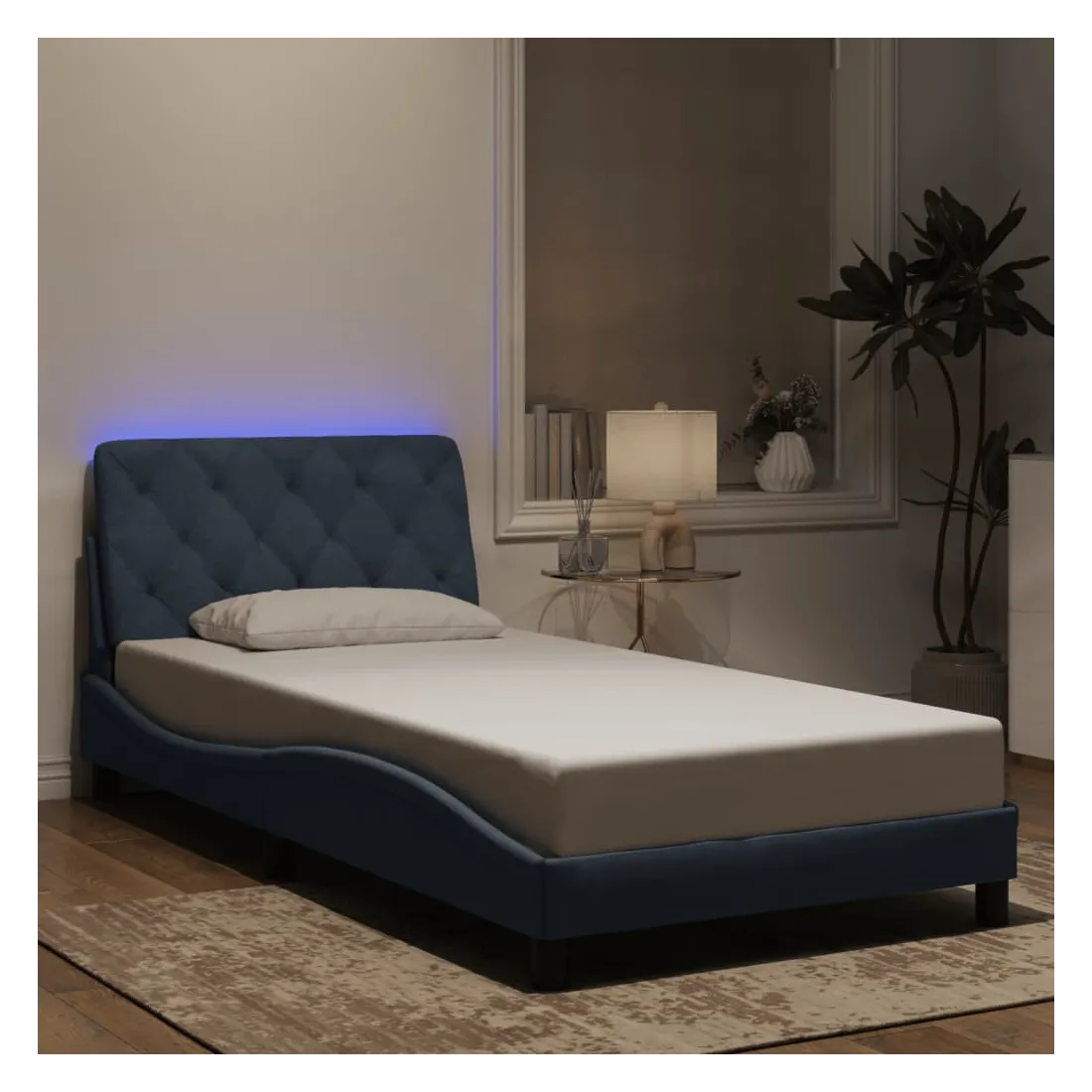Obtenez une meilleure nuit de sommeil reposante grâce à ce cadre de lit avec lumières LED ! Il est un supplément accueillant à toute chambre à coucher. Velours doux : le velours est un tissu doux et confortable, agréable au toucher. Lattes de contreplaqué : les lattes de contreplaqué assurent une bonne répartition du poids, garantissant que le matelas reste en place à chaque torsion de votre corps pendant le sommeil. Excellent soutien : l'oreiller de tête de lit est rembourré avec de la mousse pour un confort ultra doux et optimal vous offre un excellent soutien du dos lorsque vous êtes assis dans votre lit pour lire ou regarder la télévision. Bande LED colorée : apportez de la gaieté dans l'obscurité avec des lumières LED colorées ! Les bandes auto-agrippantes situées à l'arrière du coussin de la tête de lit peuvent être utilisées pour fixer les lumières LED. Design latéral ondulé : l’aspect ondulé du cadre de lit est élégant et sophistiqué, ajoutant une touche moderne et élégante à votre décor, ce qui en fait le point central de votre chambre à coucher. Bon à savoir :Un matelas n'est pas inclus avec ce lit. Nous offrons une sélection variée de matelas. Vous pouvez consulter notre boutique pour trouver un matelas assorti.Ce produit est doté d'un connecteur USB qui nécessite une source d'alimentation USB de 5V certifiée (non incluse).