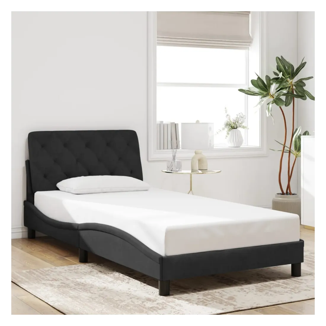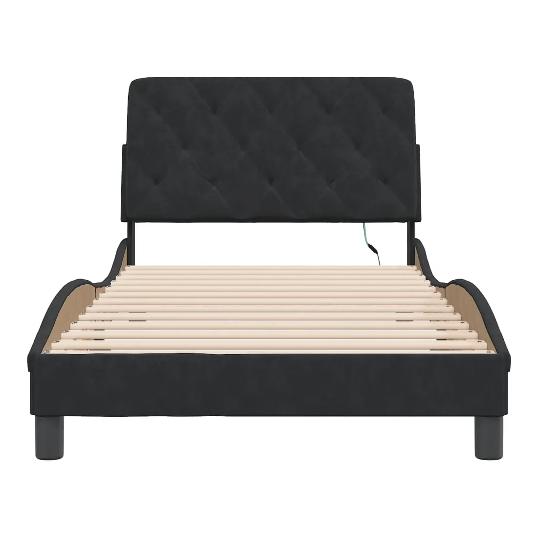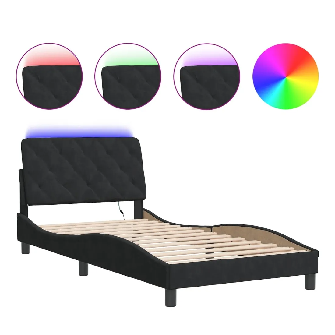 Obtenez une meilleure nuit de sommeil reposante grâce à ce cadre de lit avec lumières LED ! Il est un supplément accueillant à toute chambre à coucher. Velours doux : le velours est un tissu doux et confortable, agréable au toucher. Lattes de contreplaqué : les lattes de contreplaqué assurent une bonne répartition du poids, garantissant que le matelas reste en place à chaque torsion de votre corps pendant le sommeil. Excellent soutien : l'oreiller de tête de lit est rembourré avec de la mousse pour un confort ultra doux et optimal vous offre un excellent soutien du dos lorsque vous êtes assis dans votre lit pour lire ou regarder la télévision. Bande LED colorée : apportez de la gaieté dans l'obscurité avec des lumières LED colorées ! Les bandes auto-agrippantes situées à l'arrière du coussin de la tête de lit peuvent être utilisées pour fixer les lumières LED. Design latéral ondulé : l’aspect ondulé du cadre de lit est élégant et sophistiqué, ajoutant une touche moderne et élégante à votre décor, ce qui en fait le point central de votre chambre à coucher. Bon à savoir :Un matelas n'est pas inclus avec ce lit. Nous offrons une sélection variée de matelas. Vous pouvez consulter notre boutique pour trouver un matelas assorti.Ce produit est doté d'un connecteur USB qui nécessite une source d'alimentation USB de 5V certifiée (non incluse).