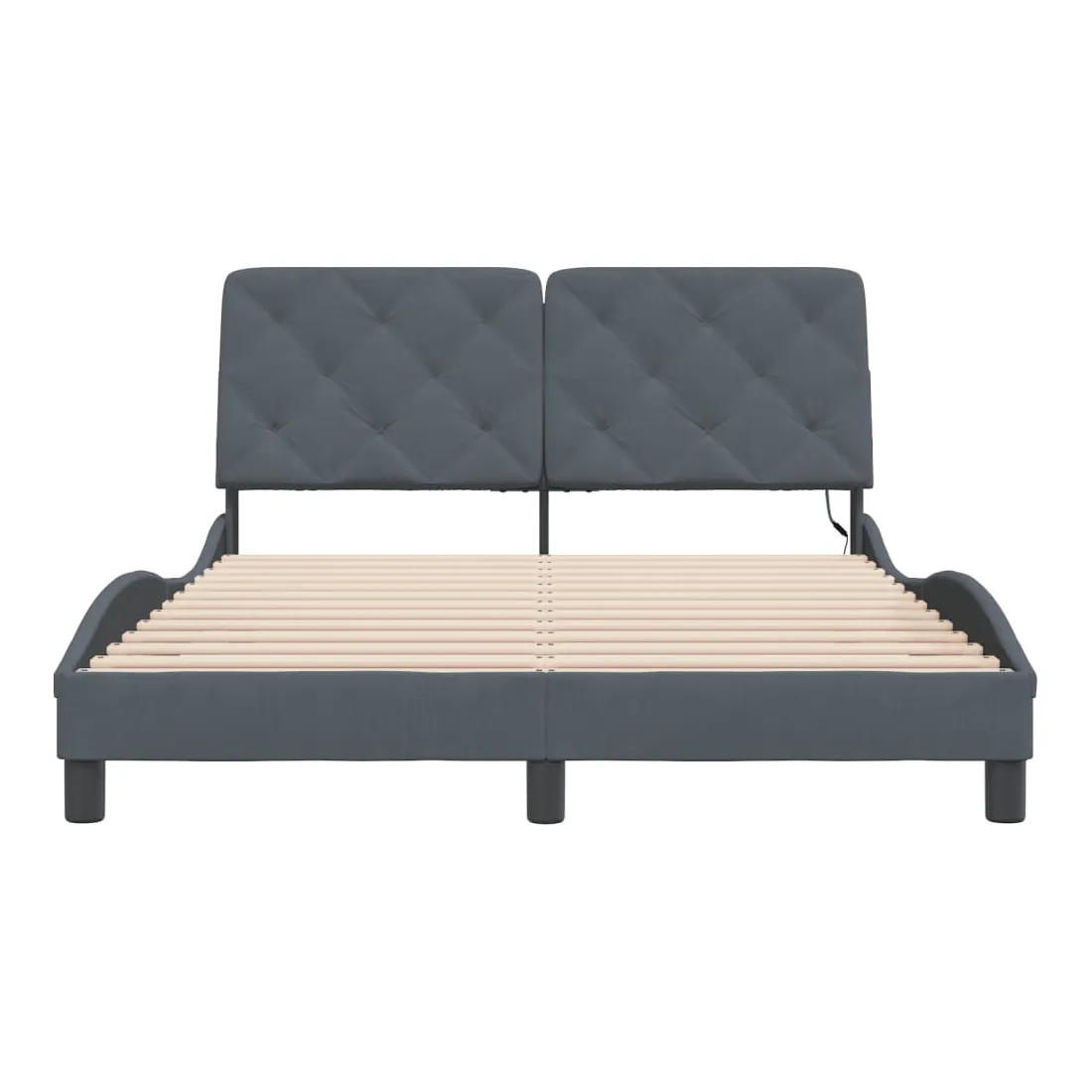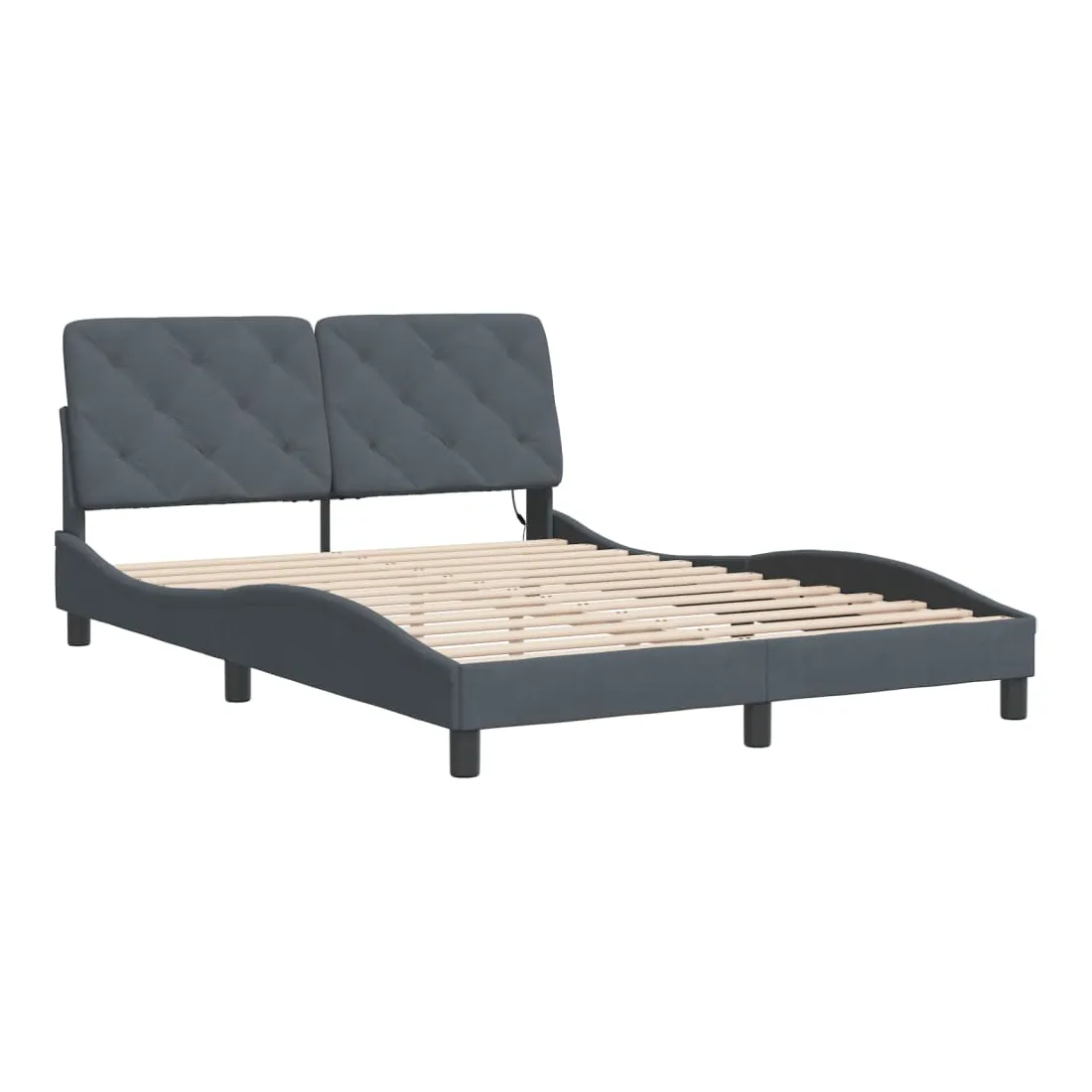 Obtenez une meilleure nuit de sommeil reposante grâce à ce cadre de lit avec lumières LED ! Il est un supplément accueillant à toute chambre à coucher. Velours doux : le velours est un tissu doux et confortable, agréable au toucher. Lattes de contreplaqué : les lattes de contreplaqué assurent une bonne répartition du poids, garantissant que le matelas reste en place à chaque torsion de votre corps pendant le sommeil. Excellent soutien : l'oreiller de tête de lit est rembourré avec de la mousse pour un confort ultra doux et optimal vous offre un excellent soutien du dos lorsque vous êtes assis dans votre lit pour lire ou regarder la télévision. Bande LED colorée : apportez de la gaieté dans l'obscurité avec des lumières LED colorées ! Les bandes auto-agrippantes situées à l'arrière du coussin de la tête de lit peuvent être utilisées pour fixer les lumières LED. Design latéral ondulé : l’aspect ondulé du cadre de lit est élégant et sophistiqué, ajoutant une touche moderne et élégante à votre décor, ce qui en fait le point central de votre chambre à coucher. Bon à savoir :Un matelas n'est pas inclus avec ce lit. Nous offrons une sélection variée de matelas. Vous pouvez consulter notre boutique pour trouver un matelas assorti.Ce produit est doté d'un connecteur USB qui nécessite une source d'alimentation USB de 5V certifiée (non incluse).