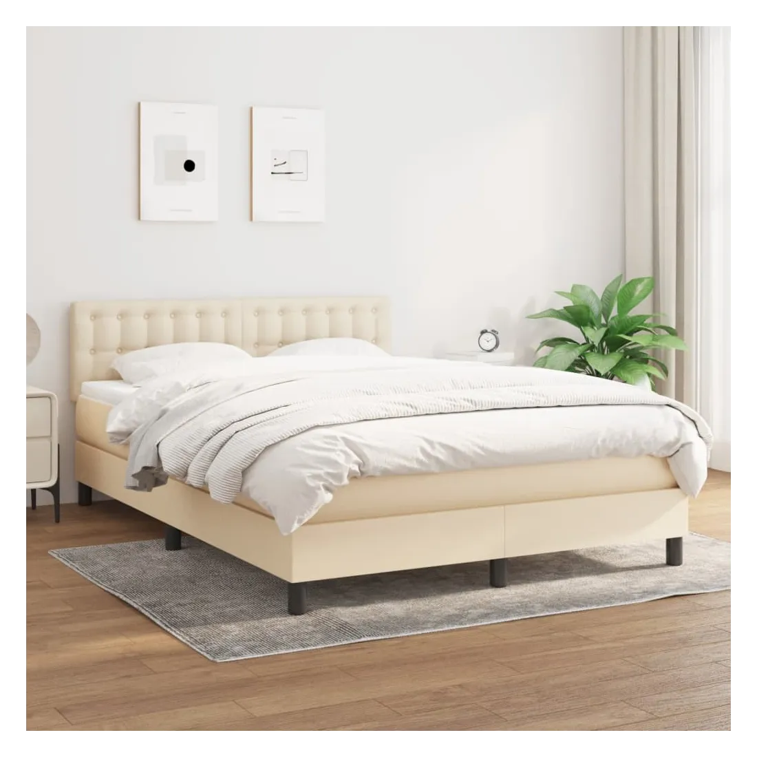 Sommier à lattes de lit avec matelas Crème 140x200 cm Tissu