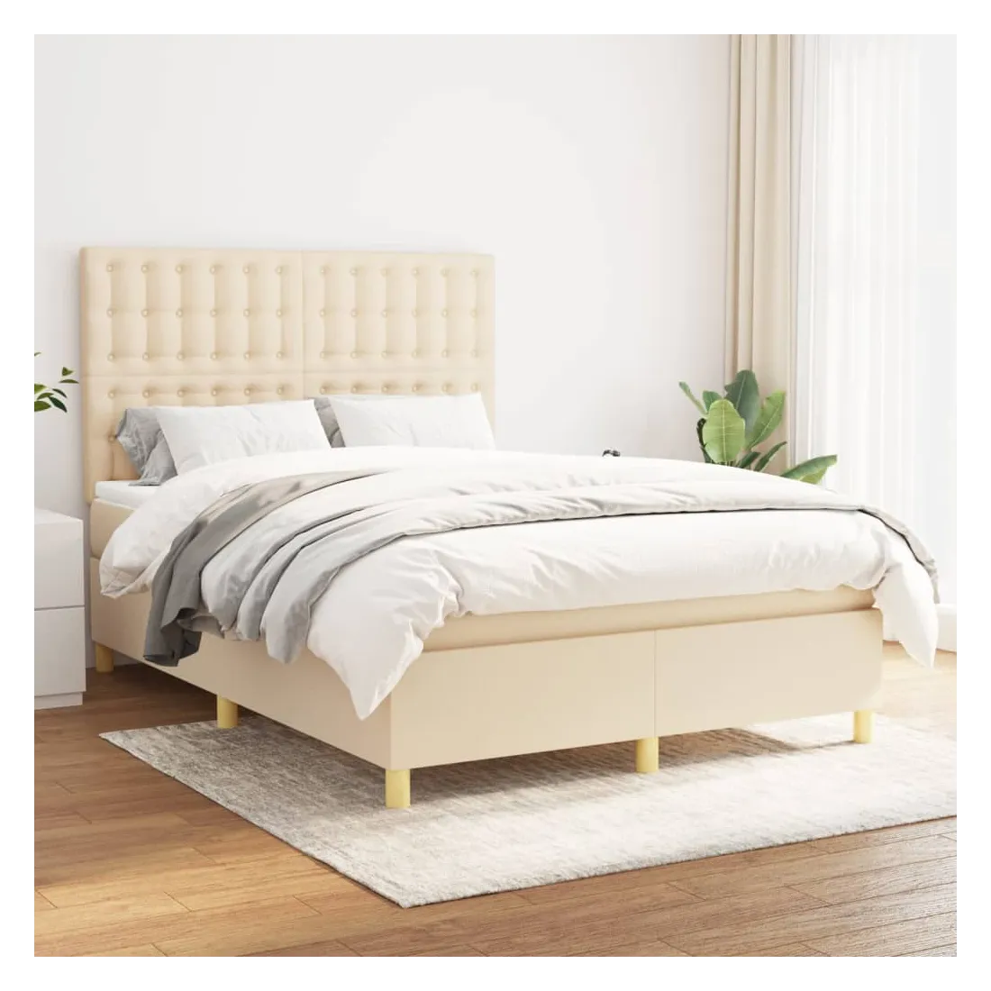 Sommier à lattes de lit avec matelas Crème 140x200 cm Tissu