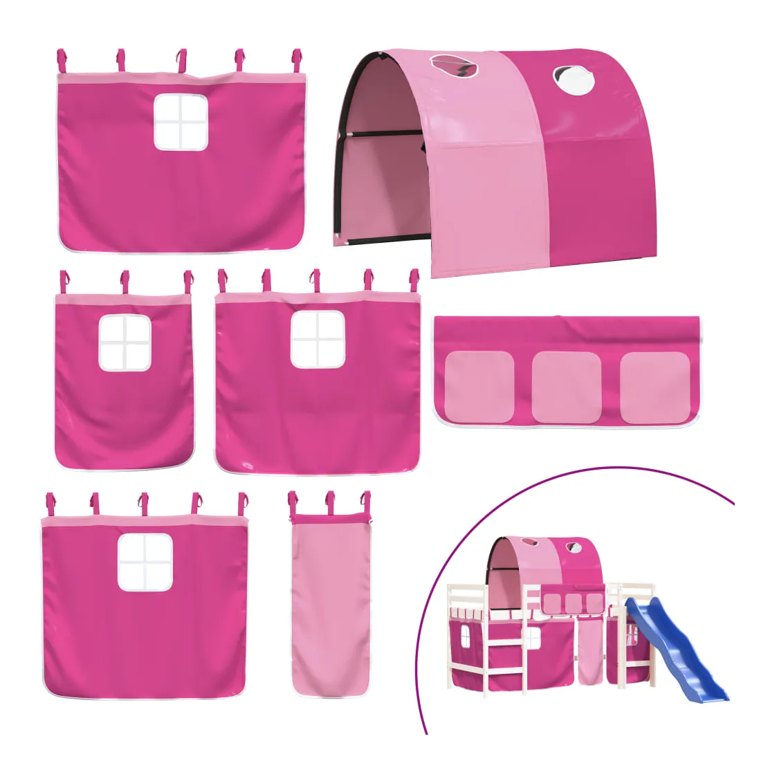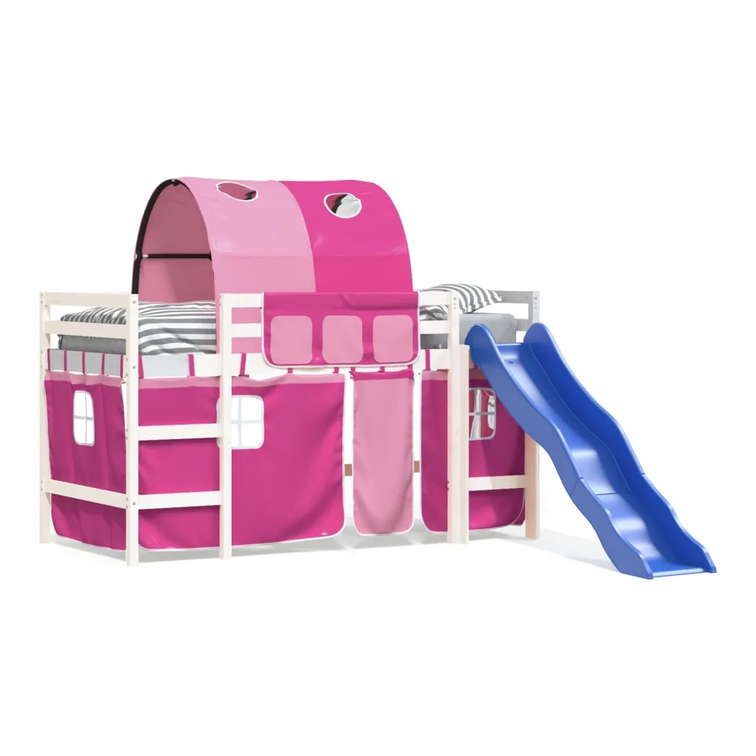 Lit mezzanine enfants avec tunnel sans matelas rose 80x200 cm