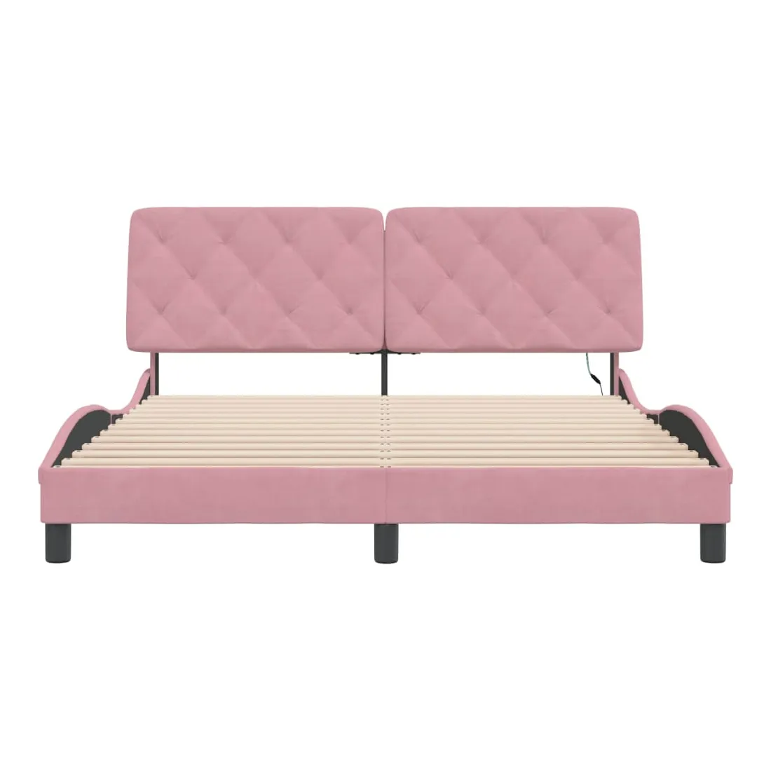Obtenez une meilleure nuit de sommeil reposante grâce à ce cadre de lit avec lumières LED ! Il est un supplément accueillant à toute chambre à coucher. Velours doux : le velours est un tissu doux et confortable, agréable au toucher. Lattes de contreplaqué : les lattes de contreplaqué assurent une bonne répartition du poids, garantissant que le matelas reste en place à chaque torsion de votre corps pendant le sommeil. Excellent soutien : l'oreiller de tête de lit est rembourré avec de la mousse pour un confort ultra doux et optimal vous offre un excellent soutien du dos lorsque vous êtes assis dans votre lit pour lire ou regarder la télévision. Bande LED colorée : apportez de la gaieté dans l'obscurité avec des lumières LED colorées ! Les bandes auto-agrippantes situées à l'arrière du coussin de la tête de lit peuvent être utilisées pour fixer les lumières LED. Design latéral ondulé : l’aspect ondulé du cadre de lit est élégant et sophistiqué, ajoutant une touche moderne et élégante à votre décor, ce qui en fait le point central de votre chambre à coucher. Bon à savoir :Un matelas n'est pas inclus avec ce lit. Nous offrons une sélection variée de matelas. Vous pouvez consulter notre boutique pour trouver un matelas assorti.Ce produit est doté d'un connecteur USB qui nécessite une source d'alimentation USB de 5V certifiée (non incluse).