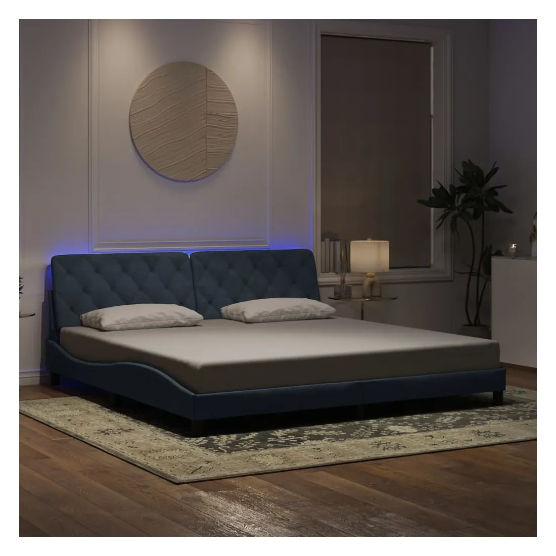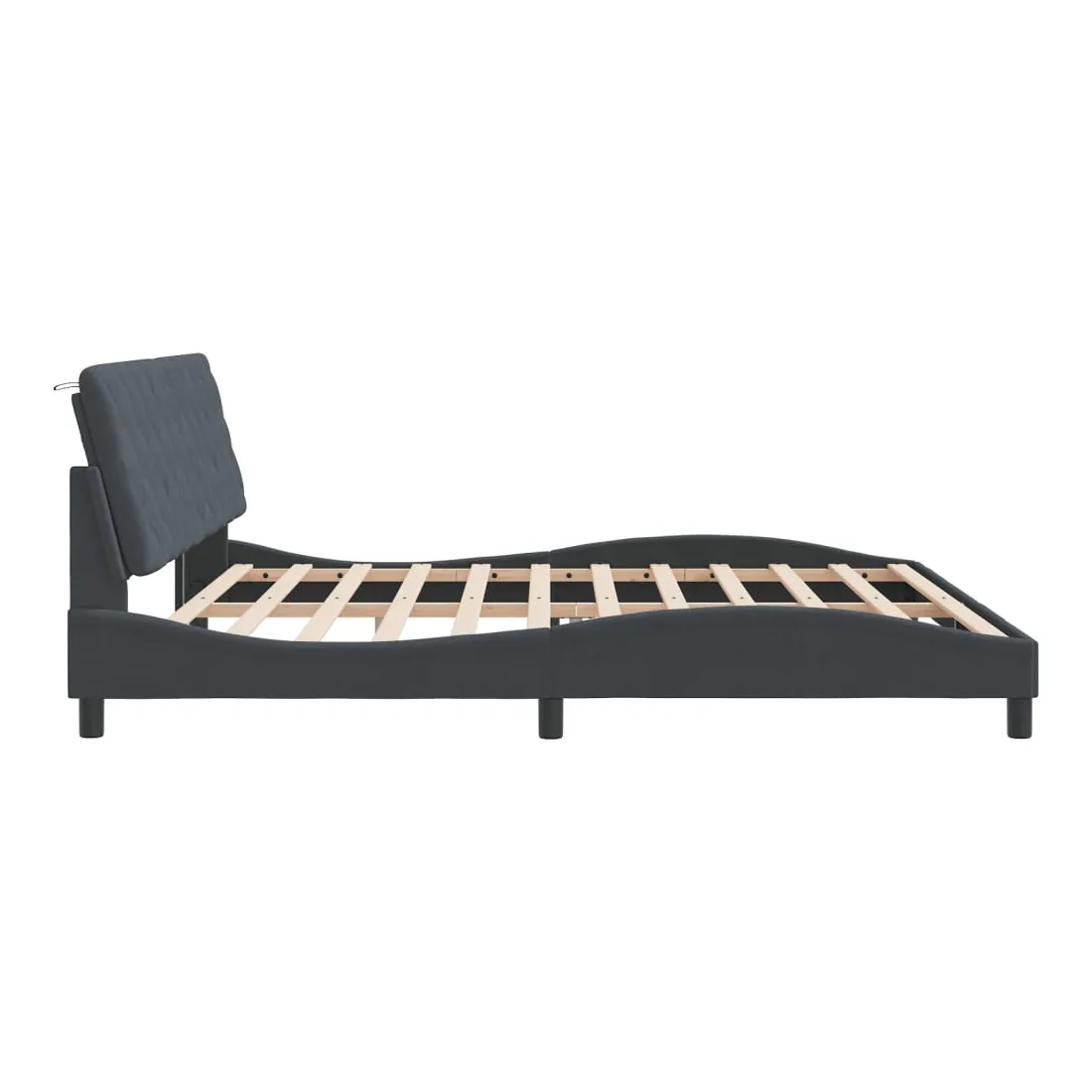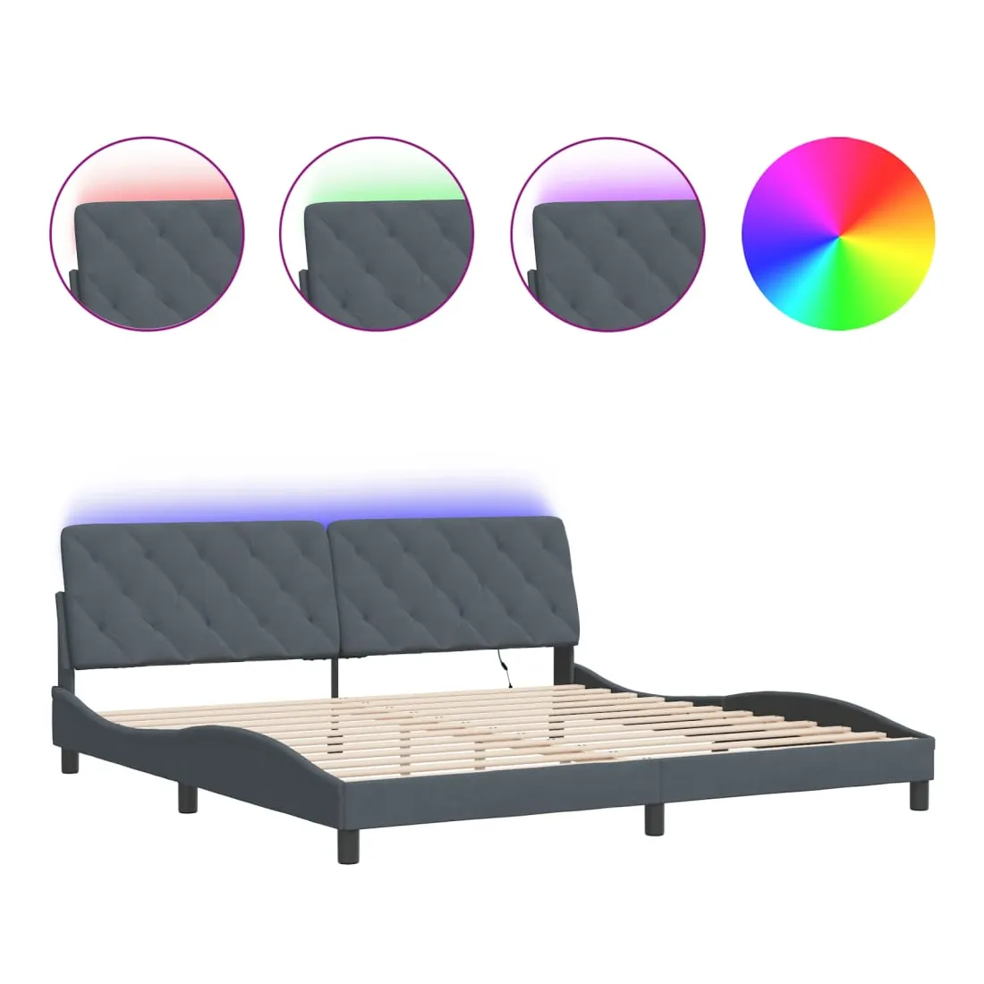 Obtenez une meilleure nuit de sommeil reposante grâce à ce cadre de lit avec lumières LED ! Il est un supplément accueillant à toute chambre à coucher. Velours doux : le velours est un tissu doux et confortable, agréable au toucher. Lattes de contreplaqué : les lattes de contreplaqué assurent une bonne répartition du poids, garantissant que le matelas reste en place à chaque torsion de votre corps pendant le sommeil. Excellent soutien : l'oreiller de tête de lit est rembourré avec de la mousse pour un confort ultra doux et optimal vous offre un excellent soutien du dos lorsque vous êtes assis dans votre lit pour lire ou regarder la télévision. Bande LED colorée : apportez de la gaieté dans l'obscurité avec des lumières LED colorées ! Les bandes auto-agrippantes situées à l'arrière du coussin de la tête de lit peuvent être utilisées pour fixer les lumières LED. Design latéral ondulé : l’aspect ondulé du cadre de lit est élégant et sophistiqué, ajoutant une touche moderne et élégante à votre décor, ce qui en fait le point central de votre chambre à coucher. Bon à savoir :Un matelas n'est pas inclus avec ce lit. Nous offrons une sélection variée de matelas. Vous pouvez consulter notre boutique pour trouver un matelas assorti.Ce produit est doté d'un connecteur USB qui nécessite une source d'alimentation USB de 5V certifiée (non incluse).