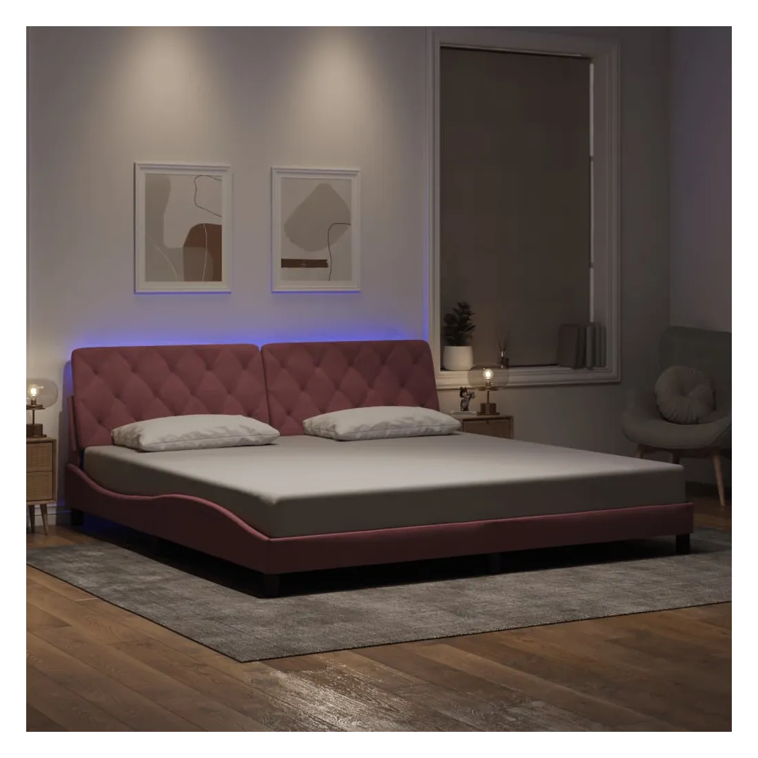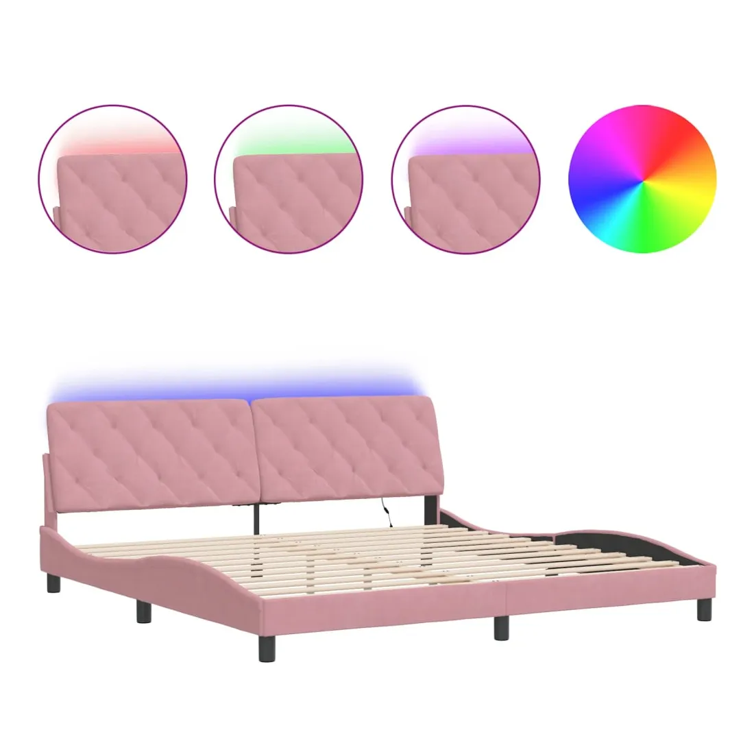 Obtenez une meilleure nuit de sommeil reposante grâce à ce cadre de lit avec lumières LED ! Il est un supplément accueillant à toute chambre à coucher. Velours doux : le velours est un tissu doux et confortable, agréable au toucher. Lattes de contreplaqué : les lattes de contreplaqué assurent une bonne répartition du poids, garantissant que le matelas reste en place à chaque torsion de votre corps pendant le sommeil. Excellent soutien : l'oreiller de tête de lit est rembourré avec de la mousse pour un confort ultra doux et optimal vous offre un excellent soutien du dos lorsque vous êtes assis dans votre lit pour lire ou regarder la télévision. Bande LED colorée : apportez de la gaieté dans l'obscurité avec des lumières LED colorées ! Les bandes auto-agrippantes situées à l'arrière du coussin de la tête de lit peuvent être utilisées pour fixer les lumières LED. Design latéral ondulé : l’aspect ondulé du cadre de lit est élégant et sophistiqué, ajoutant une touche moderne et élégante à votre décor, ce qui en fait le point central de votre chambre à coucher. Bon à savoir :Un matelas n'est pas inclus avec ce lit. Nous offrons une sélection variée de matelas. Vous pouvez consulter notre boutique pour trouver un matelas assorti.Ce produit est doté d'un connecteur USB qui nécessite une source d'alimentation USB de 5V certifiée (non incluse).