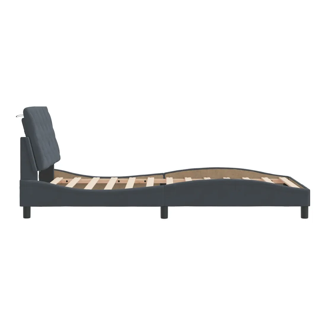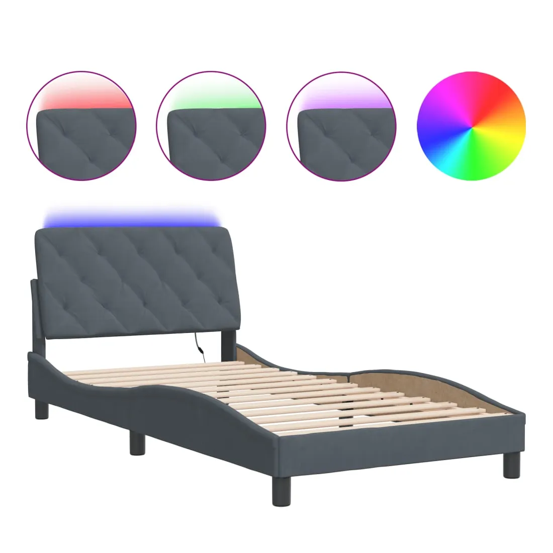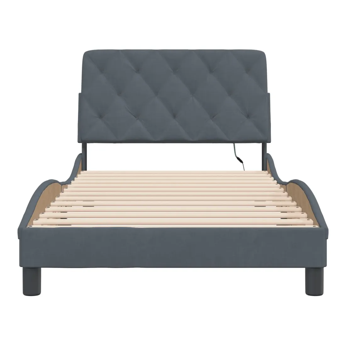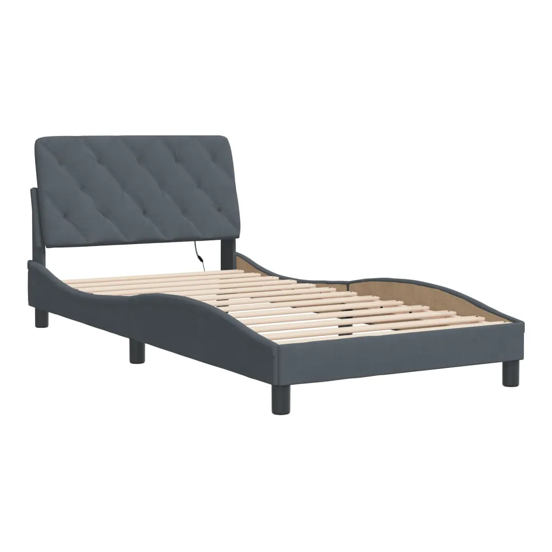 Obtenez une meilleure nuit de sommeil reposante grâce à ce cadre de lit avec lumières LED ! Il est un supplément accueillant à toute chambre à coucher. Velours doux : le velours est un tissu doux et confortable, agréable au toucher.Lattes de contreplaqué : les lattes de contreplaqué assurent une bonne répartition du poids, garantissant que le matelas reste en place à chaque torsion de votre corps pendant le sommeil.Excellent soutien : la tête de lit vous offre un excellent soutien du dos lorsque vous êtes assis dans votre lit pour lire ou regarder la télévision.Bande LED colorée : apportez de la gaieté dans l'obscurité avec des lumières LED colorées ! Les bandes auto-agrippantes situées à l'arrière du coussin de la tête de lit peuvent être utilisées pour fixer les lumières LED.Design latéral ondulé : l’aspect ondulé du cadre de lit est élégant et sophistiqué, ajoutant une touche moderne et élégante à votre décor, ce qui en fait le point central de votre chambre à coucher. Bon à savoir :Un matelas n'est pas inclus avec ce lit. Nous offrons une sélection variée de matelas. Vous pouvez consulter notre boutique pour trouver un matelas assorti.Ce produit est doté d'un connecteur USB qui nécessite une source d'alimentation USB de 5V certifiée (non incluse).