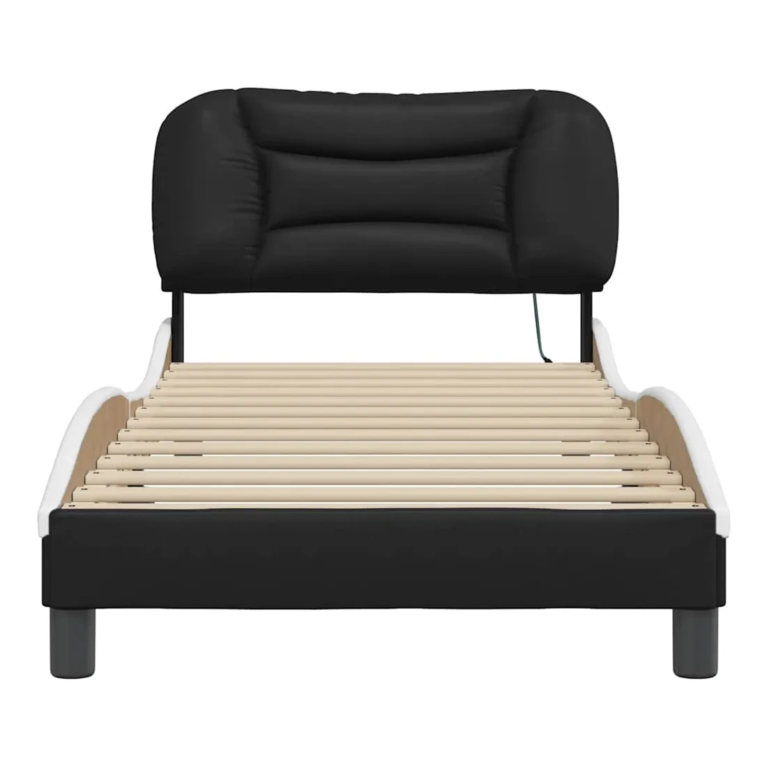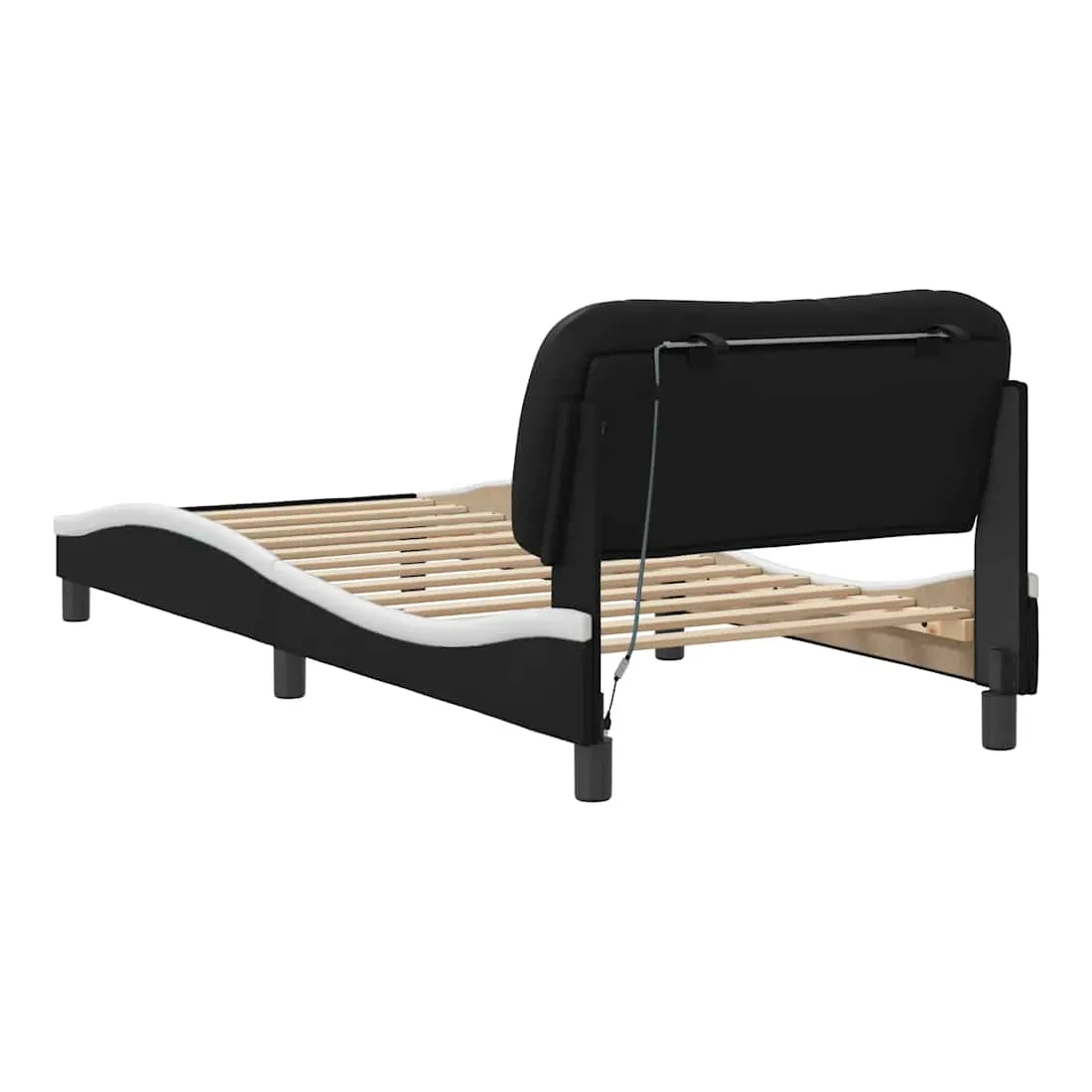 Obtenez une meilleure nuit de sommeil reposante grâce à ce cadre de lit avec lumières LED ! Il est un supplément accueillant à toute chambre à coucher. Similicuir durable : le similicuir de qualité supérieure est un matériau très durable. Il est résistant aux taches, ce qui le rend facile à nettoyer avec un chiffon humide. La surface lisse donne également un aspect luxueux et la beauté du cuir véritable.Lattes de contreplaqué : les lattes de contreplaqué assurent une bonne répartition du poids, garantissant que le matelas reste en place à chaque torsion de votre corps pendant le sommeil.Excellent soutien : la tête de lit vous offre un excellent soutien du dos lorsque vous êtes assis dans votre lit pour lire ou regarder la télévision.Bande LED colorée : apportez de la gaieté dans l'obscurité avec des lumières LED colorées ! Les bandes auto-agrippantes situées à l'arrière du coussin de la tête de lit peuvent être utilisées pour fixer les lumières LED.Design latéral ondulé : l’aspect ondulé du cadre de lit est élégant et sophistiqué, ajoutant une touche moderne et élégante à votre décor, ce qui en fait le point central de votre chambre à coucher. Bon à savoir :Un matelas n'est pas inclus avec ce lit. Nous offrons une sélection variée de matelas. Vous pouvez consulter notre boutique pour trouver un matelas assorti.Ce produit est doté d'un connecteur USB qui nécessite une source d'alimentation USB de 5V certifiée (non incluse).