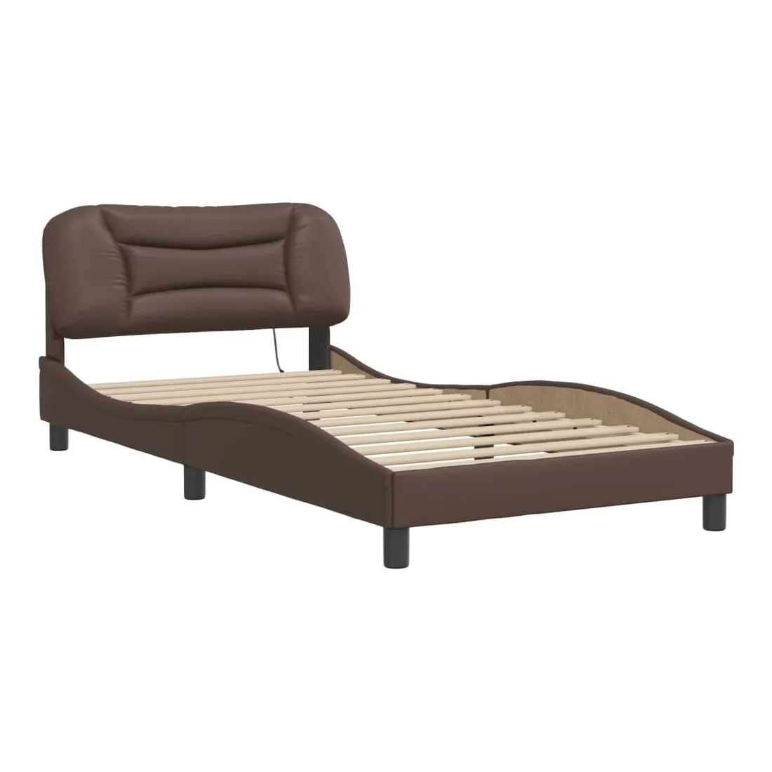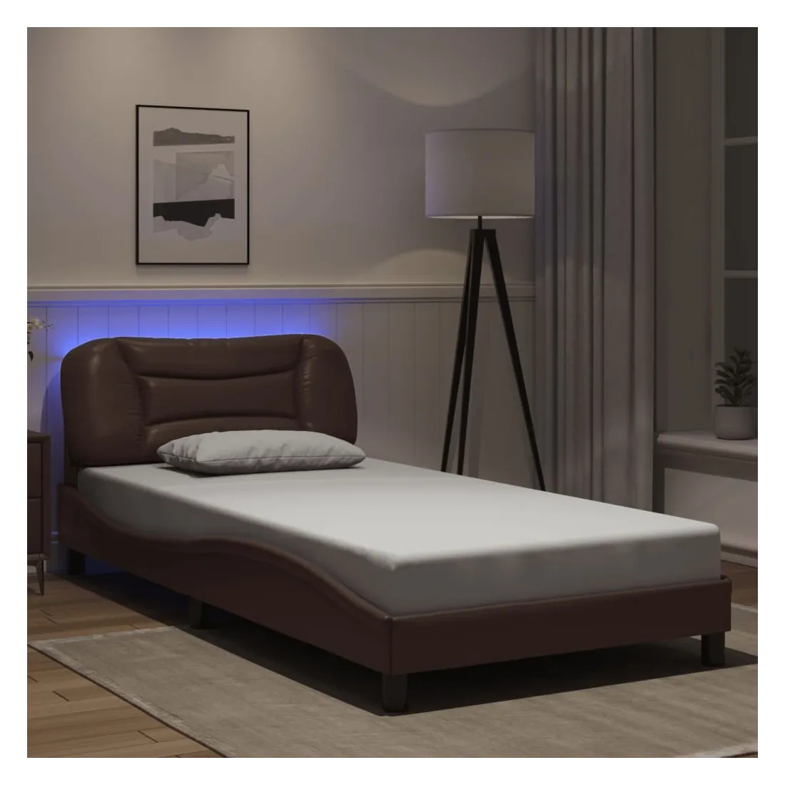 Obtenez une meilleure nuit de sommeil reposante grâce à ce cadre de lit avec lumières LED ! Il est un supplément accueillant à toute chambre à coucher. Similicuir durable : le similicuir de qualité supérieure est un matériau très durable. Il est résistant aux taches, ce qui le rend facile à nettoyer avec un chiffon humide. La surface lisse donne également un aspect luxueux et la beauté du cuir véritable.Lattes de contreplaqué : les lattes de contreplaqué assurent une bonne répartition du poids, garantissant que le matelas reste en place à chaque torsion de votre corps pendant le sommeil.Excellent soutien : la tête de lit vous offre un excellent soutien du dos lorsque vous êtes assis dans votre lit pour lire ou regarder la télévision.Bande LED colorée : apportez de la gaieté dans l'obscurité avec des lumières LED colorées ! Les bandes auto-agrippantes situées à l'arrière du coussin de la tête de lit peuvent être utilisées pour fixer les lumières LED.Design latéral ondulé : l’aspect ondulé du cadre de lit est élégant et sophistiqué, ajoutant une touche moderne et élégante à votre décor, ce qui en fait le point central de votre chambre à coucher. Bon à savoir :Un matelas n'est pas inclus avec ce lit. Nous offrons une sélection variée de matelas. Vous pouvez consulter notre boutique pour trouver un matelas assorti.Ce produit est doté d'un connecteur USB qui nécessite une source d'alimentation USB de 5V certifiée (non incluse).