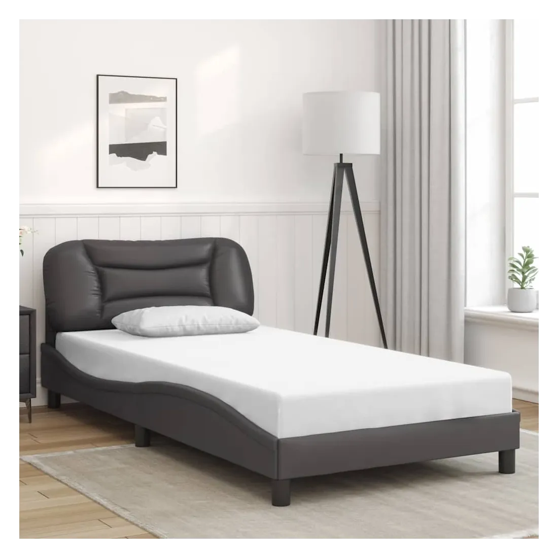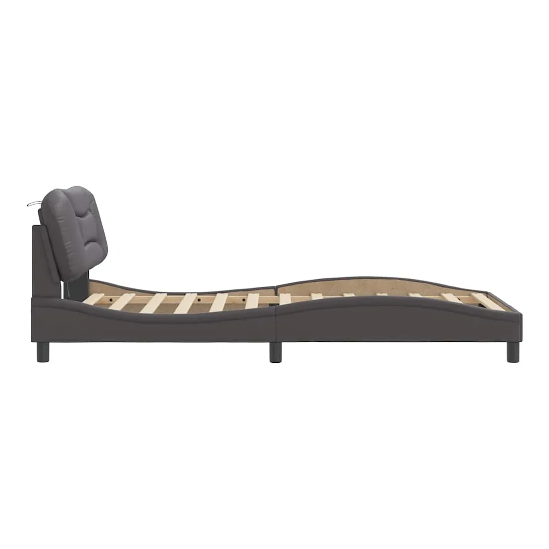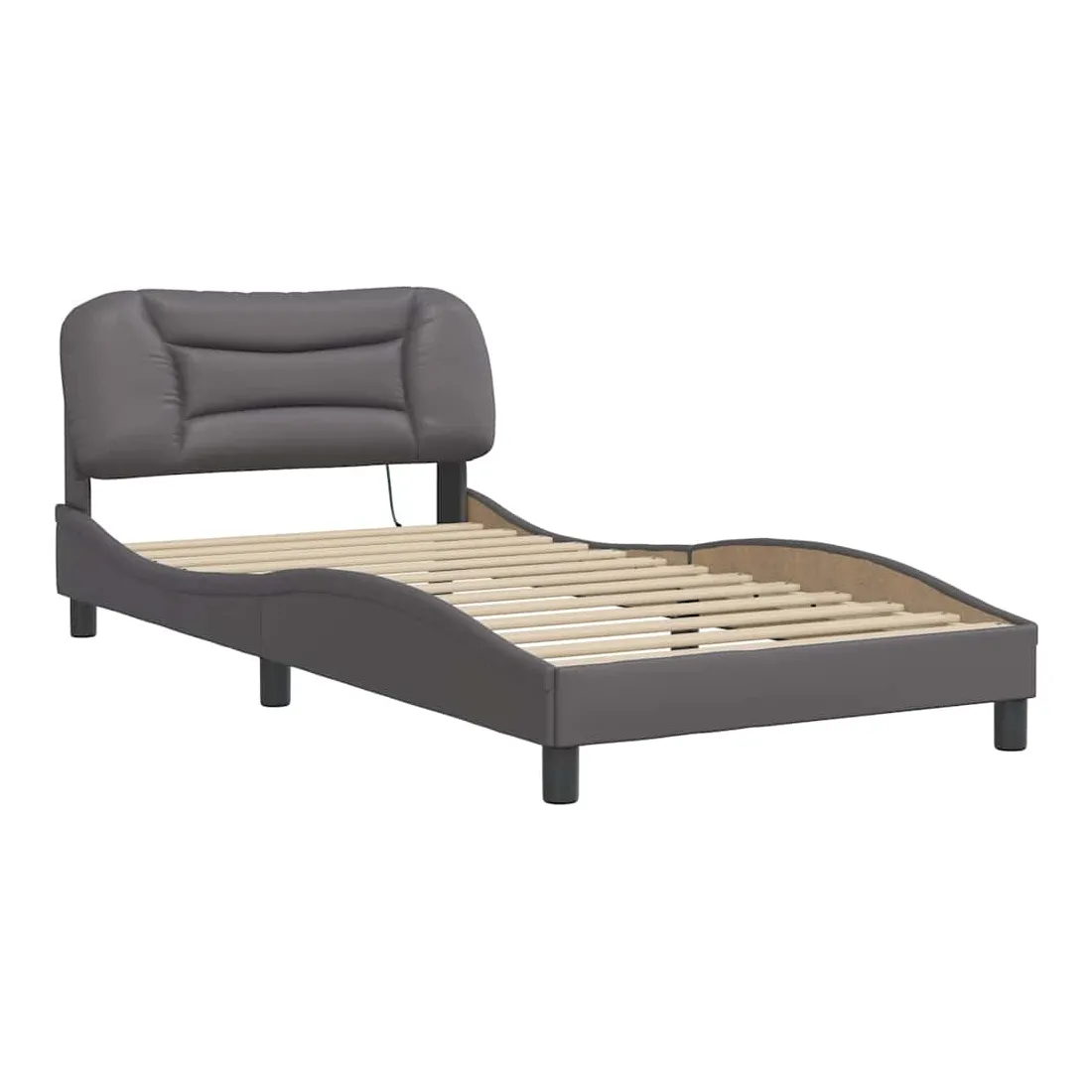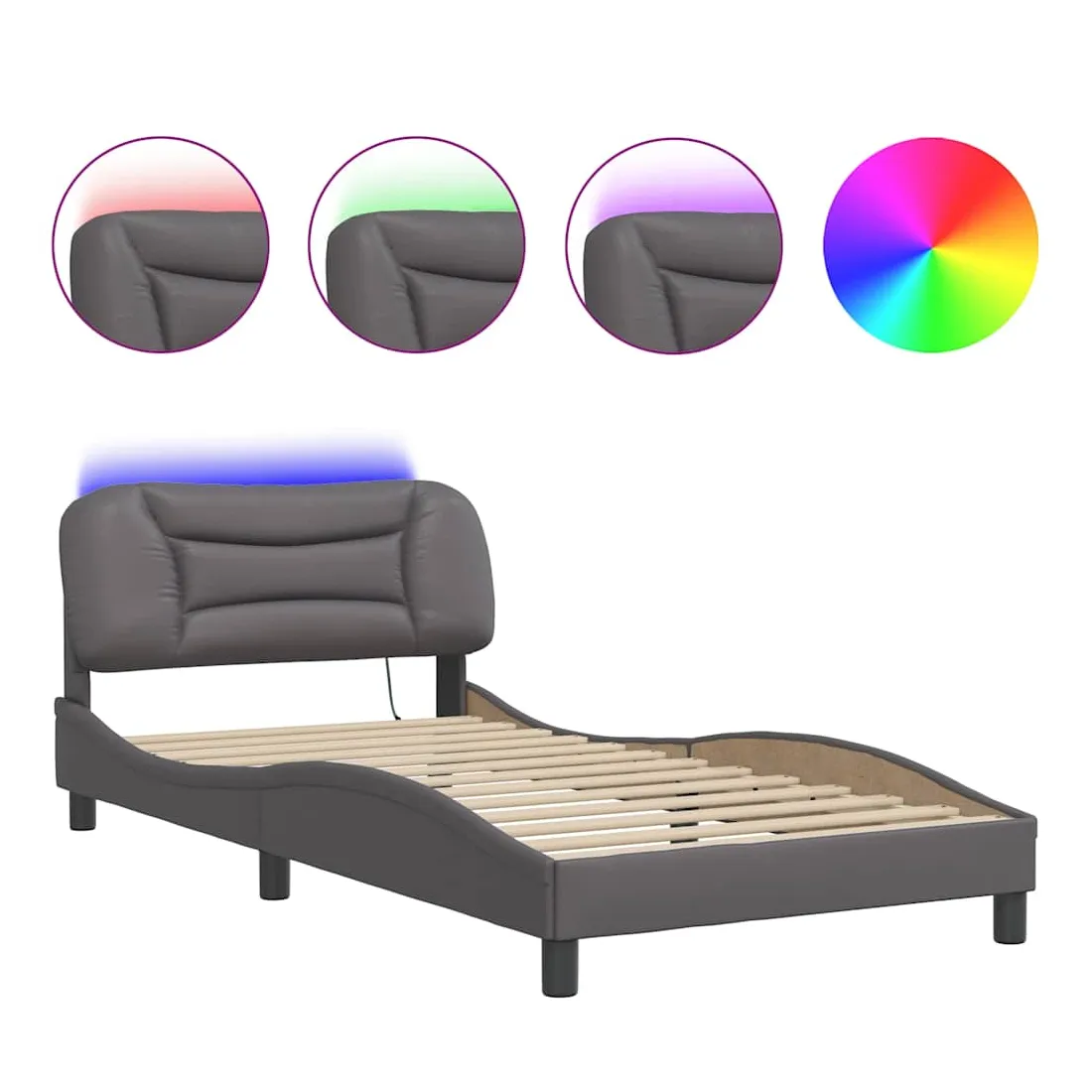 Obtenez une meilleure nuit de sommeil reposante grâce à ce cadre de lit avec lumières LED ! Il est un supplément accueillant à toute chambre à coucher. Similicuir durable : le similicuir de qualité supérieure est un matériau très durable. Il est résistant aux taches, ce qui le rend facile à nettoyer avec un chiffon humide. La surface lisse donne également un aspect luxueux et la beauté du cuir véritable.Lattes de contreplaqué : les lattes de contreplaqué assurent une bonne répartition du poids, garantissant que le matelas reste en place à chaque torsion de votre corps pendant le sommeil.Excellent soutien : la tête de lit vous offre un excellent soutien du dos lorsque vous êtes assis dans votre lit pour lire ou regarder la télévision.Bande LED colorée : apportez de la gaieté dans l'obscurité avec des lumières LED colorées ! Les bandes auto-agrippantes situées à l'arrière du coussin de la tête de lit peuvent être utilisées pour fixer les lumières LED.Design latéral ondulé : l’aspect ondulé du cadre de lit est élégant et sophistiqué, ajoutant une touche moderne et élégante à votre décor, ce qui en fait le point central de votre chambre à coucher. Bon à savoir :Un matelas n'est pas inclus avec ce lit. Nous offrons une sélection variée de matelas. Vous pouvez consulter notre boutique pour trouver un matelas assorti.Ce produit est doté d'un connecteur USB qui nécessite une source d'alimentation USB de 5V certifiée (non incluse).