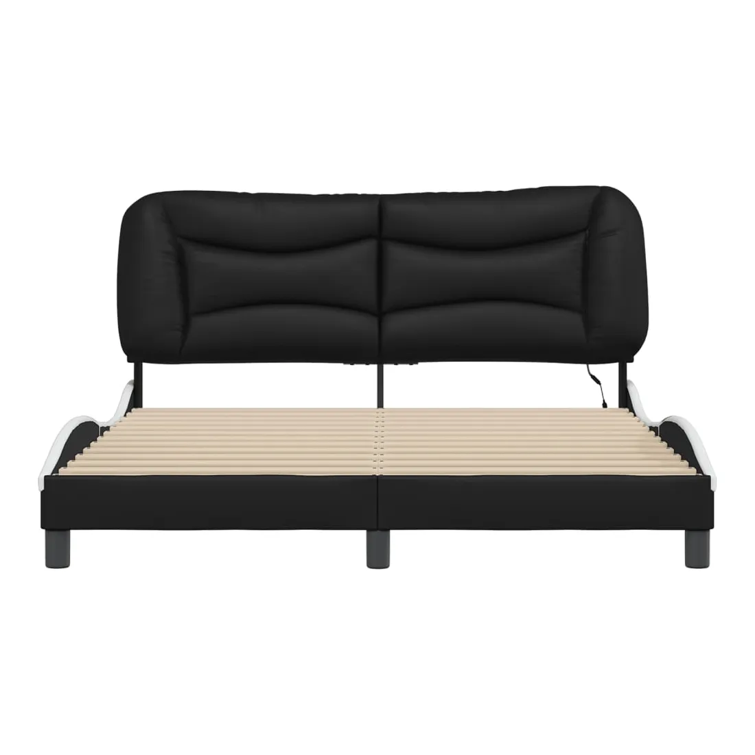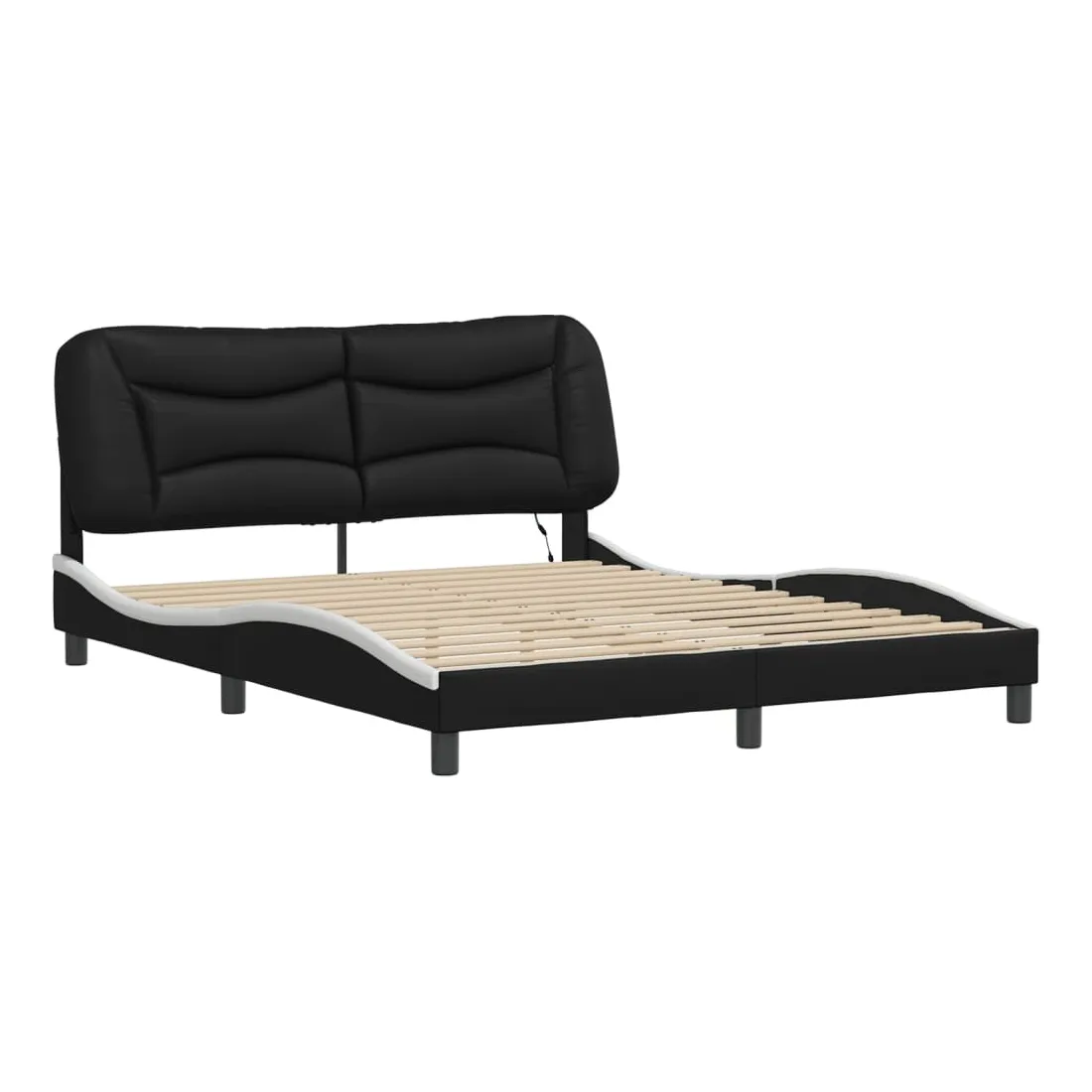 Obtenez une meilleure nuit de sommeil reposante grâce à ce cadre de lit avec lumières LED ! Il est un supplément accueillant à toute chambre à coucher. Similicuir durable : le similicuir de qualité supérieure est un matériau très durable. Il est résistant aux taches, ce qui le rend facile à nettoyer avec un chiffon humide. La surface lisse donne également un aspect luxueux et la beauté du cuir véritable.Lattes de contreplaqué : les lattes de contreplaqué assurent une bonne répartition du poids, garantissant que le matelas reste en place à chaque torsion de votre corps pendant le sommeil.Excellent soutien : la tête de lit vous offre un excellent soutien du dos lorsque vous êtes assis dans votre lit pour lire ou regarder la télévision.Bande LED colorée : apportez de la gaieté dans l'obscurité avec des lumières LED colorées ! Les bandes auto-agrippantes situées à l'arrière du coussin de la tête de lit peuvent être utilisées pour fixer les lumières LED.Design latéral ondulé : l’aspect ondulé du cadre de lit est élégant et sophistiqué, ajoutant une touche moderne et élégante à votre décor, ce qui en fait le point central de votre chambre à coucher. Bon à savoir :Un matelas n'est pas inclus avec ce lit. Nous offrons une sélection variée de matelas. Vous pouvez consulter notre boutique pour trouver un matelas assorti.Ce produit est doté d'un connecteur USB qui nécessite une source d'alimentation USB de 5V certifiée (non incluse).