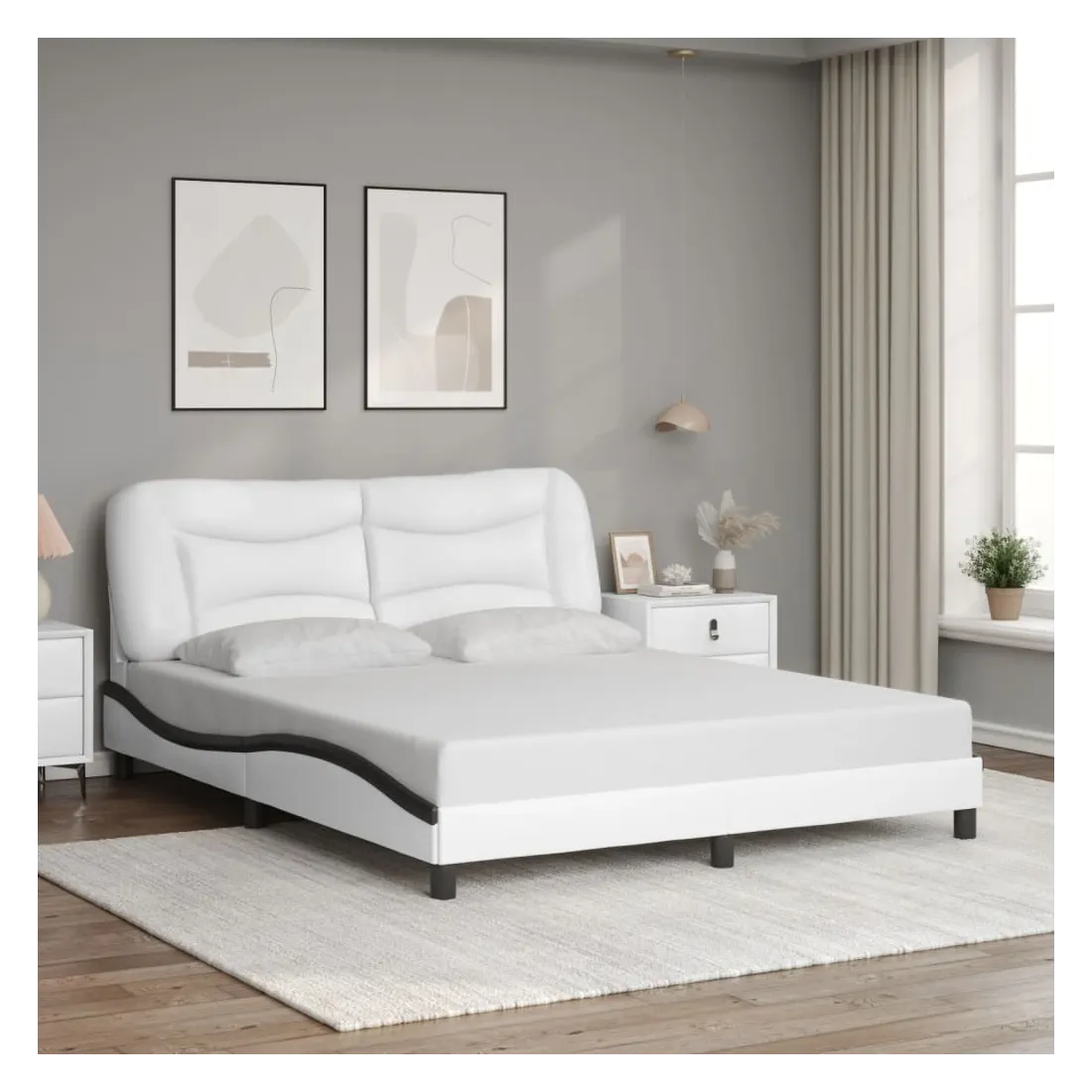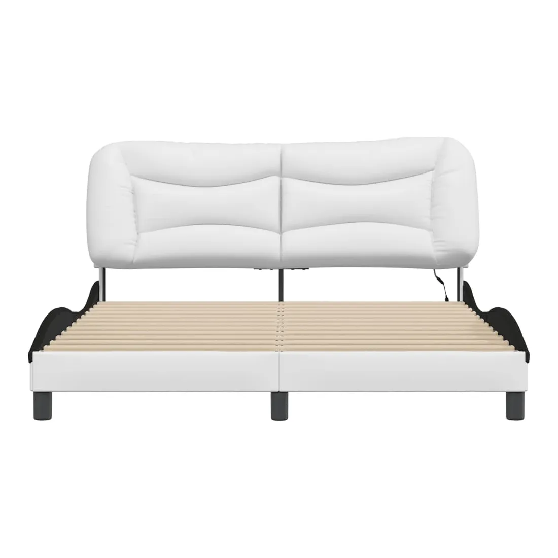 Obtenez une meilleure nuit de sommeil reposante grâce à ce cadre de lit avec lumières LED ! Il est un supplément accueillant à toute chambre à coucher. Similicuir durable : le similicuir de qualité supérieure est un matériau très durable. Il est résistant aux taches, ce qui le rend facile à nettoyer avec un chiffon humide. La surface lisse donne également un aspect luxueux et la beauté du cuir véritable.Lattes de contreplaqué : les lattes de contreplaqué assurent une bonne répartition du poids, garantissant que le matelas reste en place à chaque torsion de votre corps pendant le sommeil.Excellent soutien : la tête de lit vous offre un excellent soutien du dos lorsque vous êtes assis dans votre lit pour lire ou regarder la télévision.Bande LED colorée : apportez de la gaieté dans l'obscurité avec des lumières LED colorées ! Les bandes auto-agrippantes situées à l'arrière du coussin de la tête de lit peuvent être utilisées pour fixer les lumières LED.Design latéral ondulé : l’aspect ondulé du cadre de lit est élégant et sophistiqué, ajoutant une touche moderne et élégante à votre décor, ce qui en fait le point central de votre chambre à coucher. Bon à savoir :Un matelas n'est pas inclus avec ce lit. Nous offrons une sélection variée de matelas. Vous pouvez consulter notre boutique pour trouver un matelas assorti.Ce produit est doté d'un connecteur USB qui nécessite une source d'alimentation USB de 5V certifiée (non incluse).