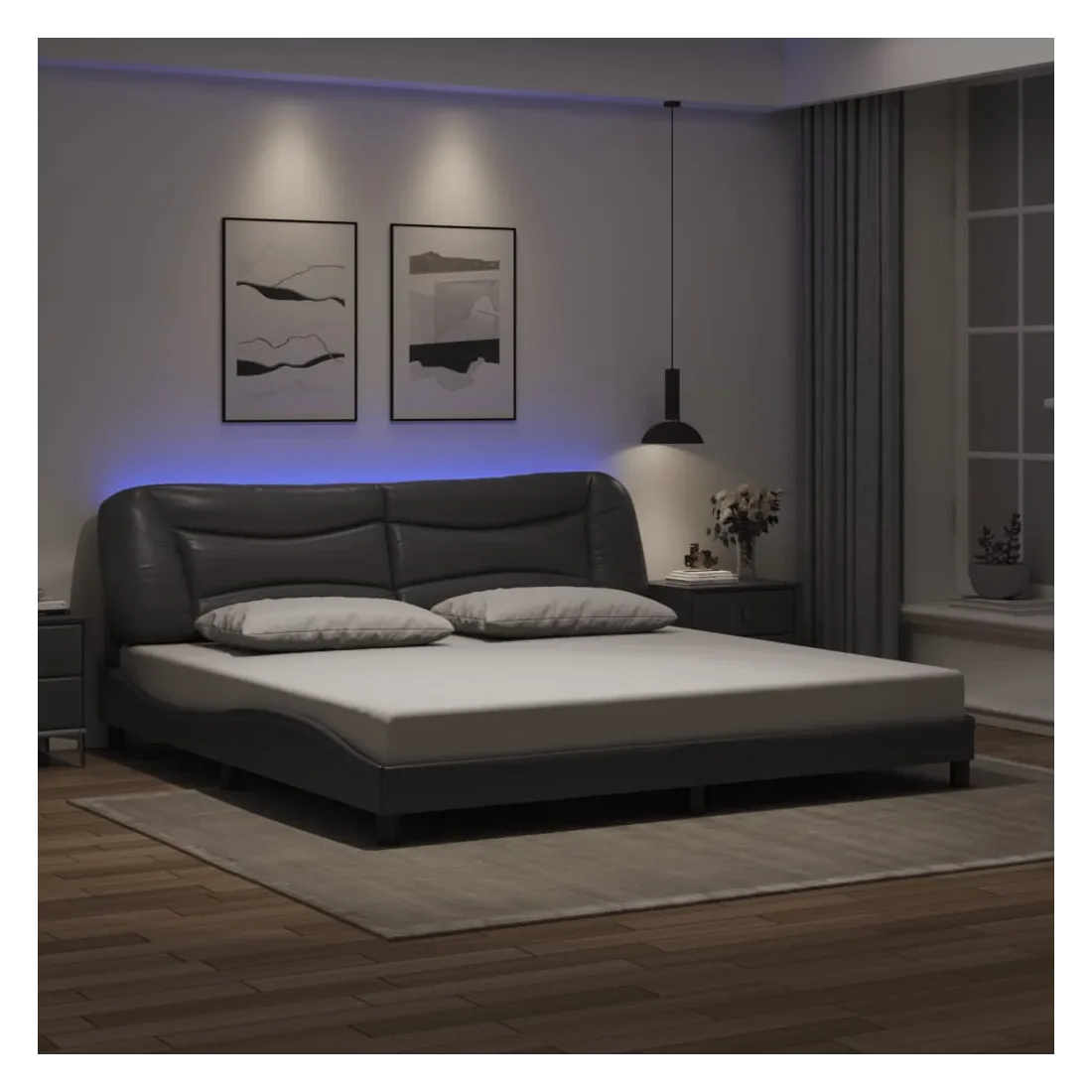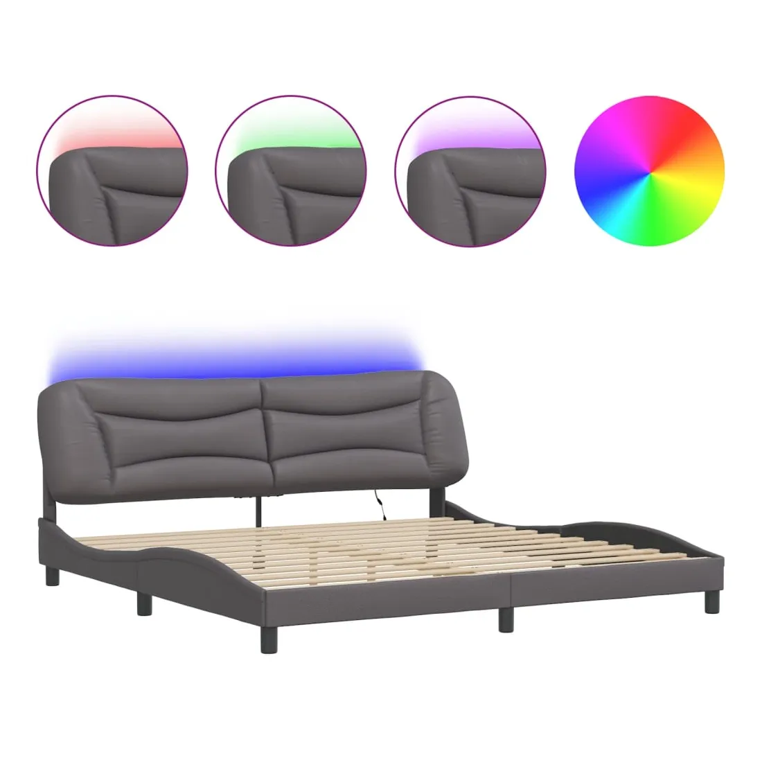 Obtenez une meilleure nuit de sommeil reposante grâce à ce cadre de lit avec lumières LED ! Il est un supplément accueillant à toute chambre à coucher. Similicuir durable : le similicuir de qualité supérieure est un matériau très durable. Il est résistant aux taches, ce qui le rend facile à nettoyer avec un chiffon humide. La surface lisse donne également un aspect luxueux et la beauté du cuir véritable.Lattes de contreplaqué : les lattes de contreplaqué assurent une bonne répartition du poids, garantissant que le matelas reste en place à chaque torsion de votre corps pendant le sommeil.Excellent soutien : la tête de lit vous offre un excellent soutien du dos lorsque vous êtes assis dans votre lit pour lire ou regarder la télévision.Bande LED colorée : apportez de la gaieté dans l'obscurité avec des lumières LED colorées ! Les bandes auto-agrippantes situées à l'arrière du coussin de la tête de lit peuvent être utilisées pour fixer les lumières LED.Design latéral ondulé : l’aspect ondulé du cadre de lit est élégant et sophistiqué, ajoutant une touche moderne et élégante à votre décor, ce qui en fait le point central de votre chambre à coucher. Bon à savoir :Un matelas n'est pas inclus avec ce lit. Nous offrons une sélection variée de matelas. Vous pouvez consulter notre boutique pour trouver un matelas assorti.Ce produit est doté d'un connecteur USB qui nécessite une source d'alimentation USB de 5V certifiée (non incluse).