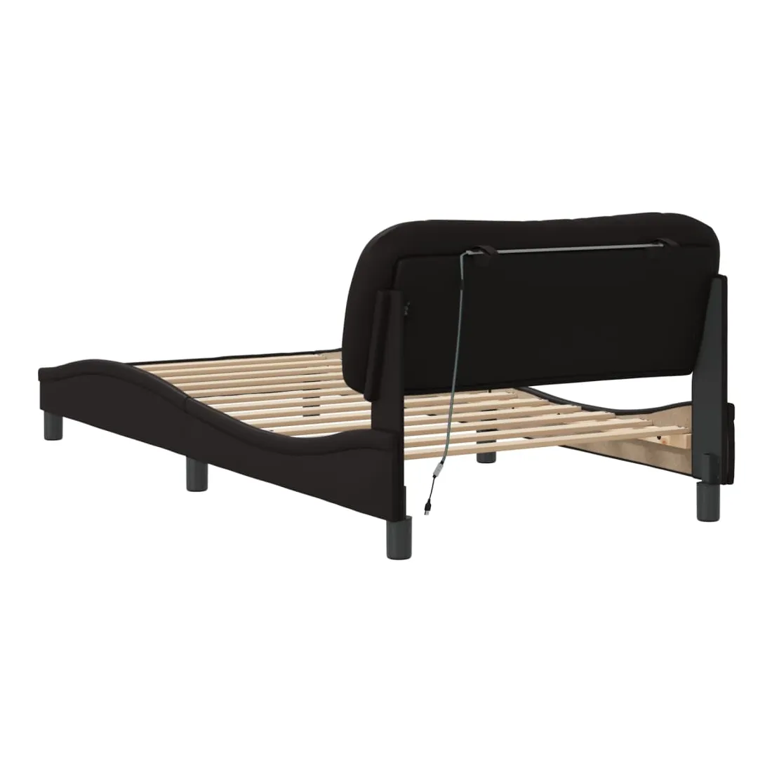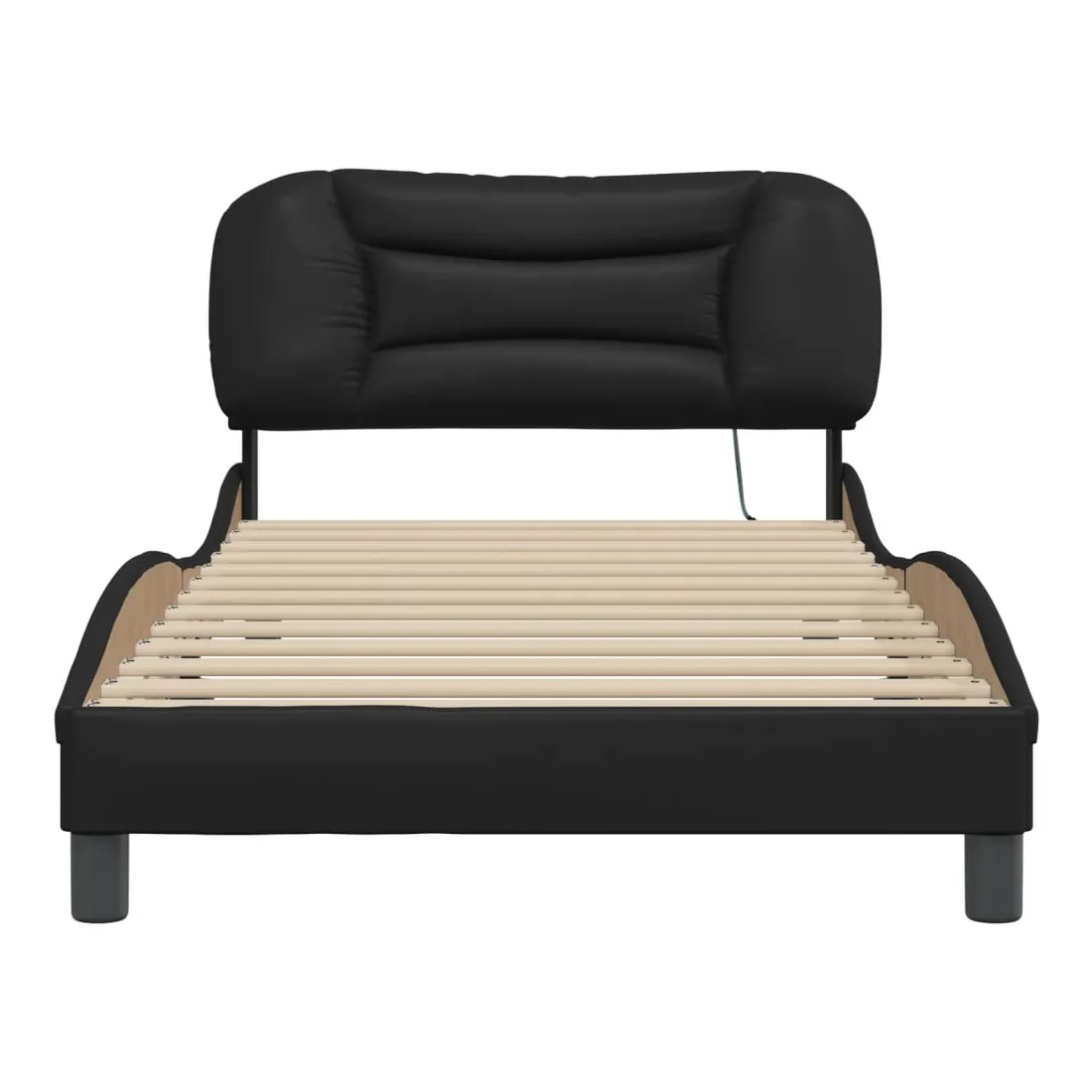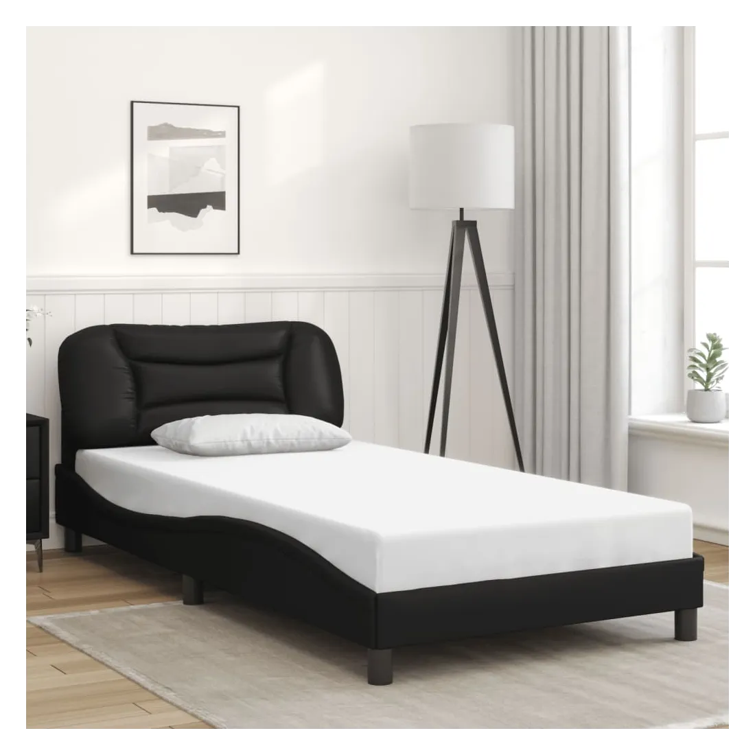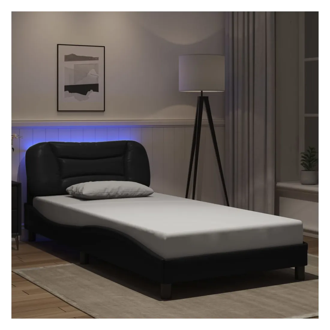 Obtenez une meilleure nuit de sommeil reposante grâce à ce cadre de lit avec lumières LED ! Il est un supplément accueillant à toute chambre à coucher. Similicuir durable : le similicuir de qualité supérieure est un matériau très durable. Il est résistant aux taches, ce qui le rend facile à nettoyer avec un chiffon humide. La surface lisse donne également un aspect luxueux et la beauté du cuir véritable.Lattes de contreplaqué : les lattes de contreplaqué assurent une bonne répartition du poids, garantissant que le matelas reste en place à chaque torsion de votre corps pendant le sommeil. Excellent soutien : l'oreiller de tête de lit est rembourré avec de la fibre de polypropylène pour un confort ultra doux et optimal vous offre un excellent soutien du dos lorsque vous êtes assis dans votre lit pour lire ou regarder la télévision. Bande LED colorée : apportez de la gaieté dans l'obscurité avec des lumières LED colorées ! Les bandes auto-agrippantes situées à l'arrière du coussin de la tête de lit peuvent être utilisées pour fixer les lumières LED. Design latéral ondulé : l’aspect ondulé du cadre de lit est élégant et sophistiqué, ajoutant une touche moderne et élégante à votre décor, ce qui en fait le point central de votre chambre à coucher. Bon à savoir :Un matelas n'est pas inclus avec ce lit. Nous offrons une sélection variée de matelas. Vous pouvez consulter notre boutique pour trouver un matelas assorti.Ce produit est doté d'un connecteur USB qui nécessite une source d'alimentation USB de 5V certifiée (non incluse).