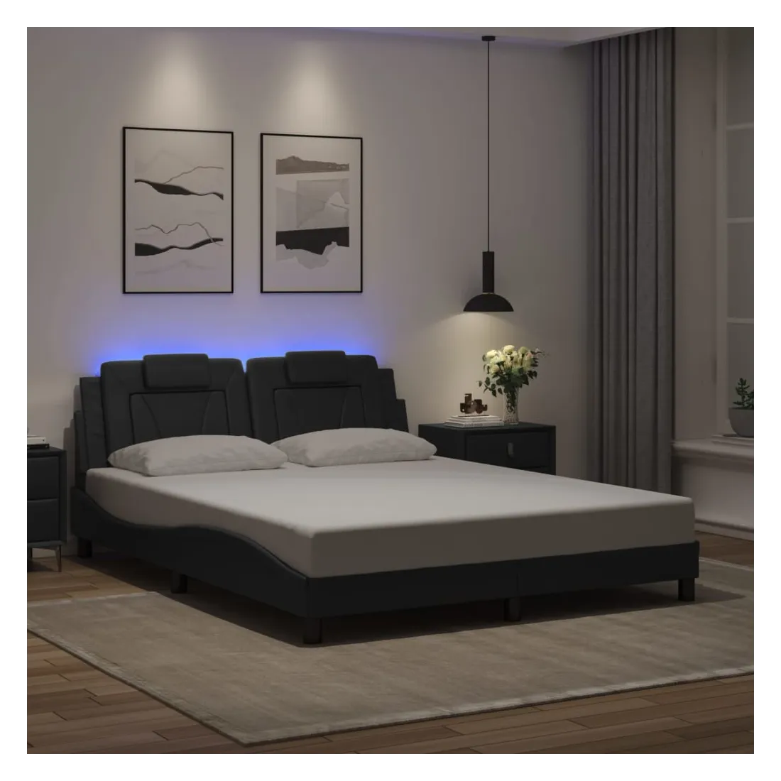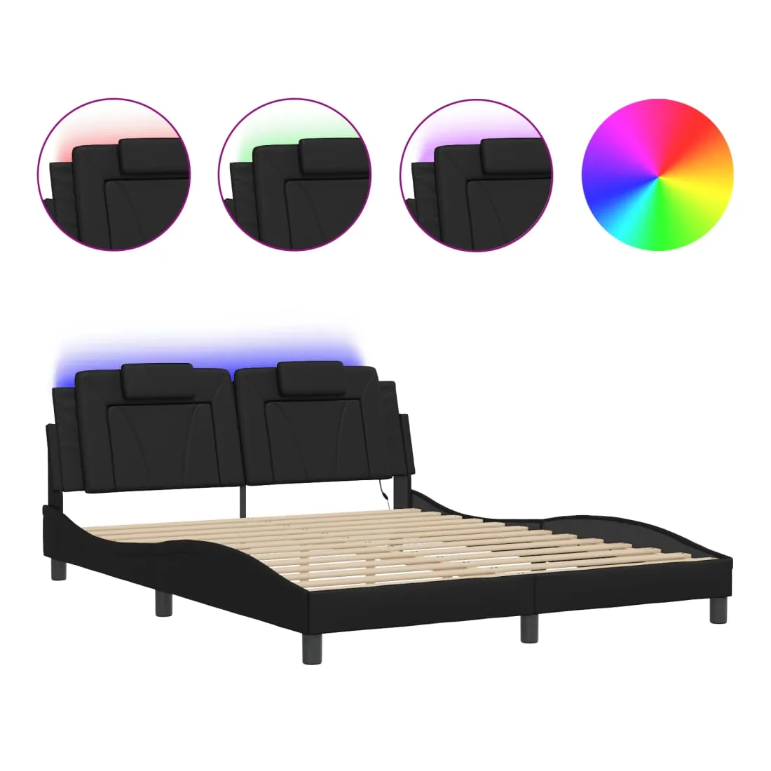 Obtenez une meilleure nuit de sommeil reposante grâce à ce cadre de lit avec lumières LED ! Il est un supplément accueillant à toute chambre à coucher. Similicuir durable : le similicuir de qualité supérieure est un matériau très durable. Il est résistant aux taches, ce qui le rend facile à nettoyer avec un chiffon humide. La surface lisse donne également un aspect luxueux et la beauté du cuir véritable.Lattes de contreplaqué : les lattes de contreplaqué assurent une bonne répartition du poids, garantissant que le matelas reste en place à chaque torsion de votre corps pendant le sommeil. Excellent soutien : l'oreiller de tête de lit est rembourré avec de la mousse pour un confort ultra doux et optimal vous offre un excellent soutien du dos lorsque vous êtes assis dans votre lit pour lire ou regarder la télévision. Bande LED colorée : apportez de la gaieté dans l'obscurité avec des lumières LED colorées ! Les bandes auto-agrippantes situées à l'arrière du coussin de la tête de lit peuvent être utilisées pour fixer les lumières LED. Design latéral ondulé : l’aspect ondulé du cadre de lit est élégant et sophistiqué, ajoutant une touche moderne et élégante à votre décor, ce qui en fait le point central de votre chambre à coucher. Bon à savoir :Un matelas n'est pas inclus avec ce lit. Nous offrons une sélection variée de matelas. Vous pouvez consulter notre boutique pour trouver un matelas assorti.Ce produit est doté d'un connecteur USB qui nécessite une source d'alimentation USB de 5V certifiée (non incluse).
