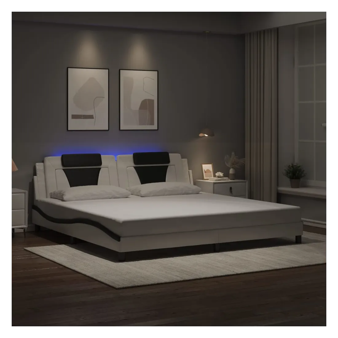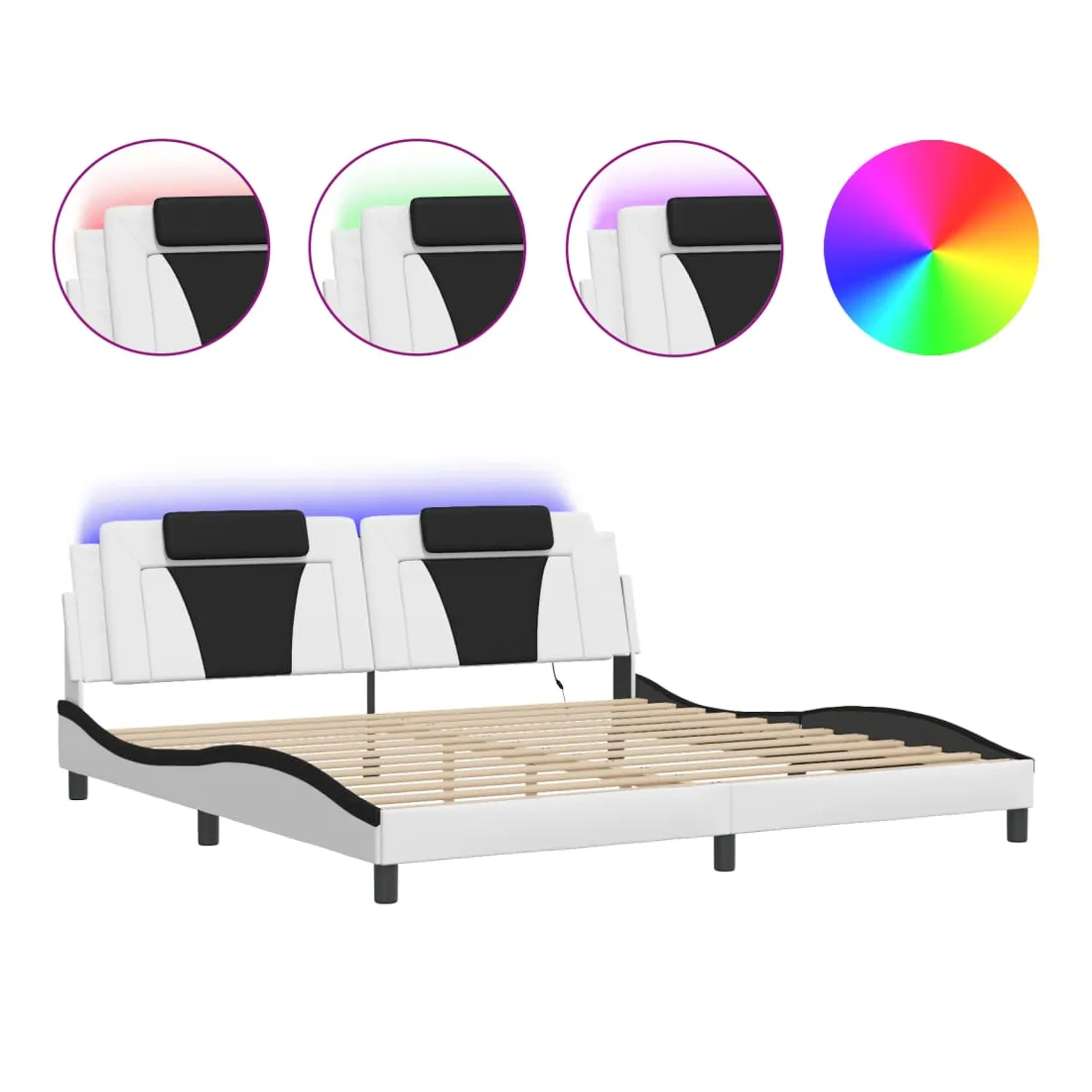 Cadre de lit Viana avec LED sans matelas blanc et noir 200x200 cm