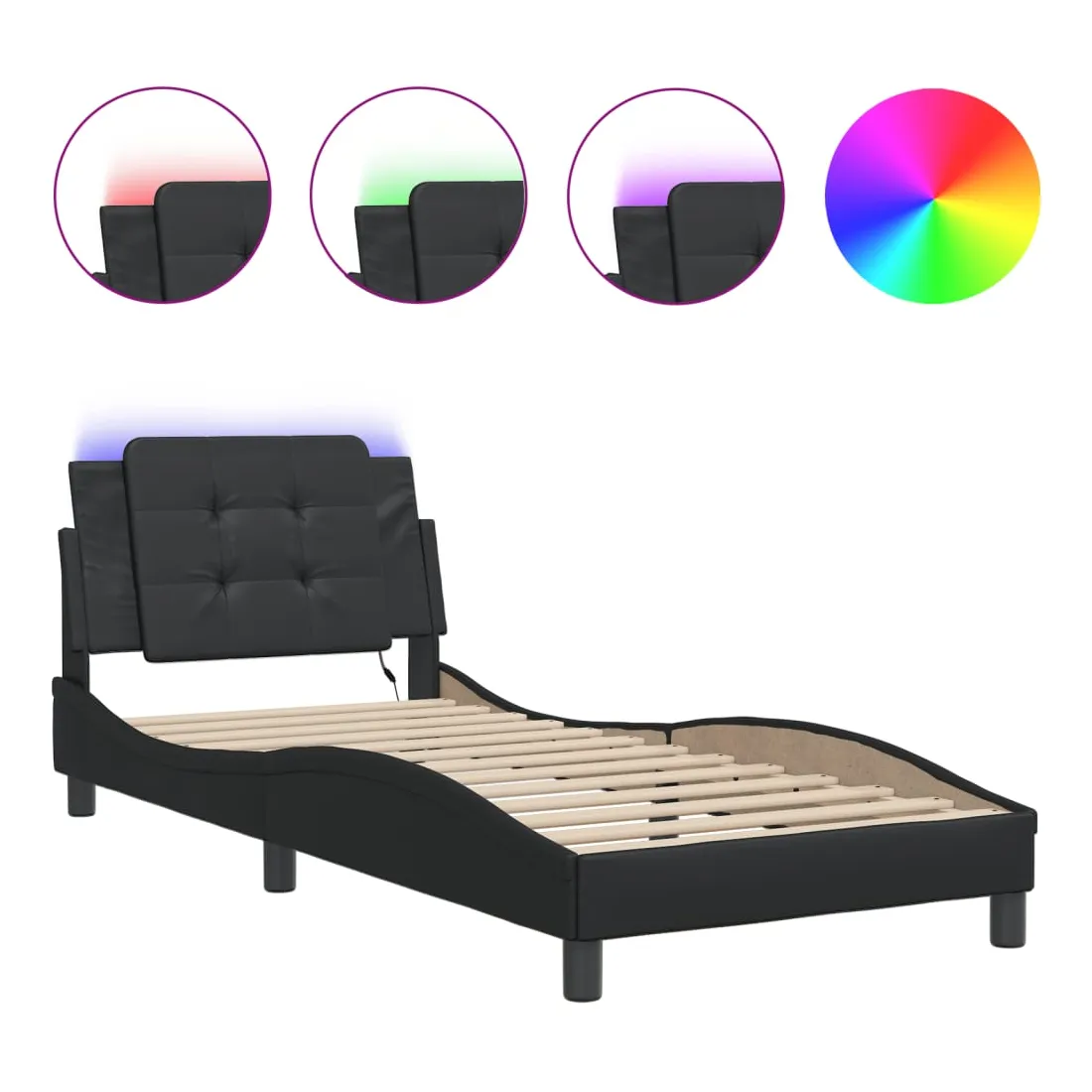 Obtenez une meilleure nuit de sommeil reposante grâce à ce cadre de lit avec lumières LED ! Il est un supplément accueillant à toute chambre à coucher. Similicuir durable : le similicuir de qualité supérieure est un matériau très durable. Il est résistant aux taches, ce qui le rend facile à nettoyer avec un chiffon humide. La surface lisse donne également un aspect luxueux et la beauté du cuir véritable.Lattes de contreplaqué : les lattes de contreplaqué assurent une bonne répartition du poids, garantissant que le matelas reste en place à chaque torsion de votre corps pendant le sommeil.Excellent soutien : la tête de lit vous offre un excellent soutien du dos lorsque vous êtes assis dans votre lit pour lire ou regarder la télévision.Bande LED colorée : apportez de la gaieté dans l'obscurité avec des lumières LED colorées ! Les bandes auto-agrippantes situées à l'arrière du coussin de la tête de lit peuvent être utilisées pour fixer les lumières LED.Design latéral ondulé : l’aspect ondulé du cadre de lit est élégant et sophistiqué, ajoutant une touche moderne et élégante à votre décor, ce qui en fait le point central de votre chambre à coucher. Bon à savoir :Un matelas n'est pas inclus avec ce lit. Nous offrons une sélection variée de matelas. Vous pouvez consulter notre boutique pour trouver un matelas assorti.Ce produit est doté d'un connecteur USB qui nécessite une source d'alimentation USB de 5V certifiée (non incluse).