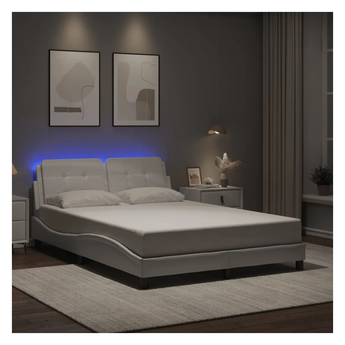 Obtenez une meilleure nuit de sommeil reposante grâce à ce cadre de lit avec lumières LED ! Il est un supplément accueillant à toute chambre à coucher. Similicuir durable : le similicuir de qualité supérieure est un matériau très durable. Il est résistant aux taches, ce qui le rend facile à nettoyer avec un chiffon humide. La surface lisse donne également un aspect luxueux et la beauté du cuir véritable.Lattes de contreplaqué : les lattes de contreplaqué assurent une bonne répartition du poids, garantissant que le matelas reste en place à chaque torsion de votre corps pendant le sommeil.Excellent soutien : la tête de lit vous offre un excellent soutien du dos lorsque vous êtes assis dans votre lit pour lire ou regarder la télévision.Bande LED colorée : apportez de la gaieté dans l'obscurité avec des lumières LED colorées ! Les bandes auto-agrippantes situées à l'arrière du coussin de la tête de lit peuvent être utilisées pour fixer les lumières LED.Design latéral ondulé : l’aspect ondulé du cadre de lit est élégant et sophistiqué, ajoutant une touche moderne et élégante à votre décor, ce qui en fait le point central de votre chambre à coucher. Bon à savoir :Un matelas n'est pas inclus avec ce lit. Nous offrons une sélection variée de matelas. Vous pouvez consulter notre boutique pour trouver un matelas assorti.Ce produit est doté d'un connecteur USB qui nécessite une source d'alimentation USB de 5V certifiée (non incluse).