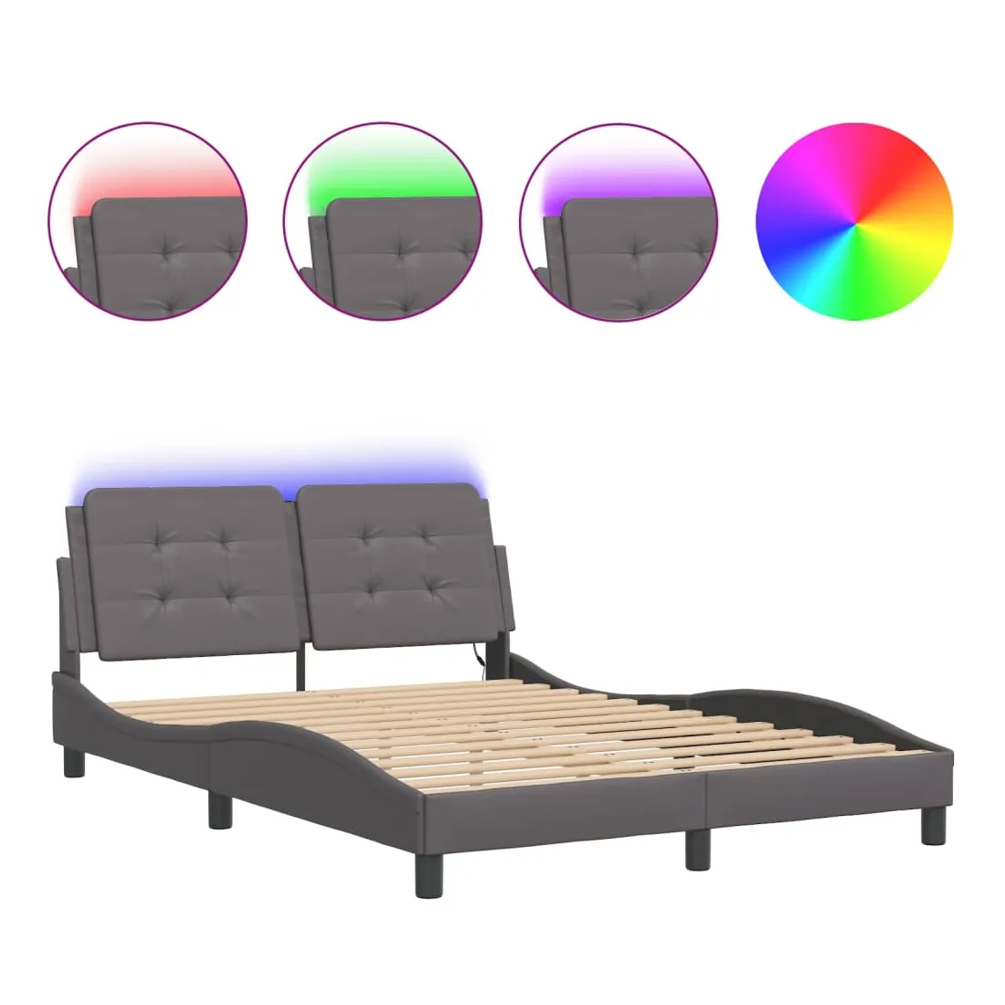 Obtenez une meilleure nuit de sommeil reposante grâce à ce cadre de lit avec lumières LED ! Il est un supplément accueillant à toute chambre à coucher. Similicuir durable : le similicuir de qualité supérieure est un matériau très durable. Il est résistant aux taches, ce qui le rend facile à nettoyer avec un chiffon humide. La surface lisse donne également un aspect luxueux et la beauté du cuir véritable.Lattes de contreplaqué : les lattes de contreplaqué assurent une bonne répartition du poids, garantissant que le matelas reste en place à chaque torsion de votre corps pendant le sommeil.Excellent soutien : la tête de lit vous offre un excellent soutien du dos lorsque vous êtes assis dans votre lit pour lire ou regarder la télévision.Bande LED colorée : apportez de la gaieté dans l'obscurité avec des lumières LED colorées ! Les bandes auto-agrippantes situées à l'arrière du coussin de la tête de lit peuvent être utilisées pour fixer les lumières LED.Design latéral ondulé : l’aspect ondulé du cadre de lit est élégant et sophistiqué, ajoutant une touche moderne et élégante à votre décor, ce qui en fait le point central de votre chambre à coucher. Bon à savoir :Un matelas n'est pas inclus avec ce lit. Nous offrons une sélection variée de matelas. Vous pouvez consulter notre boutique pour trouver un matelas assorti.Ce produit est doté d'un connecteur USB qui nécessite une source d'alimentation USB de 5V certifiée (non incluse).