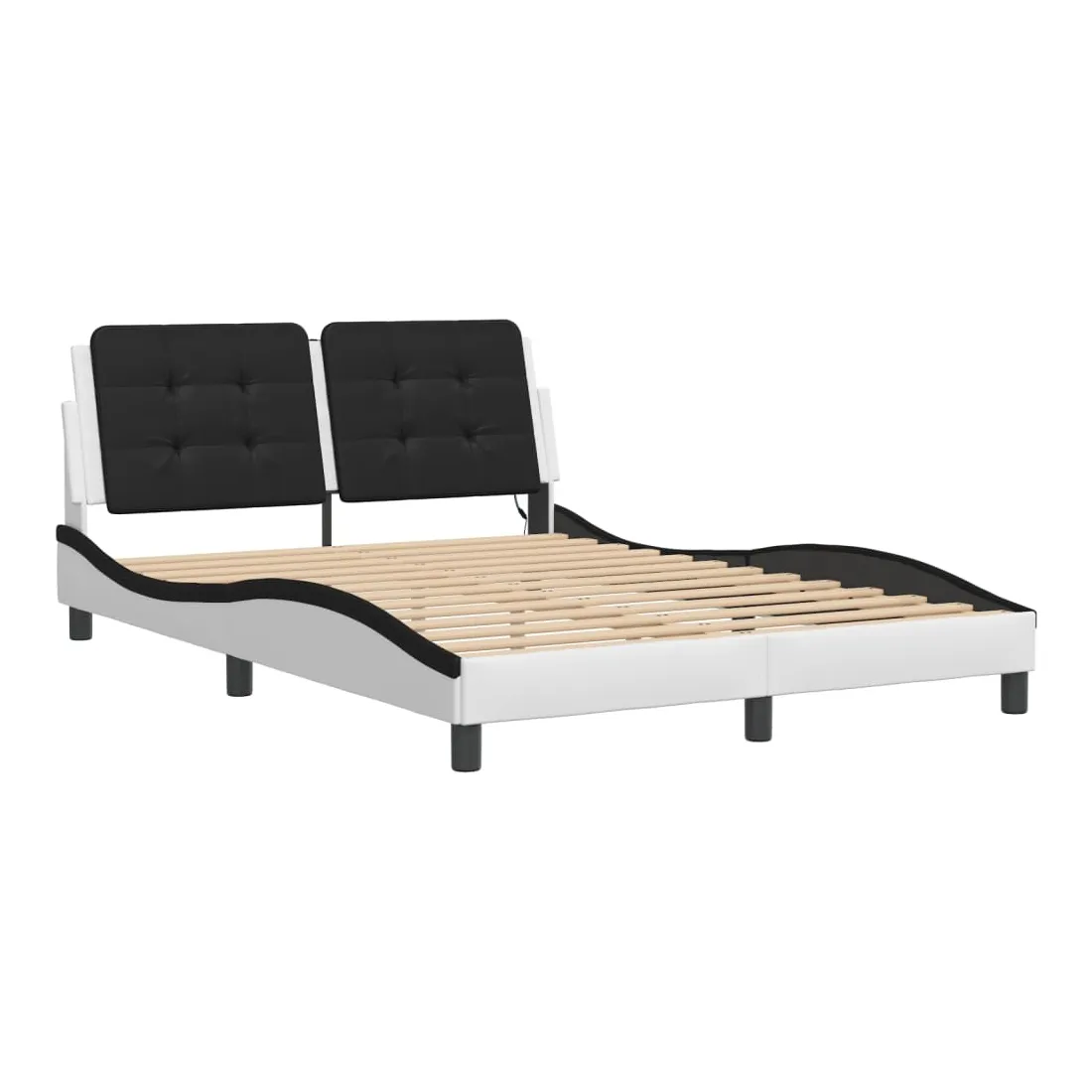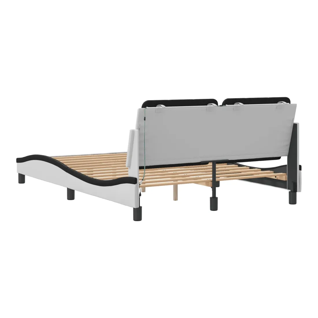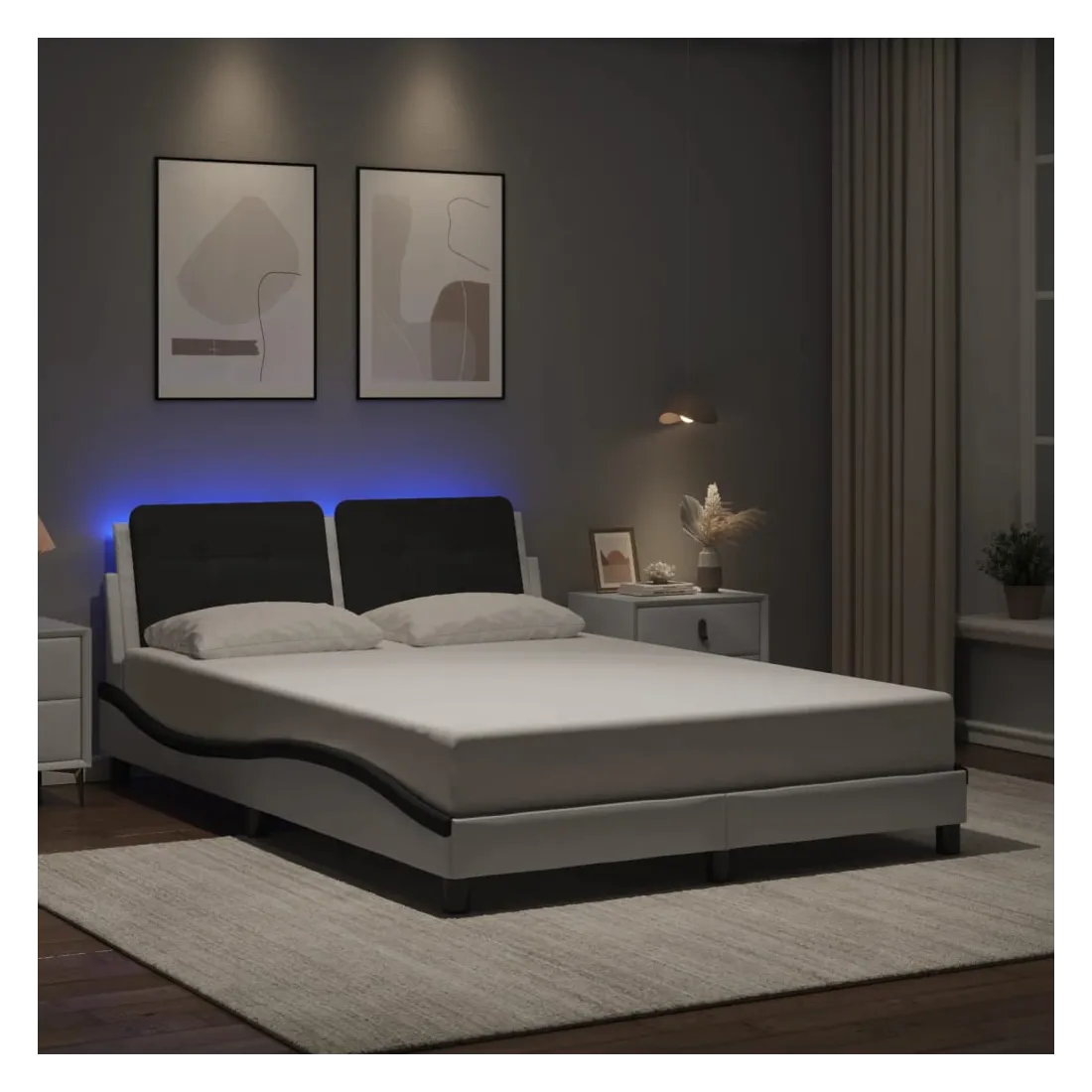 Obtenez une meilleure nuit de sommeil reposante grâce à ce cadre de lit avec lumières LED ! Il est un supplément accueillant à toute chambre à coucher. Similicuir durable : le similicuir de qualité supérieure est un matériau très durable. Il est résistant aux taches, ce qui le rend facile à nettoyer avec un chiffon humide. La surface lisse donne également un aspect luxueux et la beauté du cuir véritable.Lattes de contreplaqué : les lattes de contreplaqué assurent une bonne répartition du poids, garantissant que le matelas reste en place à chaque torsion de votre corps pendant le sommeil.Excellent soutien : la tête de lit vous offre un excellent soutien du dos lorsque vous êtes assis dans votre lit pour lire ou regarder la télévision.Bande LED colorée : apportez de la gaieté dans l'obscurité avec des lumières LED colorées ! Les bandes auto-agrippantes situées à l'arrière du coussin de la tête de lit peuvent être utilisées pour fixer les lumières LED.Design latéral ondulé : l’aspect ondulé du cadre de lit est élégant et sophistiqué, ajoutant une touche moderne et élégante à votre décor, ce qui en fait le point central de votre chambre à coucher. Bon à savoir :Un matelas n'est pas inclus avec ce lit. Nous offrons une sélection variée de matelas. Vous pouvez consulter notre boutique pour trouver un matelas assorti.Ce produit est doté d'un connecteur USB qui nécessite une source d'alimentation USB de 5V certifiée (non incluse).