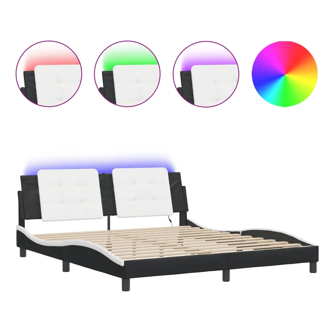Obtenez une meilleure nuit de sommeil reposante grâce à ce cadre de lit avec lumières LED ! Il est un supplément accueillant à toute chambre à coucher. Similicuir durable : le similicuir de qualité supérieure est un matériau très durable. Il est résistant aux taches, ce qui le rend facile à nettoyer avec un chiffon humide. La surface lisse donne également un aspect luxueux et la beauté du cuir véritable.Lattes de contreplaqué : les lattes de contreplaqué assurent une bonne répartition du poids, garantissant que le matelas reste en place à chaque torsion de votre corps pendant le sommeil.Excellent soutien : la tête de lit vous offre un excellent soutien du dos lorsque vous êtes assis dans votre lit pour lire ou regarder la télévision.Bande LED colorée : apportez de la gaieté dans l'obscurité avec des lumières LED colorées ! Les bandes auto-agrippantes situées à l'arrière du coussin de la tête de lit peuvent être utilisées pour fixer les lumières LED.Design latéral ondulé : l’aspect ondulé du cadre de lit est élégant et sophistiqué, ajoutant une touche moderne et élégante à votre décor, ce qui en fait le point central de votre chambre à coucher. Bon à savoir :Un matelas n'est pas inclus avec ce lit. Nous offrons une sélection variée de matelas. Vous pouvez consulter notre boutique pour trouver un matelas assorti.Ce produit est doté d'un connecteur USB qui nécessite une source d'alimentation USB de 5V certifiée (non incluse).